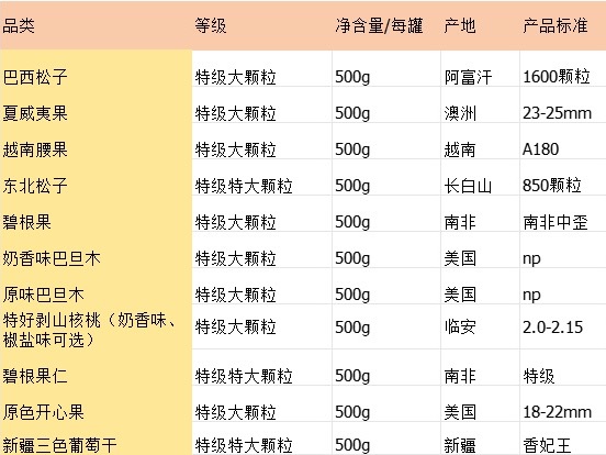 品级:特级品(均选用最大颗粒、最高品质坚果装罐)