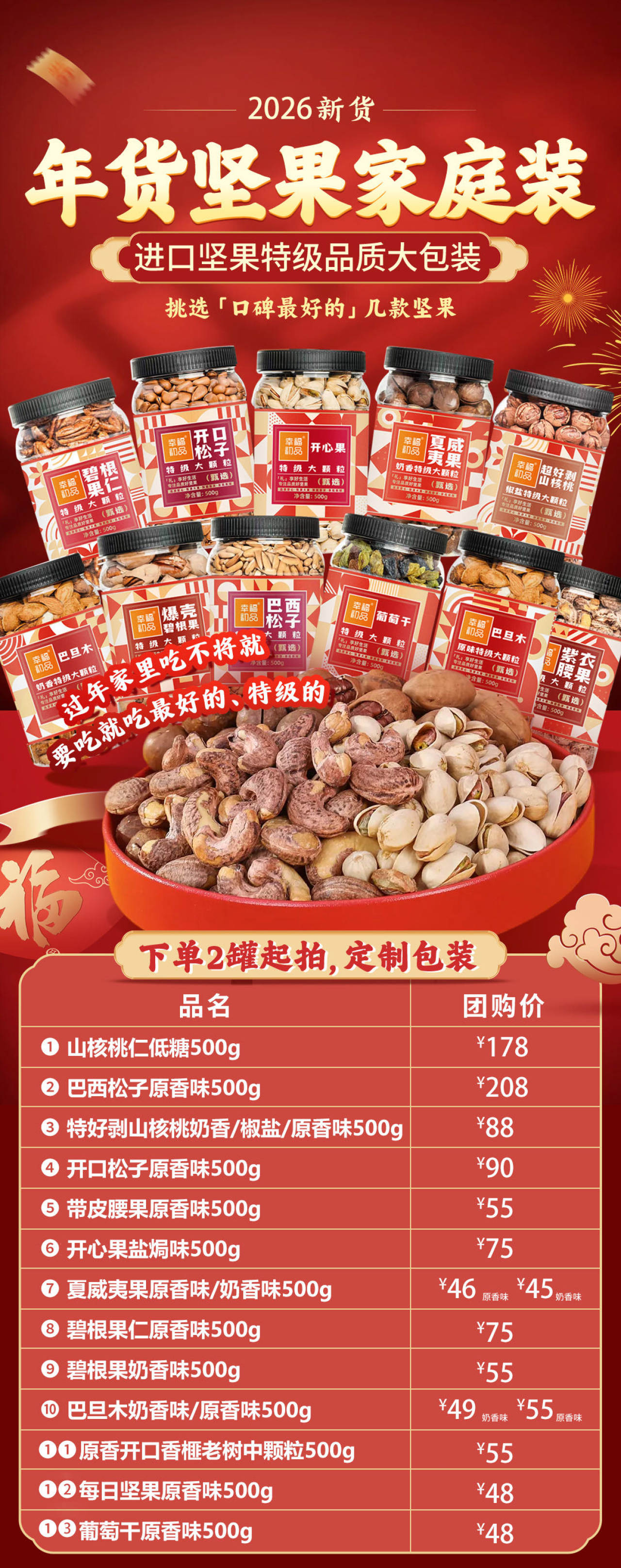品名:2026年货【特级坚果家庭装】2罐起拍