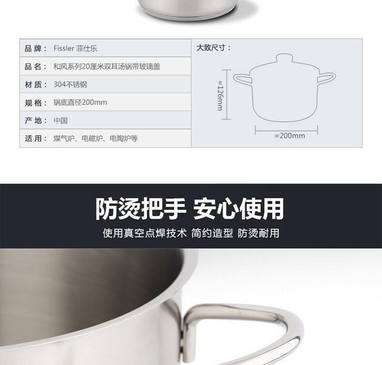 菲仕乐(Fissler)EM0511120000-G Fissler菲仕乐和风系列20厘米双耳汤锅带玻璃盖