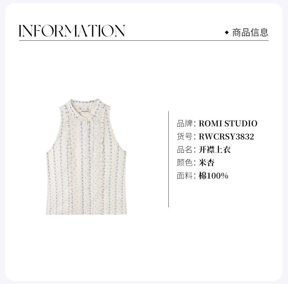 ROMI STUDIO“美式复古”花卉立领印花轻薄无袖衬衣背心 RWCRSY3832【发货时间:25-30天】