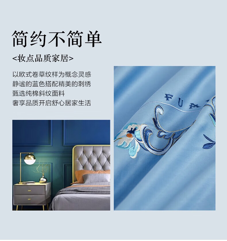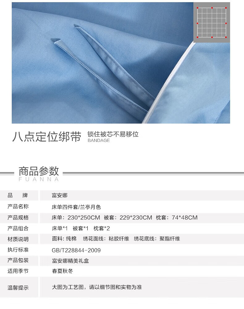 富安娜(FUANNA)高档四件套-兰亭月色1.5 /1.8m床