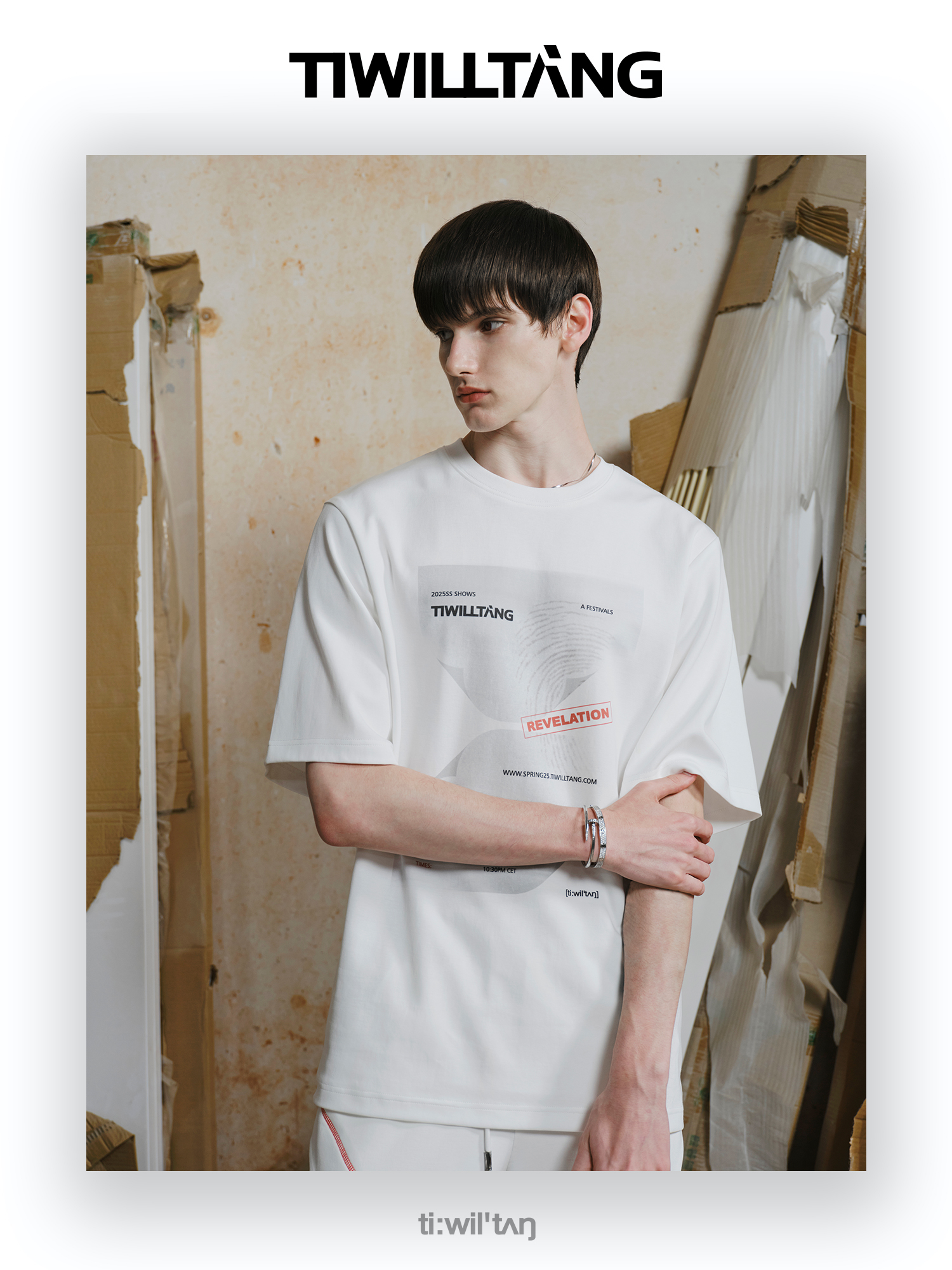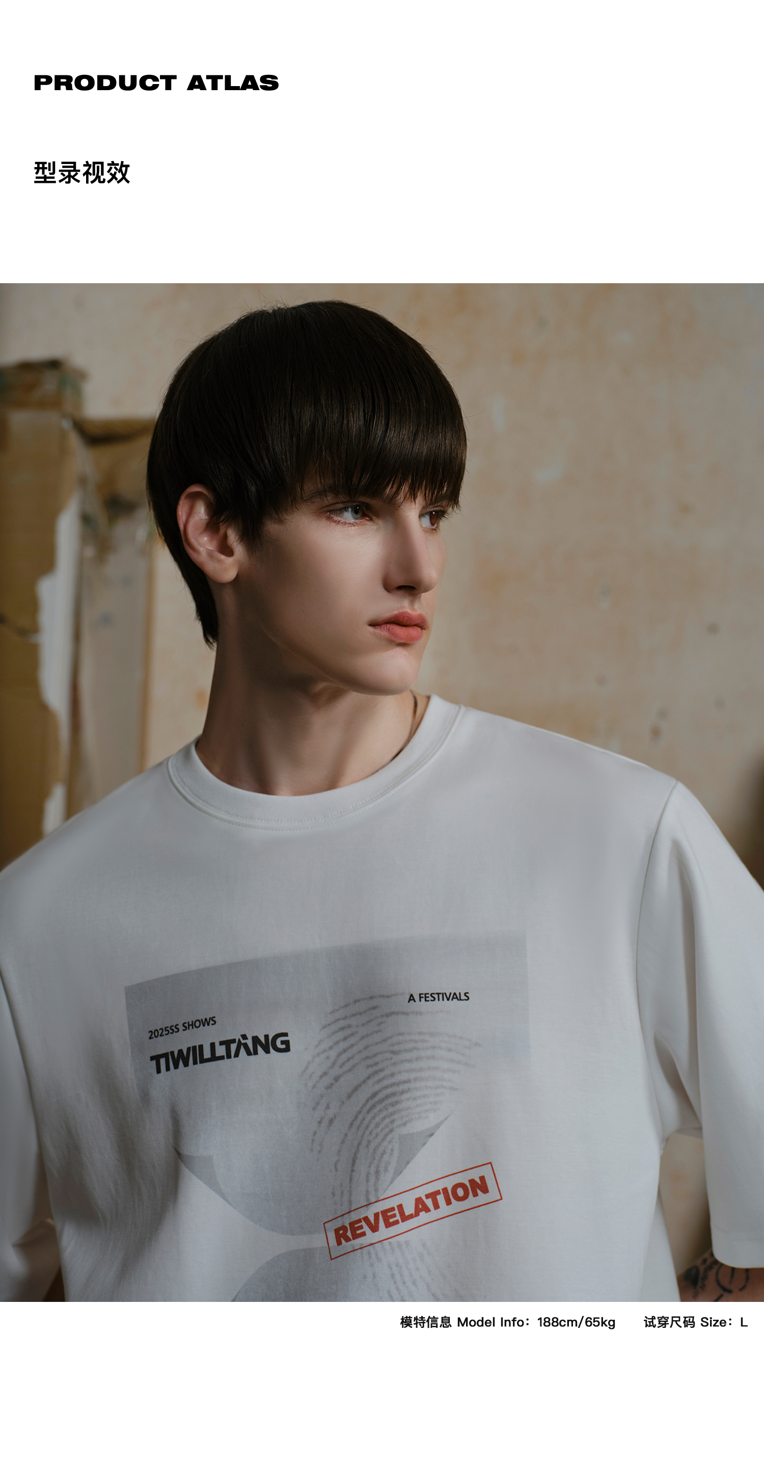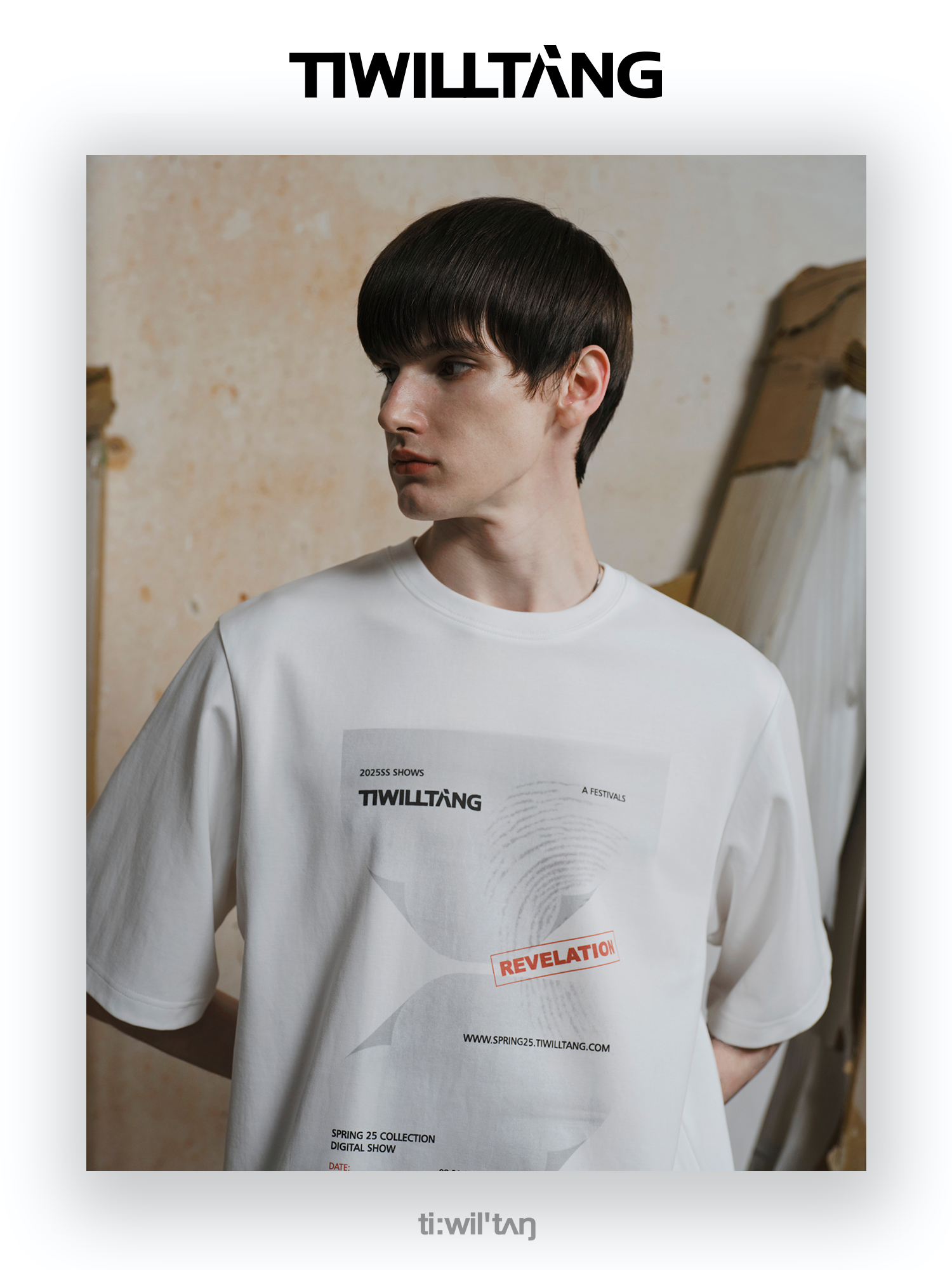 TIWILLTANG启世录“函授印鉴”邀请函印花短袖夏季圆领宽松T恤