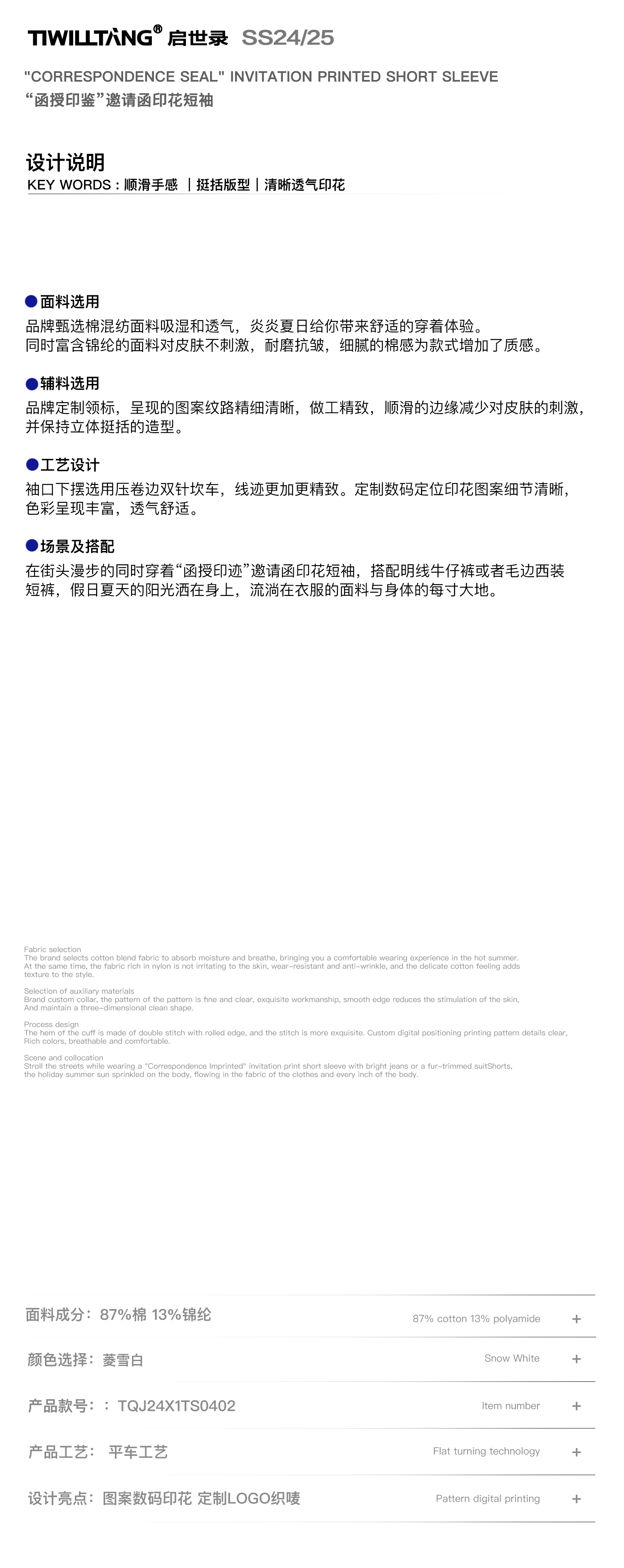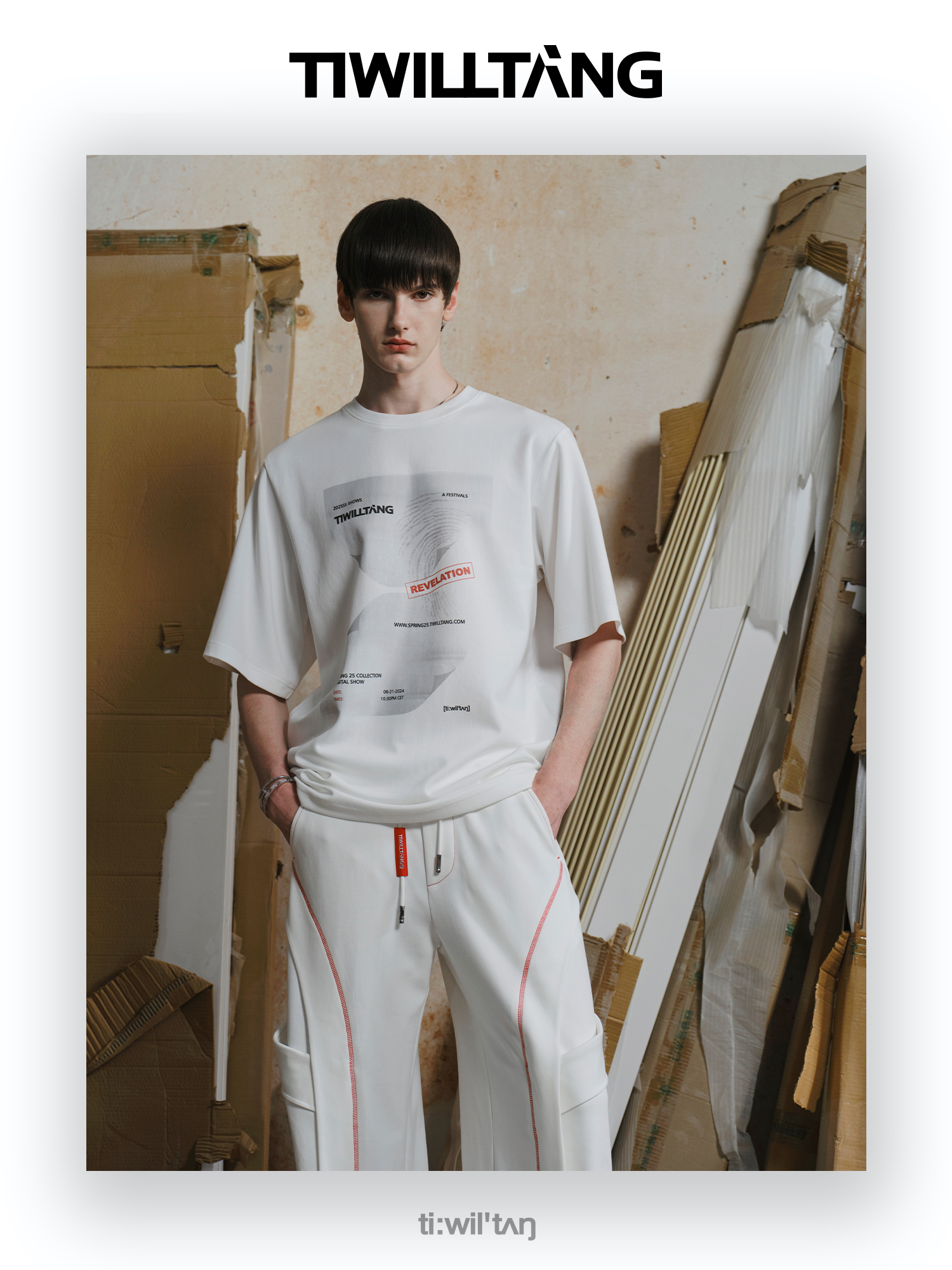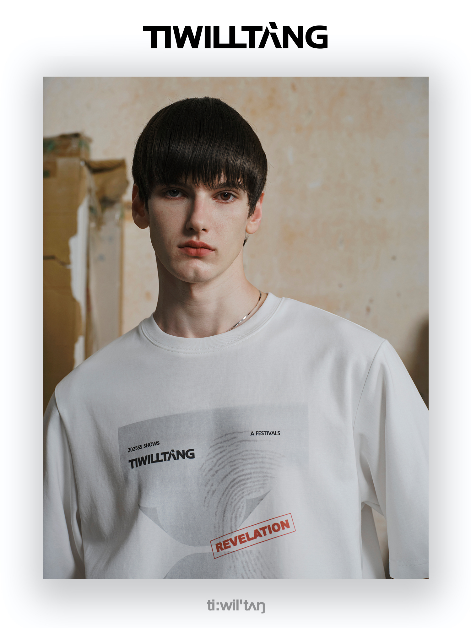 TIWILLTANG启世录“函授印鉴”邀请函印花短袖夏季圆领宽松T恤