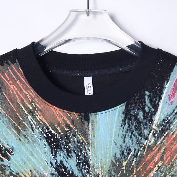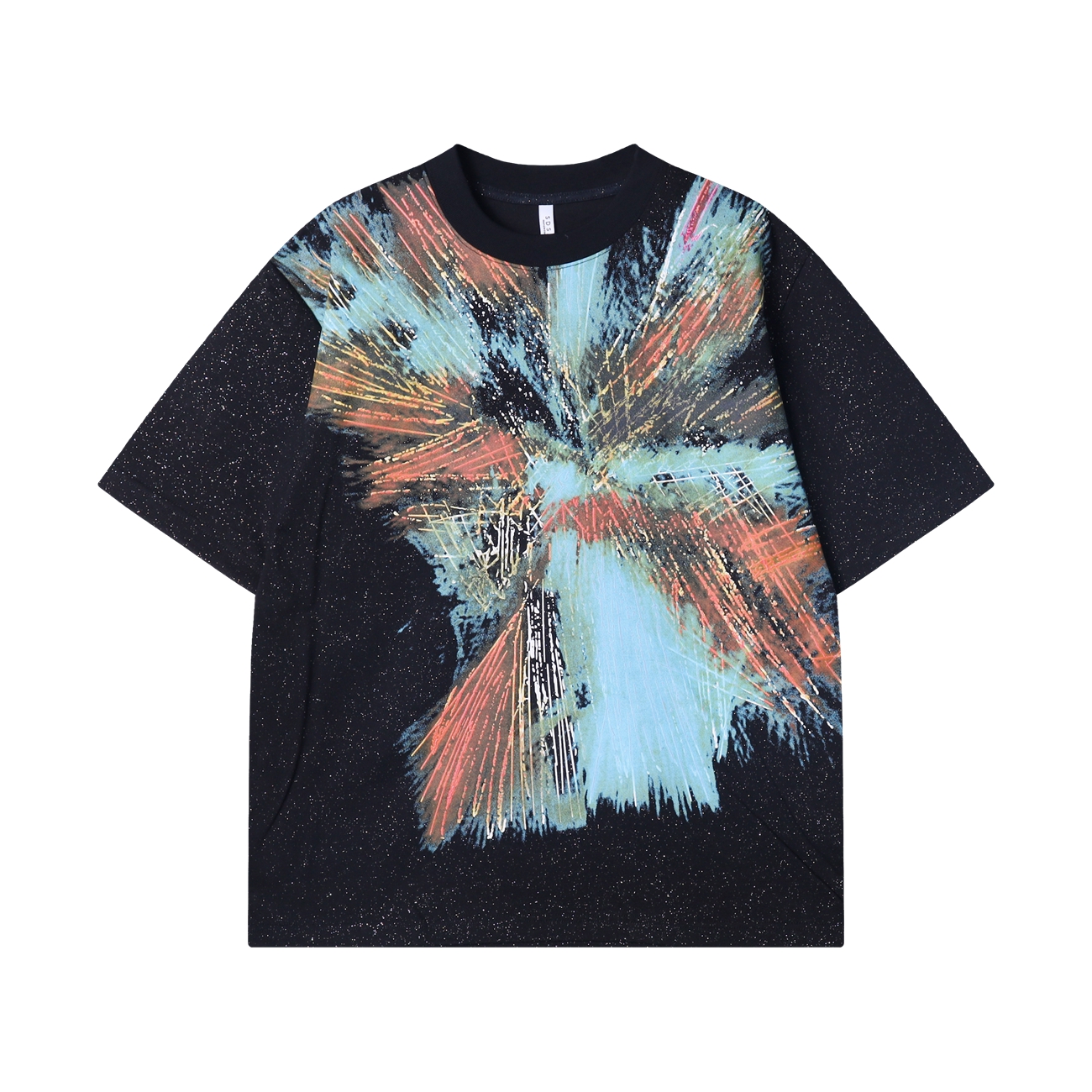 T3013夏季高级感新款潮牌满天星彩色印花圆领短袖T恤显瘦百搭宽松上衣