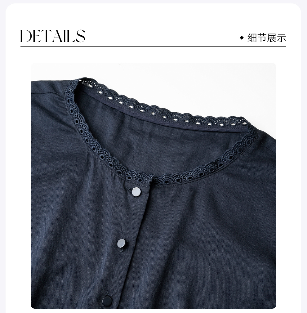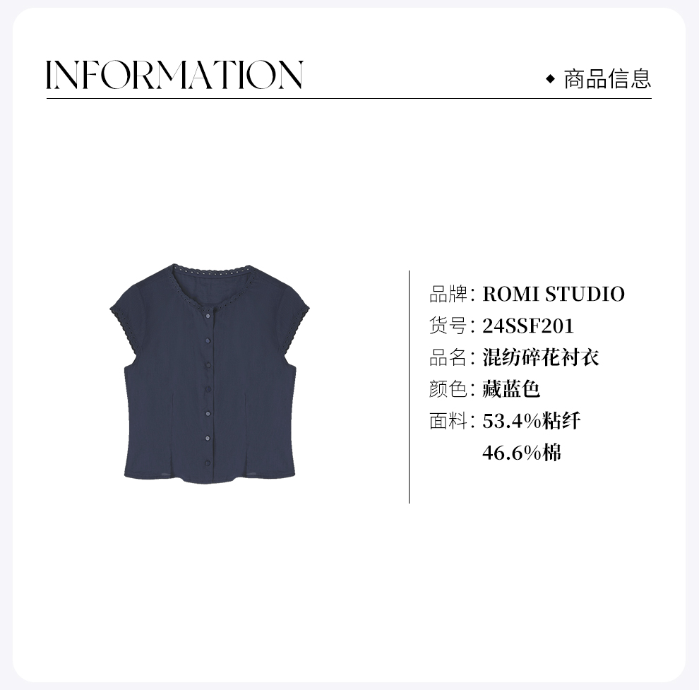 ROMI STUDIO-B“蓝调时刻”高支肤感棉混纺碎花边盖袖衬衣 24SSF201