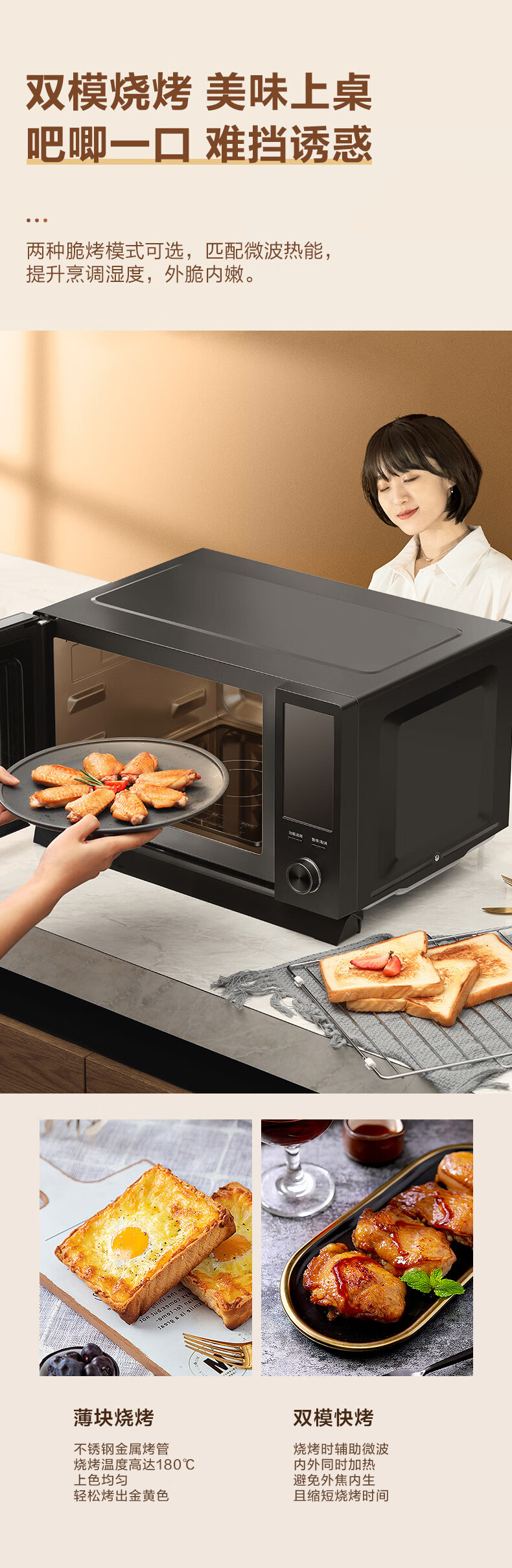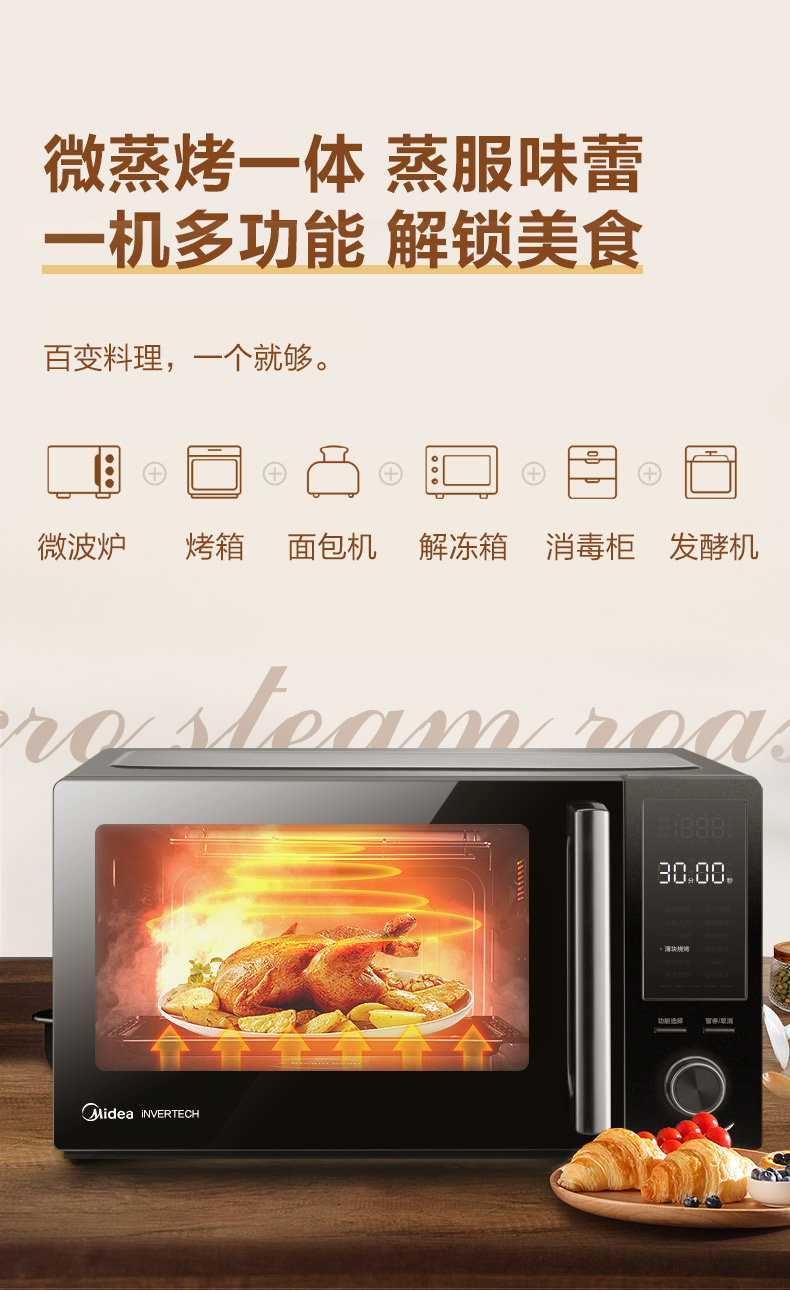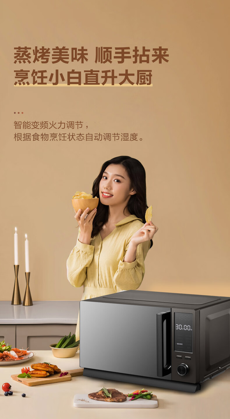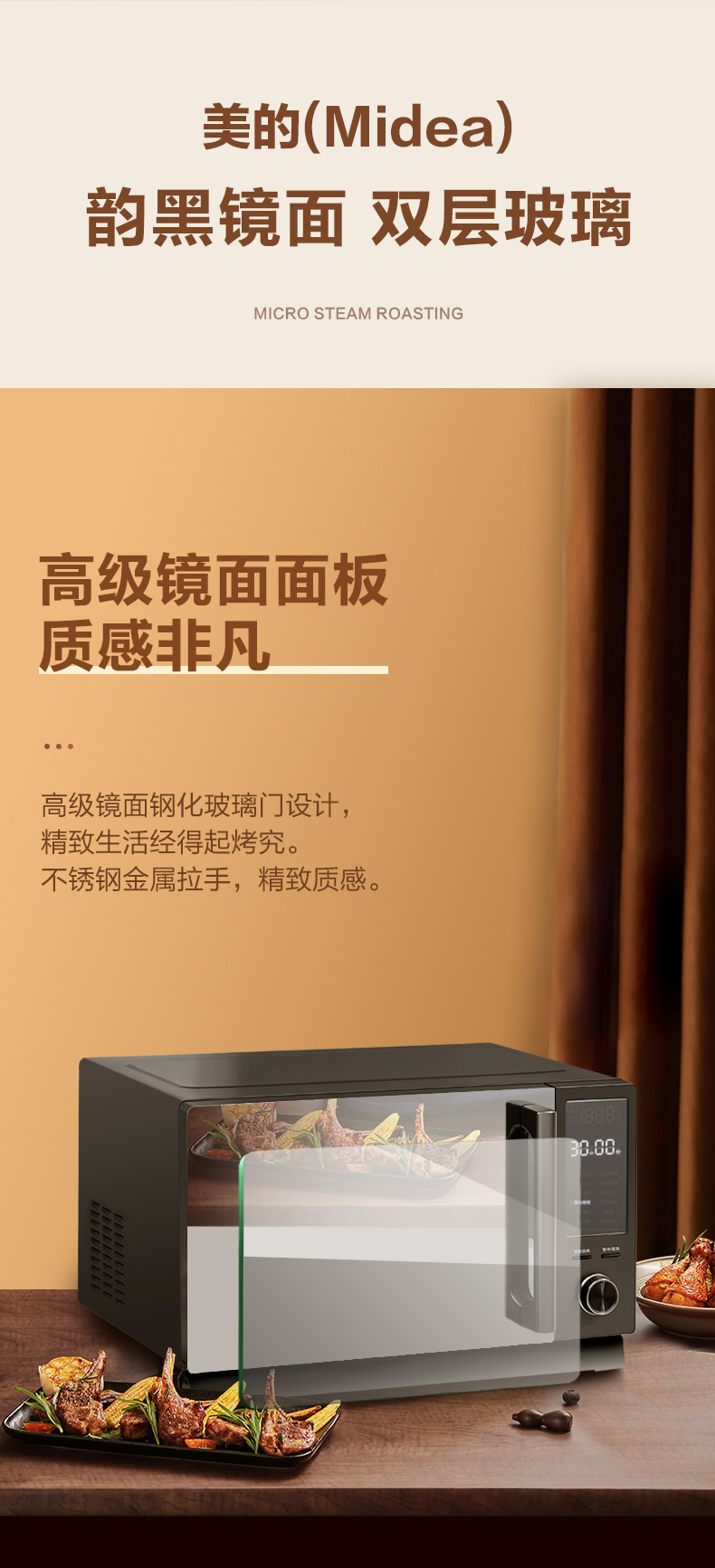 美的(Midea)微波炉 极幕不锈钢内胆微蒸烤一体机智能变频微波光波炉烤箱家用电烤箱 PC23D3