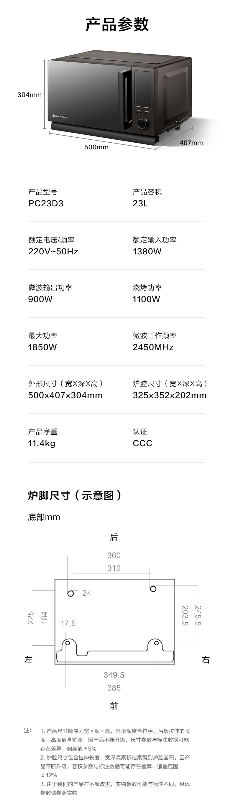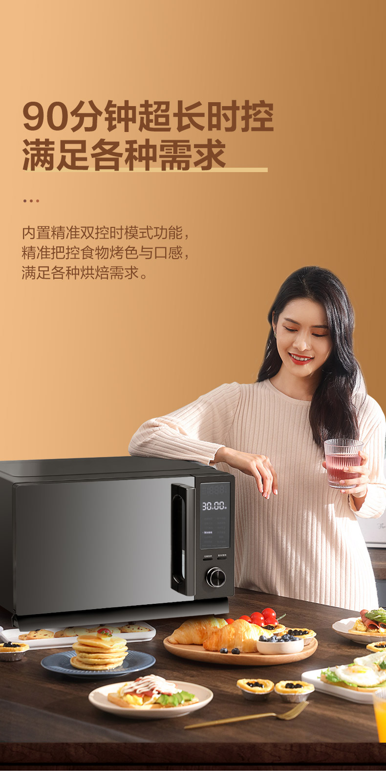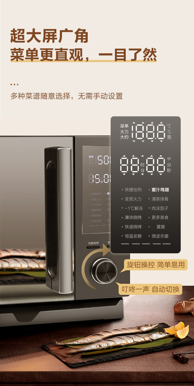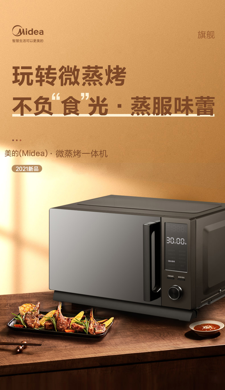 美的(Midea)微波炉 极幕不锈钢内胆微蒸烤一体机智能变频微波光波炉烤箱家用电烤箱 PC23D3
