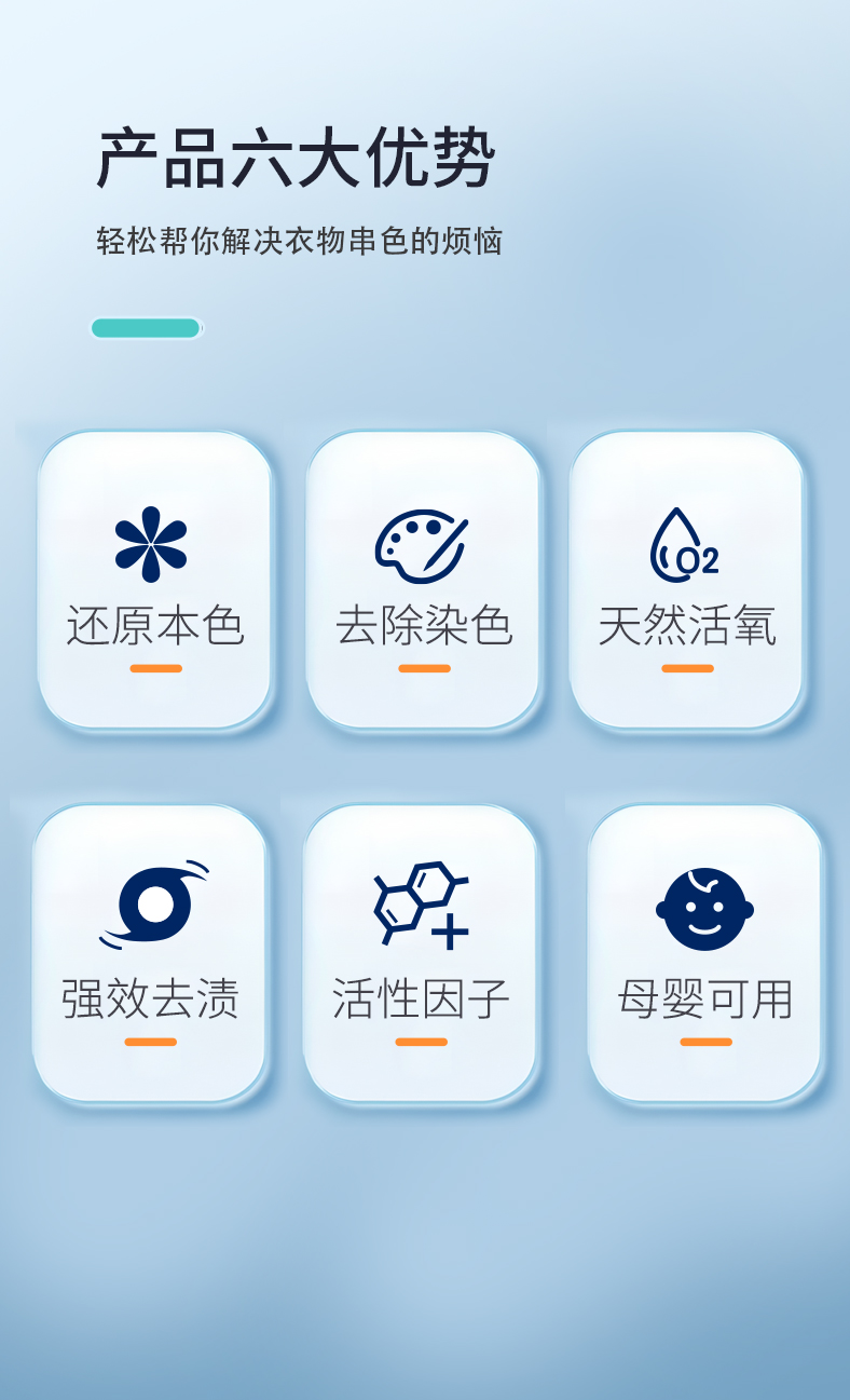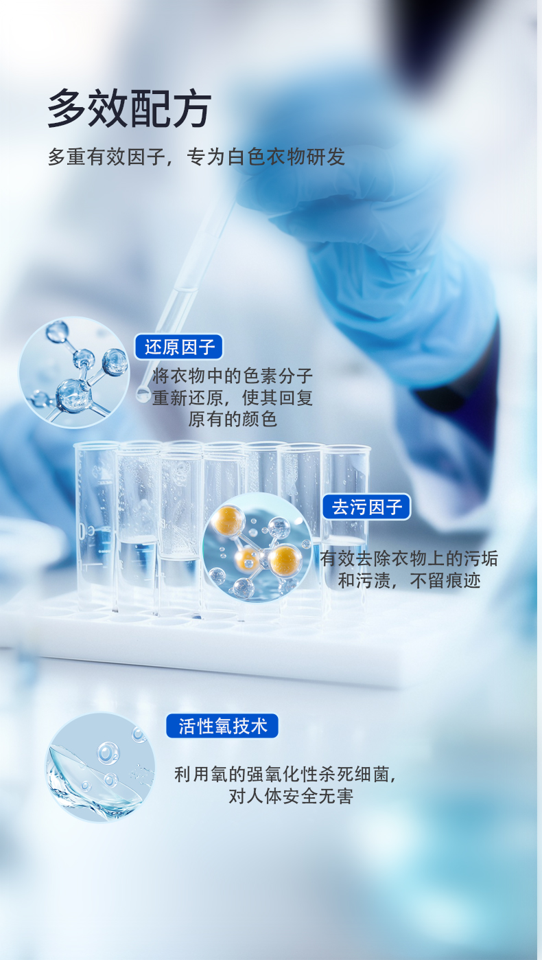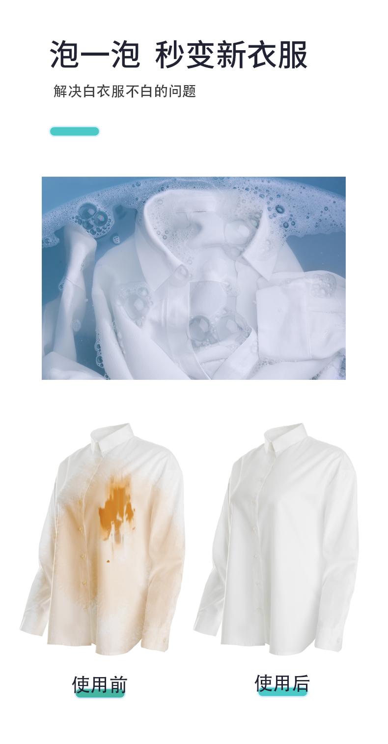 一:活氧爆破去渍,深层渗透瓦解顽固污渍,白衣还原如新,蛋白酶靶向分解蛋白质污渍,去污更精准