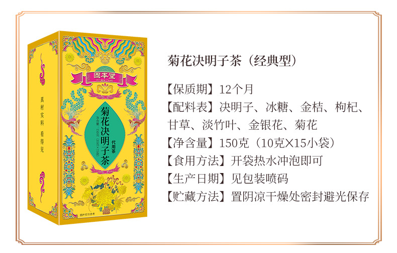 菊花决明子茶150g【有糖款】 菊花决明子金银花枸杞金桔甘草淡竹叶养生茶 【固本堂】