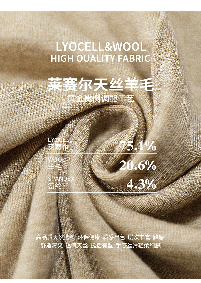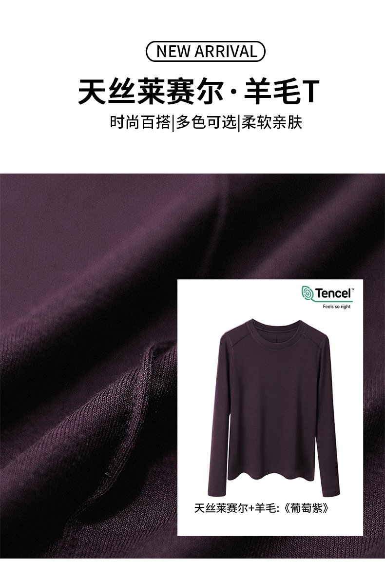 【莱赛尔天丝羊毛长袖T恤】显瘦上衣 秋季新款内搭鱼骨线打底衫