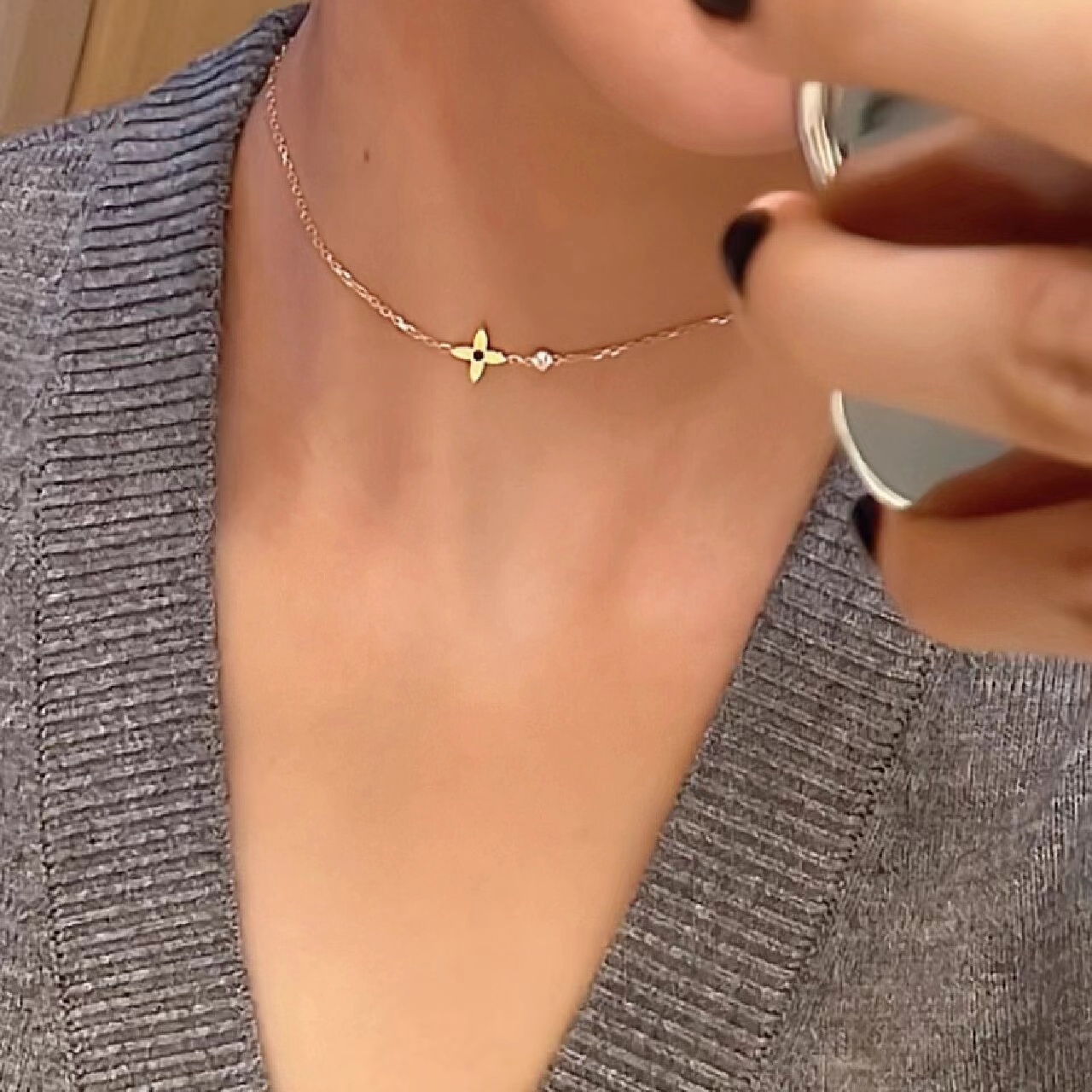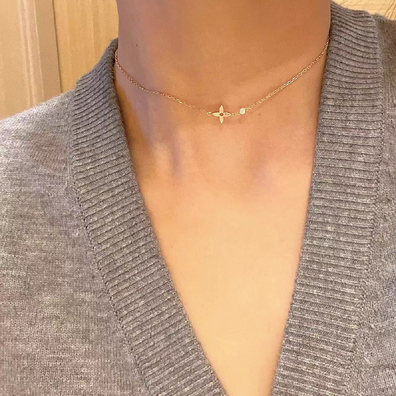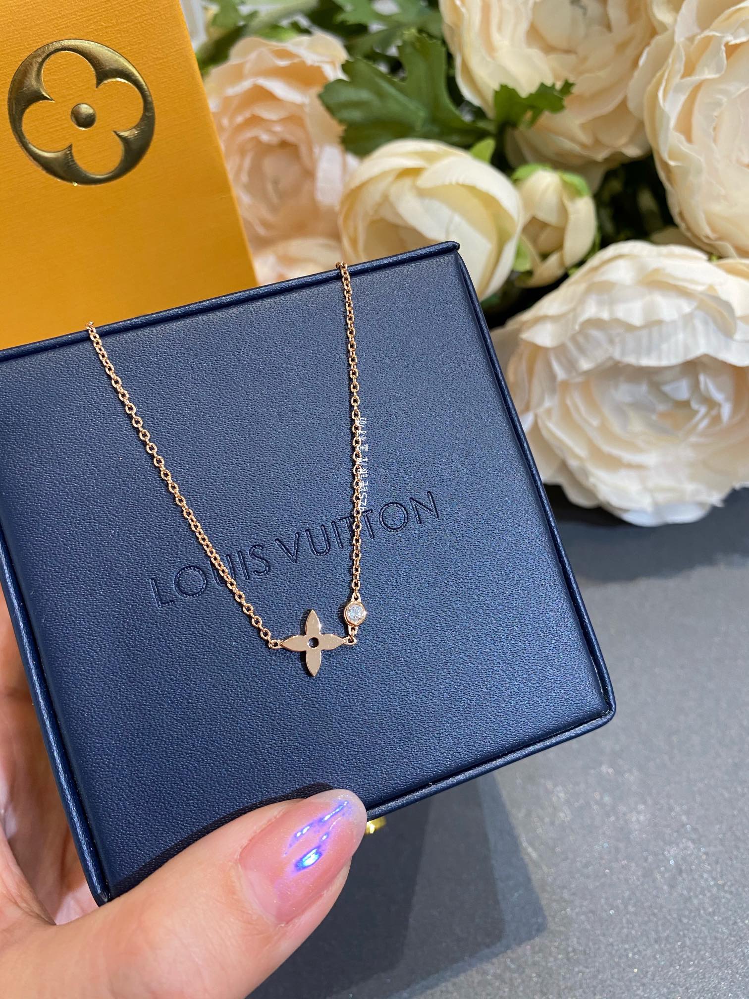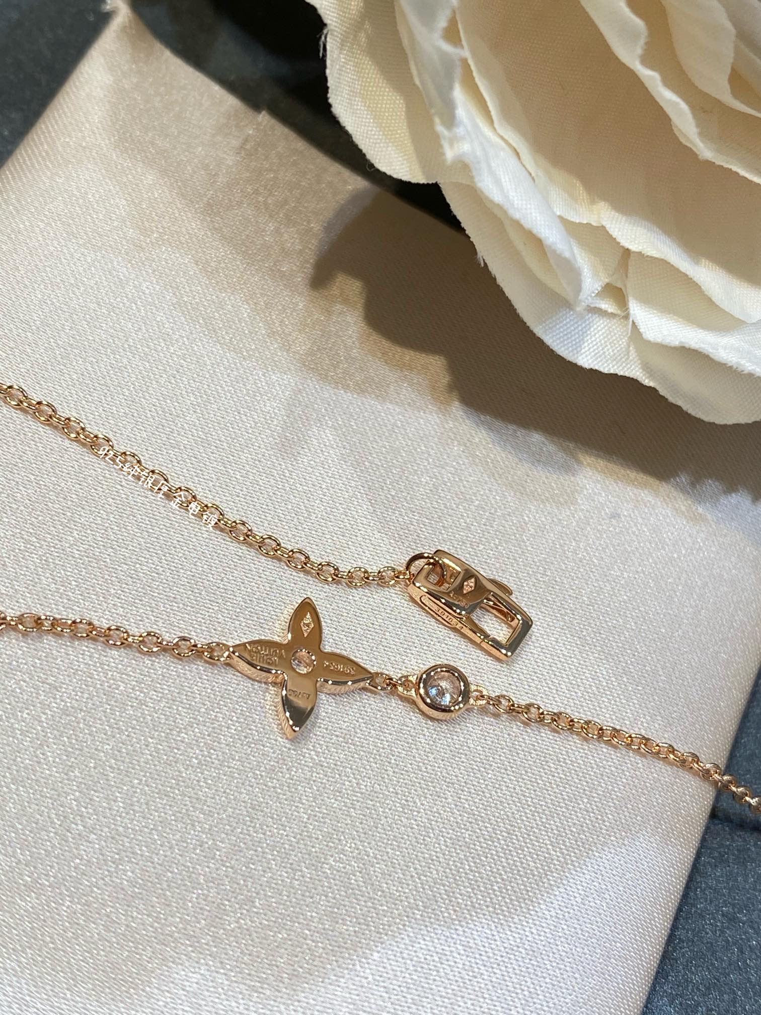 经典老花mini锁骨链,妩媚、俏丽,Idylle Blossom系列Monogram花卉,充满生命力。整系列都是非常立体的花卉珠宝,必须使用cnc精雕来完成,除了工艺,花卉的形状也是非常重要的,修身的花型和钻石呼应,上身和专柜O差别哦