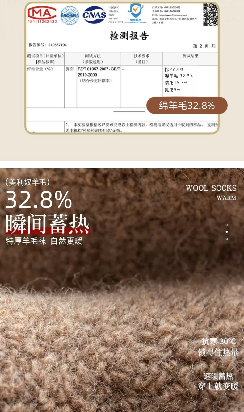 【69元8双】AILISCOCO速暖羊毛袜 | 高弹舒适 锁温保暖 柔软亲肤 男女款