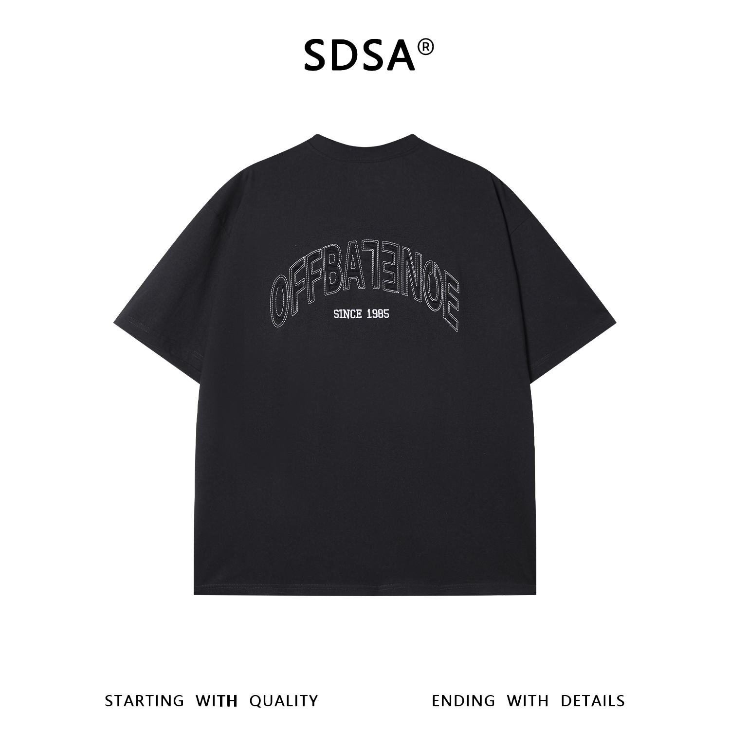 SDSA男装2026新款高贵轻奢极简风美式撞色刺绣字母圆领短袖T恤潮