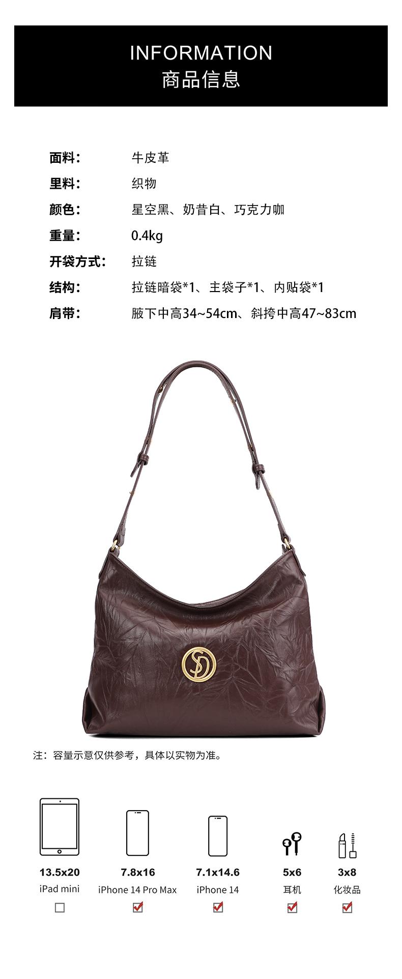 SADI萨迪 百搭时尚挂耳托特单肩包秋冬经典压纹轻奢休闲腋下包SDX20890