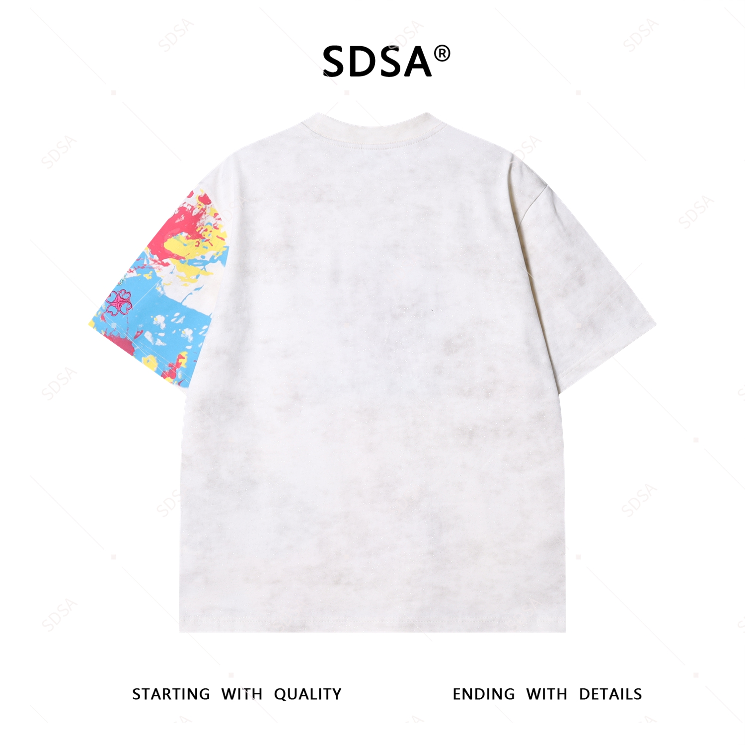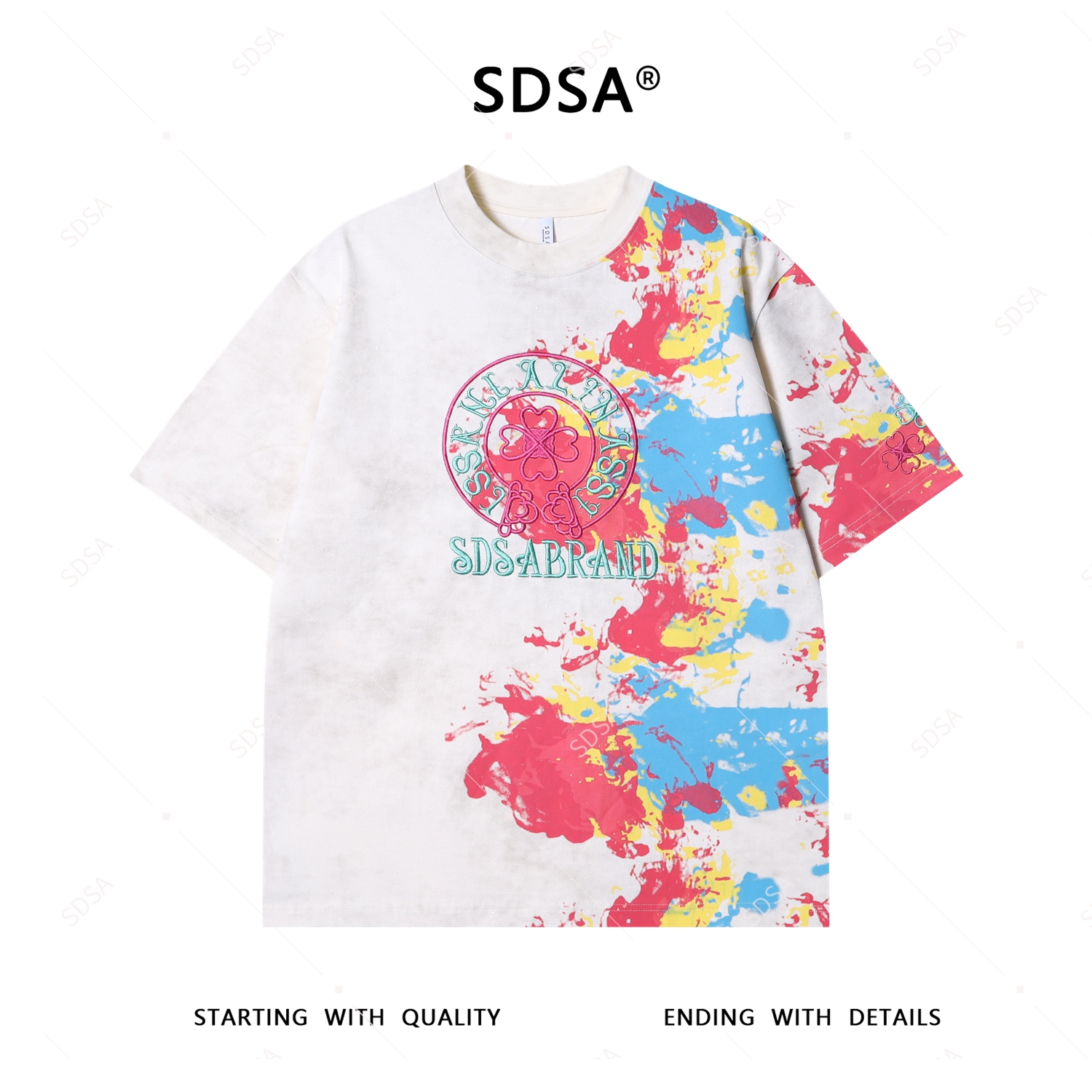 T3543夏季高级感新款男士美式扎染破烂设计圆领短袖T恤高街时尚上衣