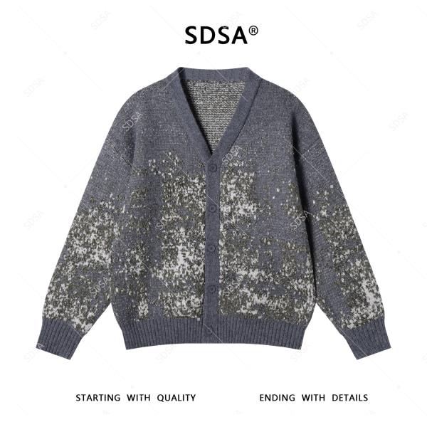 72522SDSA男士秋冬新款轻奢痞帅男装韩版纽扣V领针织衫百搭开衫毛衣