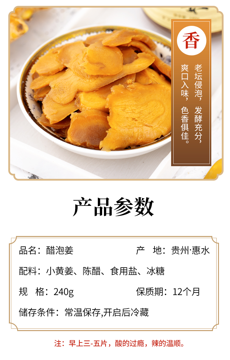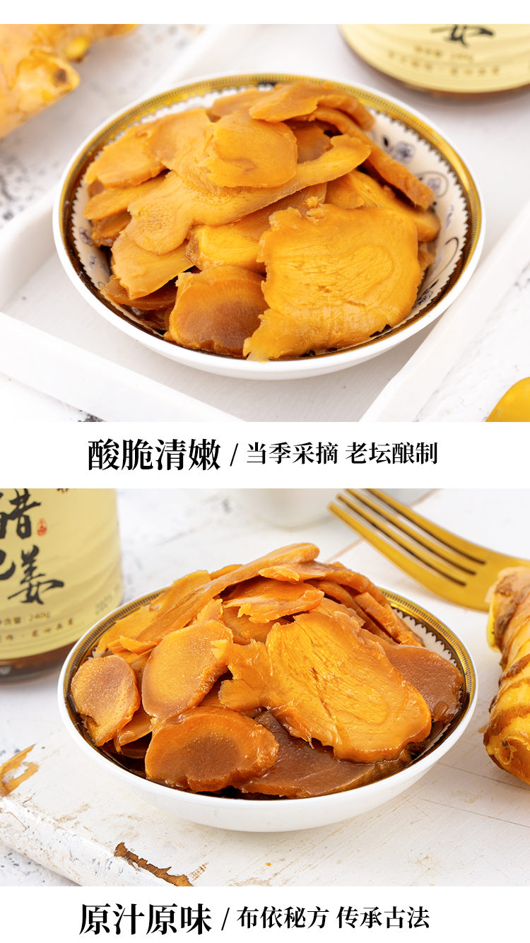 根善·贵州惠水醋泡姜 240g 无防腐剂添加剂 当地扶贫小黄姜 自然农法种植 一日三片姜赛过喝参汤