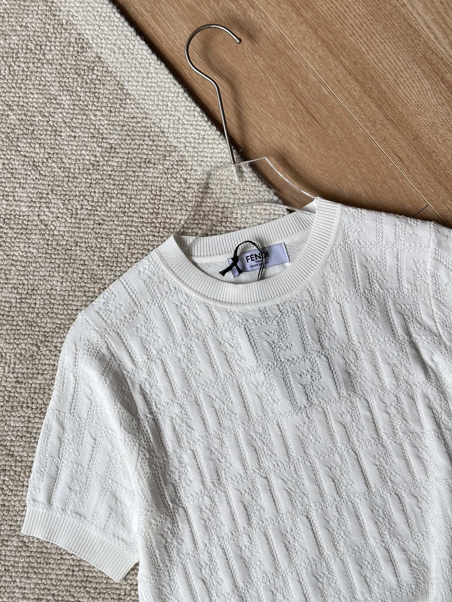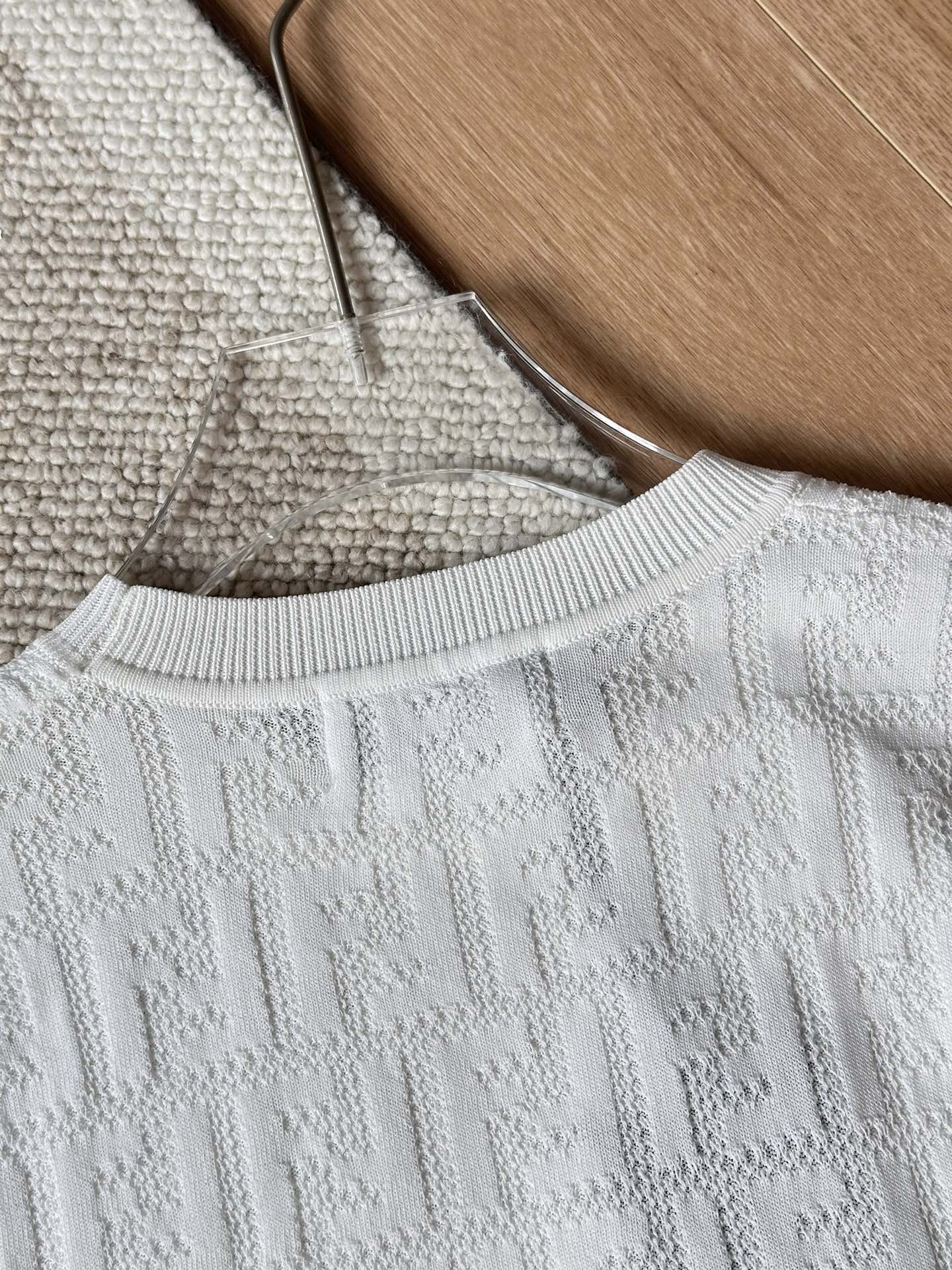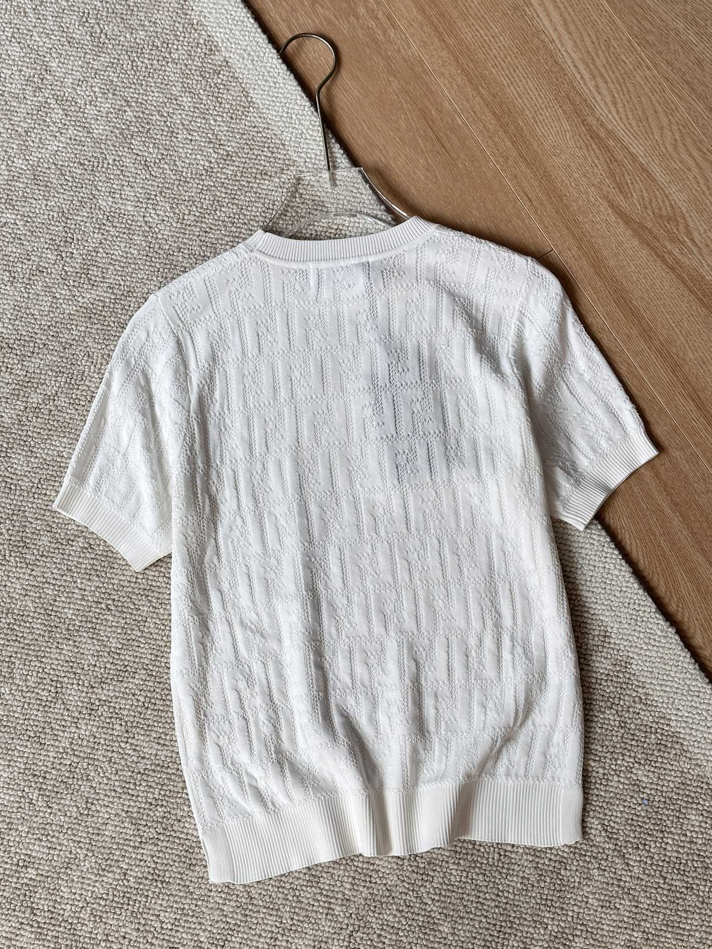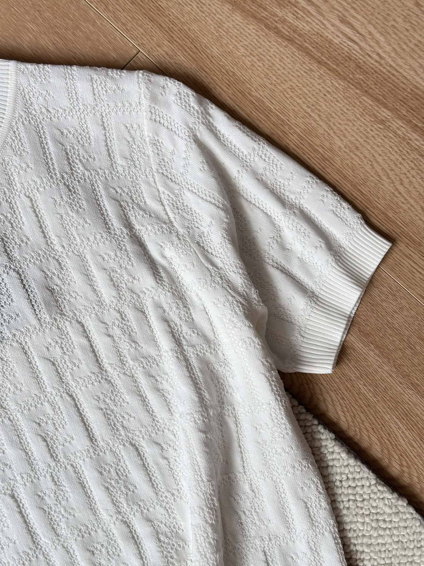 FEND*.芬迪25春夏最新款双F短袖针织衫 FEND女孩们!集合! 法国人的订单!外面绝对找不到!独家渠道,你们尽管去外面比价,我这货源可是直通源头 延续FEND标志性FF镂空老花图案,以满印形式覆盖整件!镂空的针织面料,简直是为夏天而生哈哈,面料上身凉凉的,完全不会闷热!! 小圆领自带慵懒感,还能看到若隐若现的小镂空,小心机直接拉满!按头安利给你们