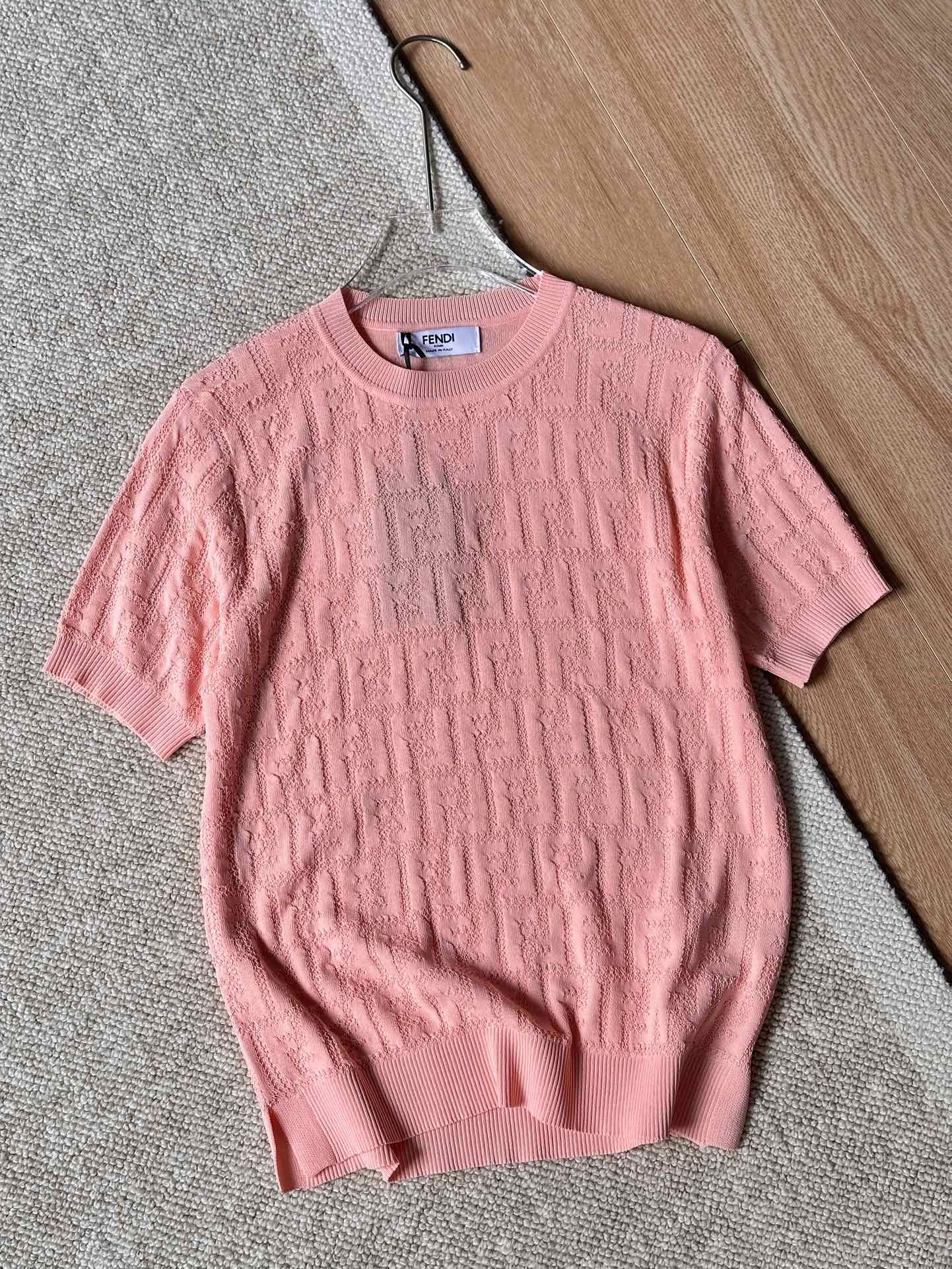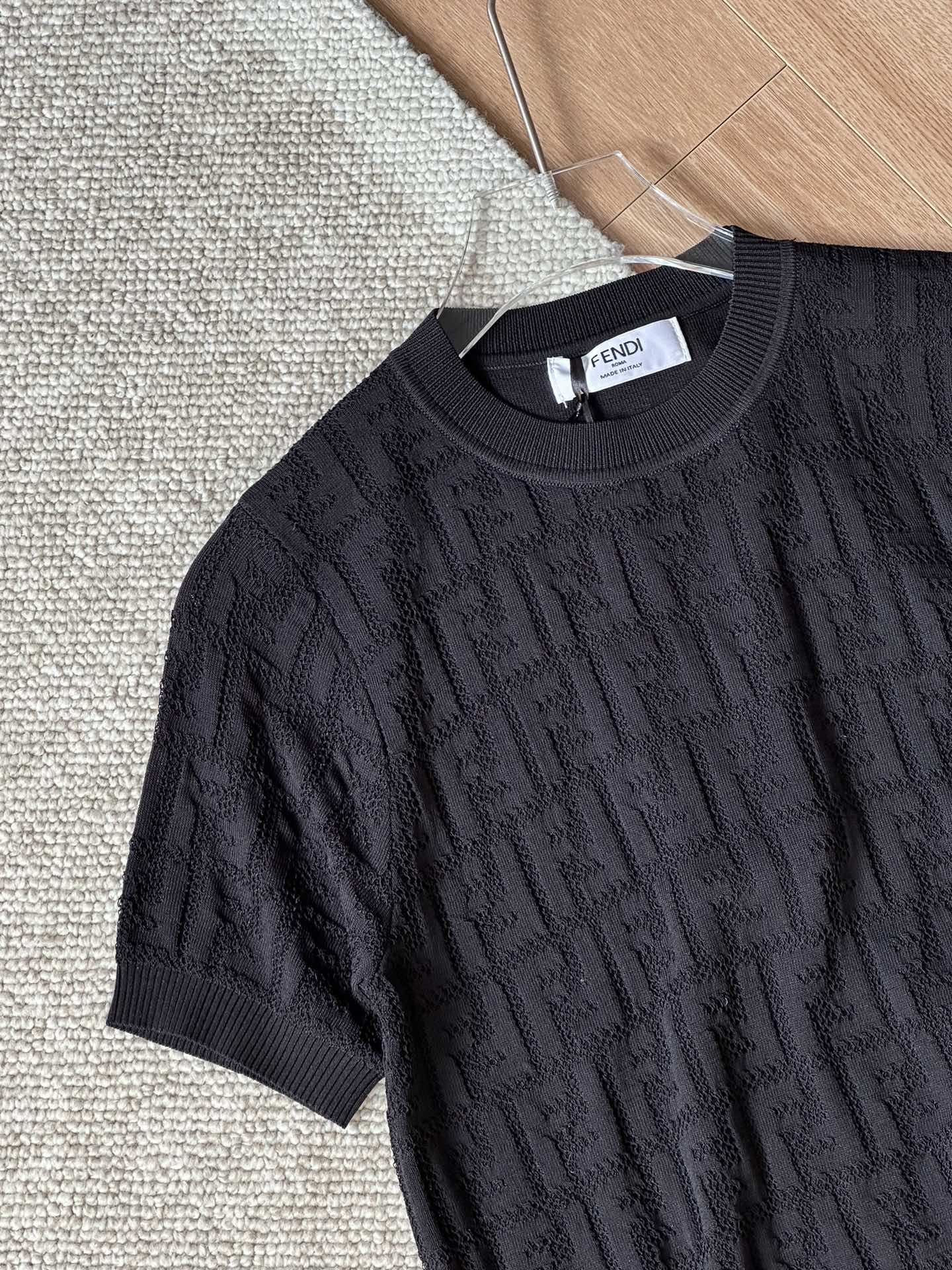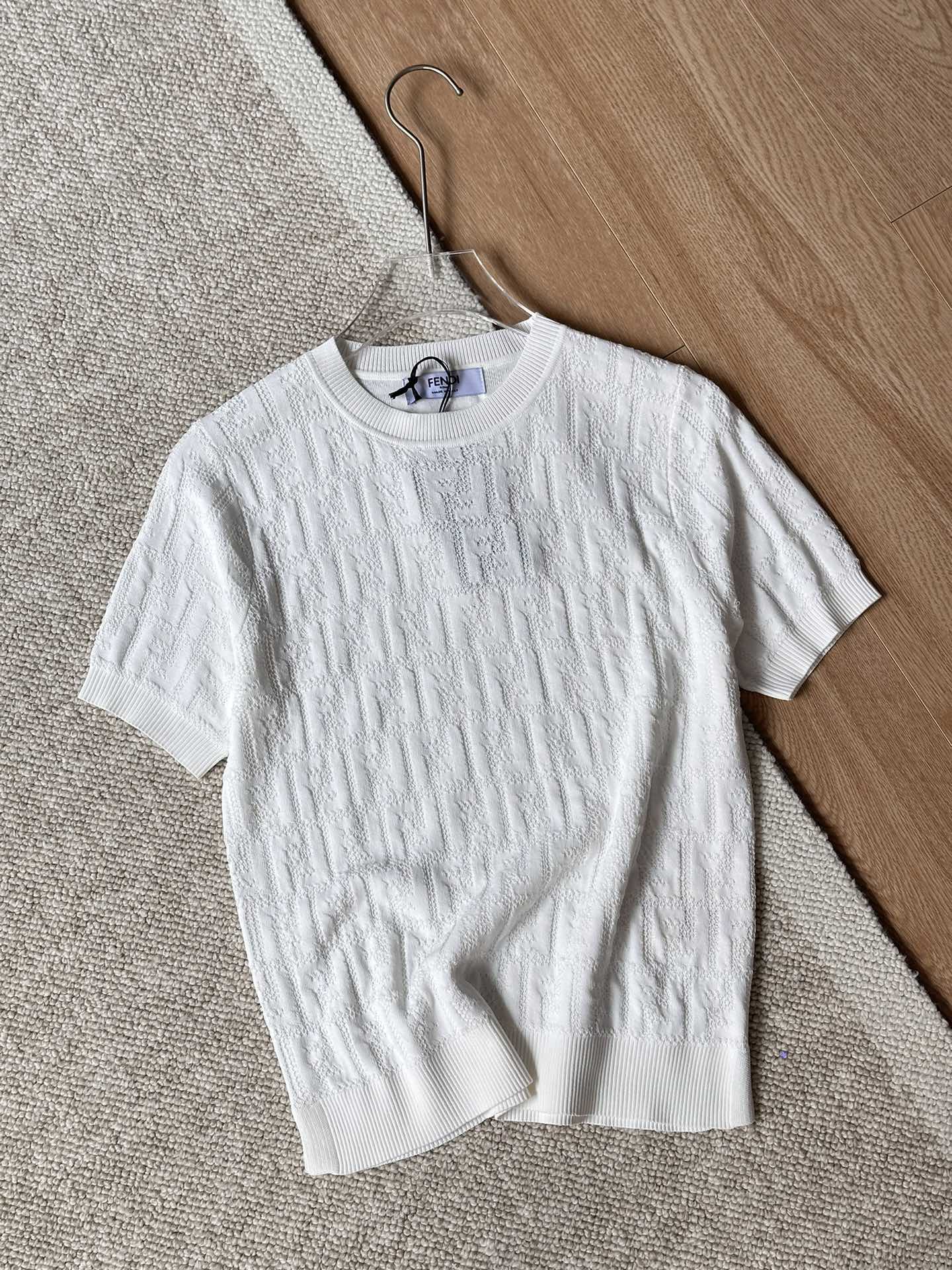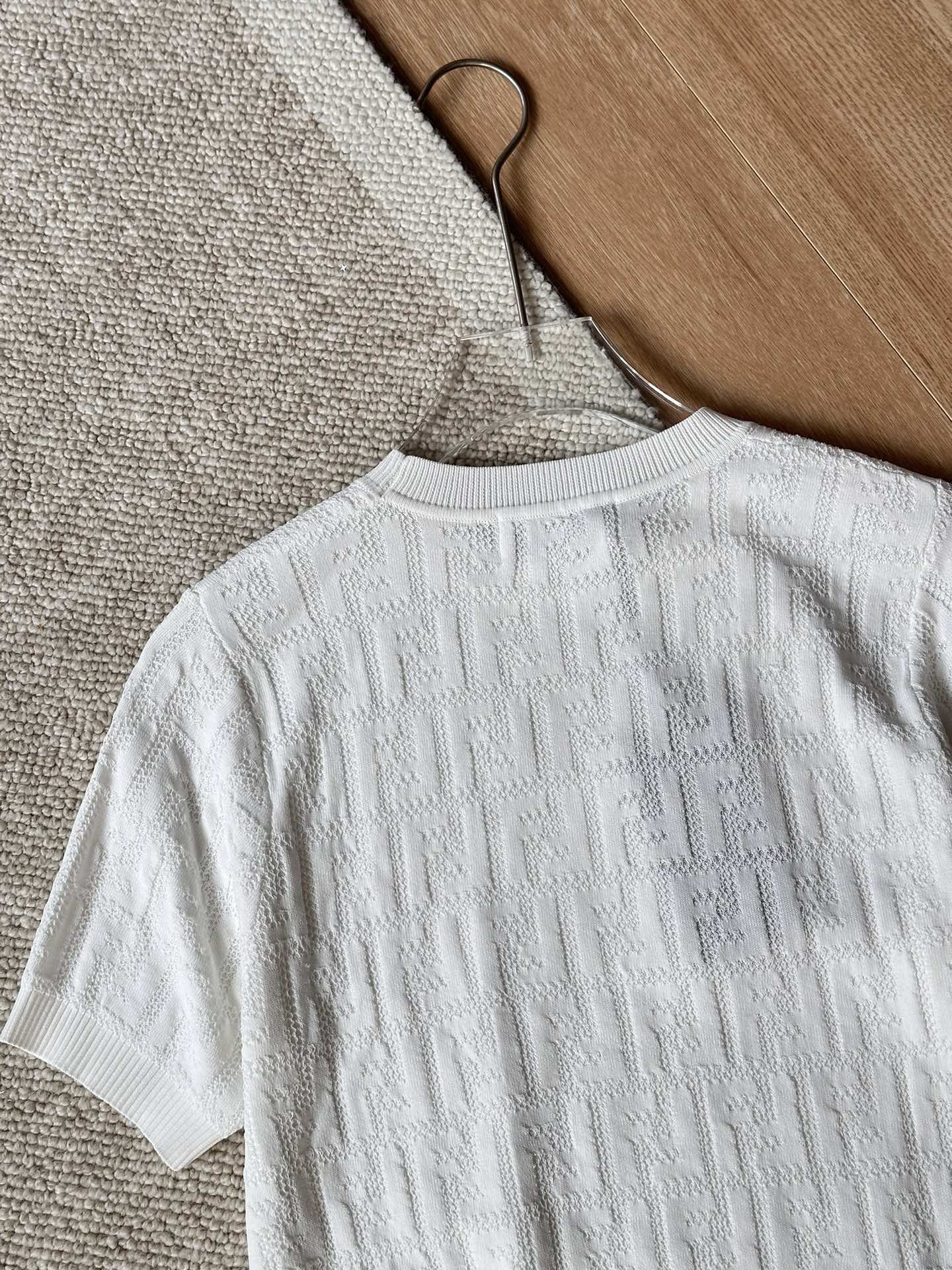 FEND*.芬迪25春夏最新款双F短袖针织衫 FEND女孩们!集合! 法国人的订单!外面绝对找不到!独家渠道,你们尽管去外面比价,我这货源可是直通源头 延续FEND标志性FF镂空老花图案,以满印形式覆盖整件!镂空的针织面料,简直是为夏天而生哈哈,面料上身凉凉的,完全不会闷热!! 小圆领自带慵懒感,还能看到若隐若现的小镂空,小心机直接拉满!按头安利给你们