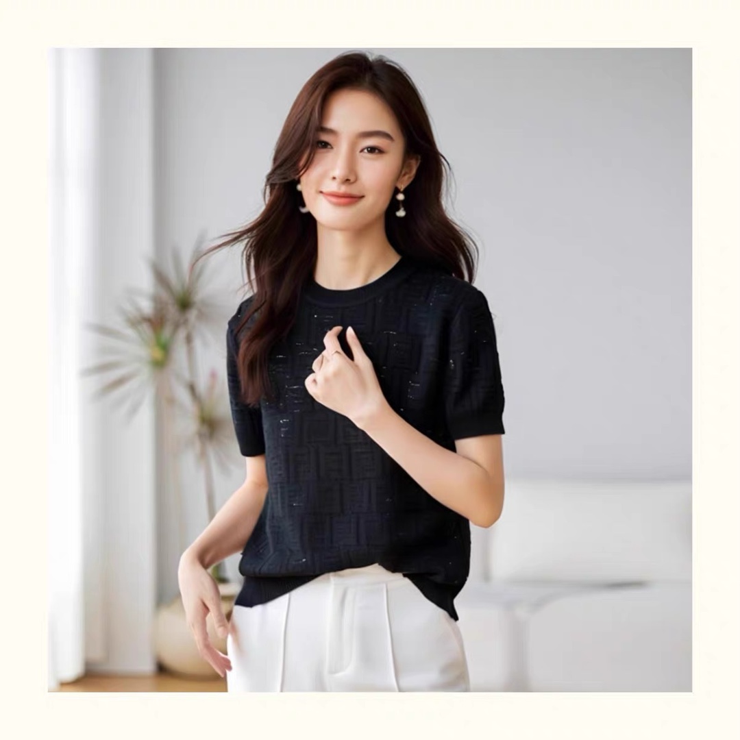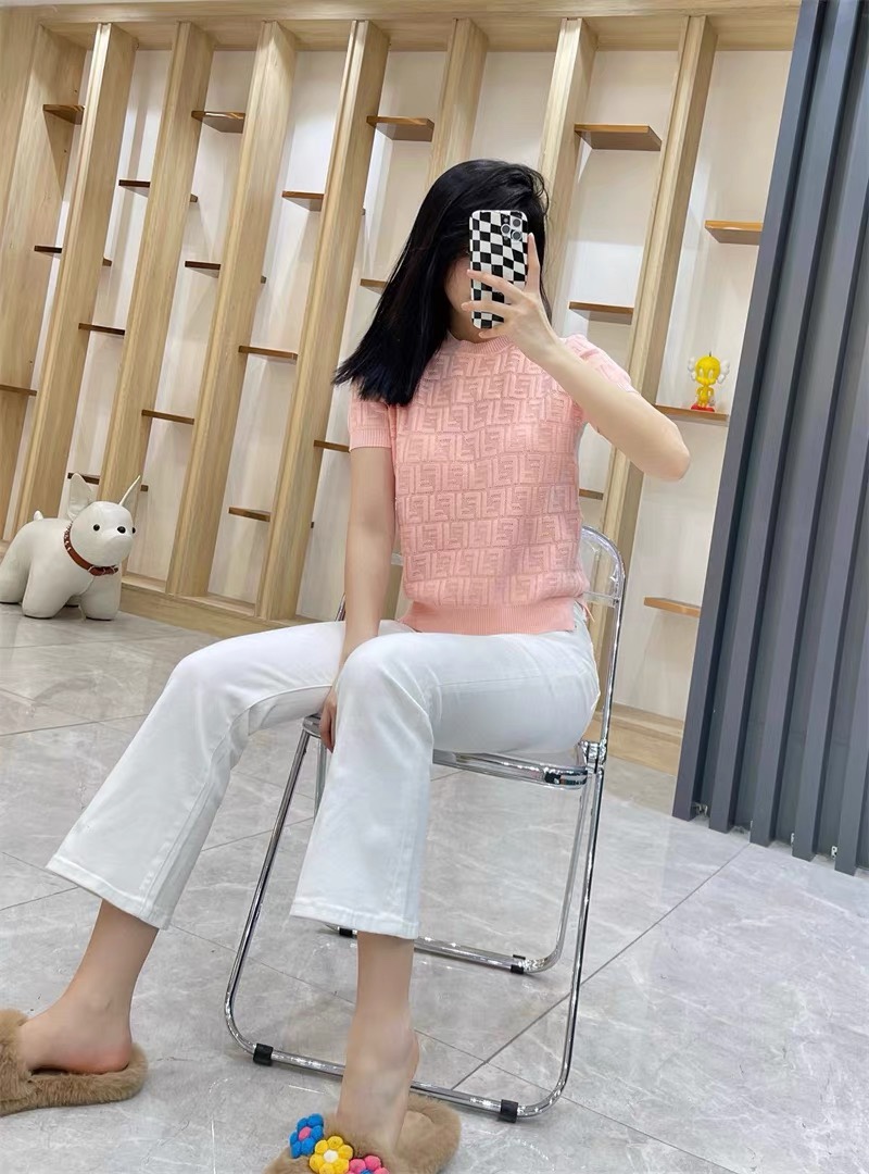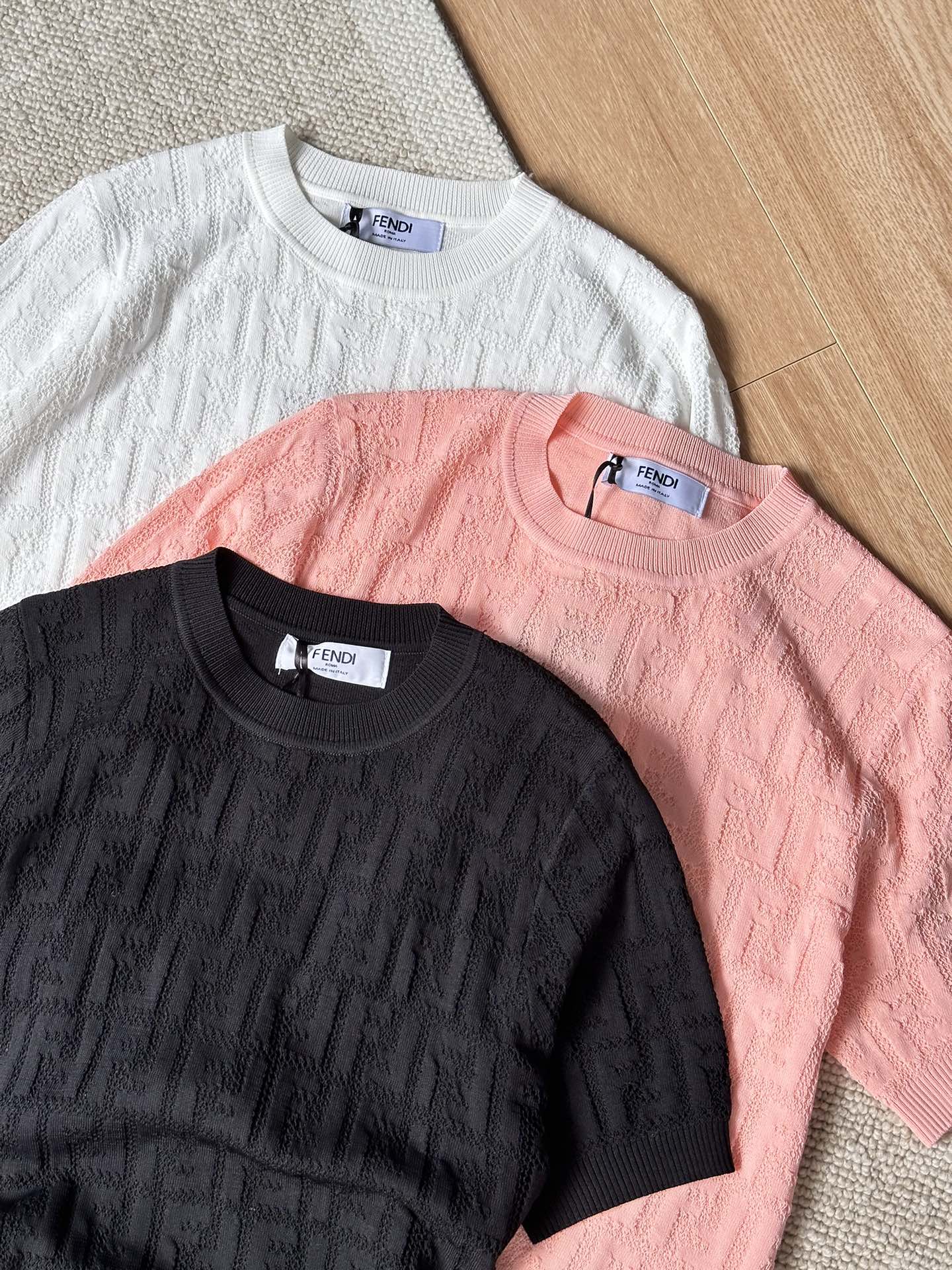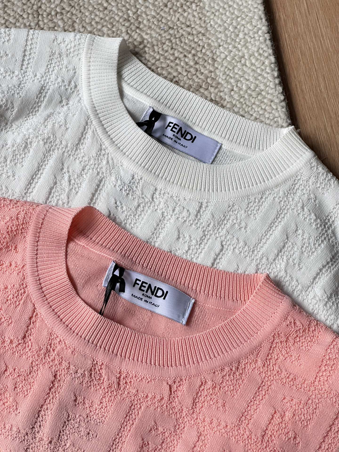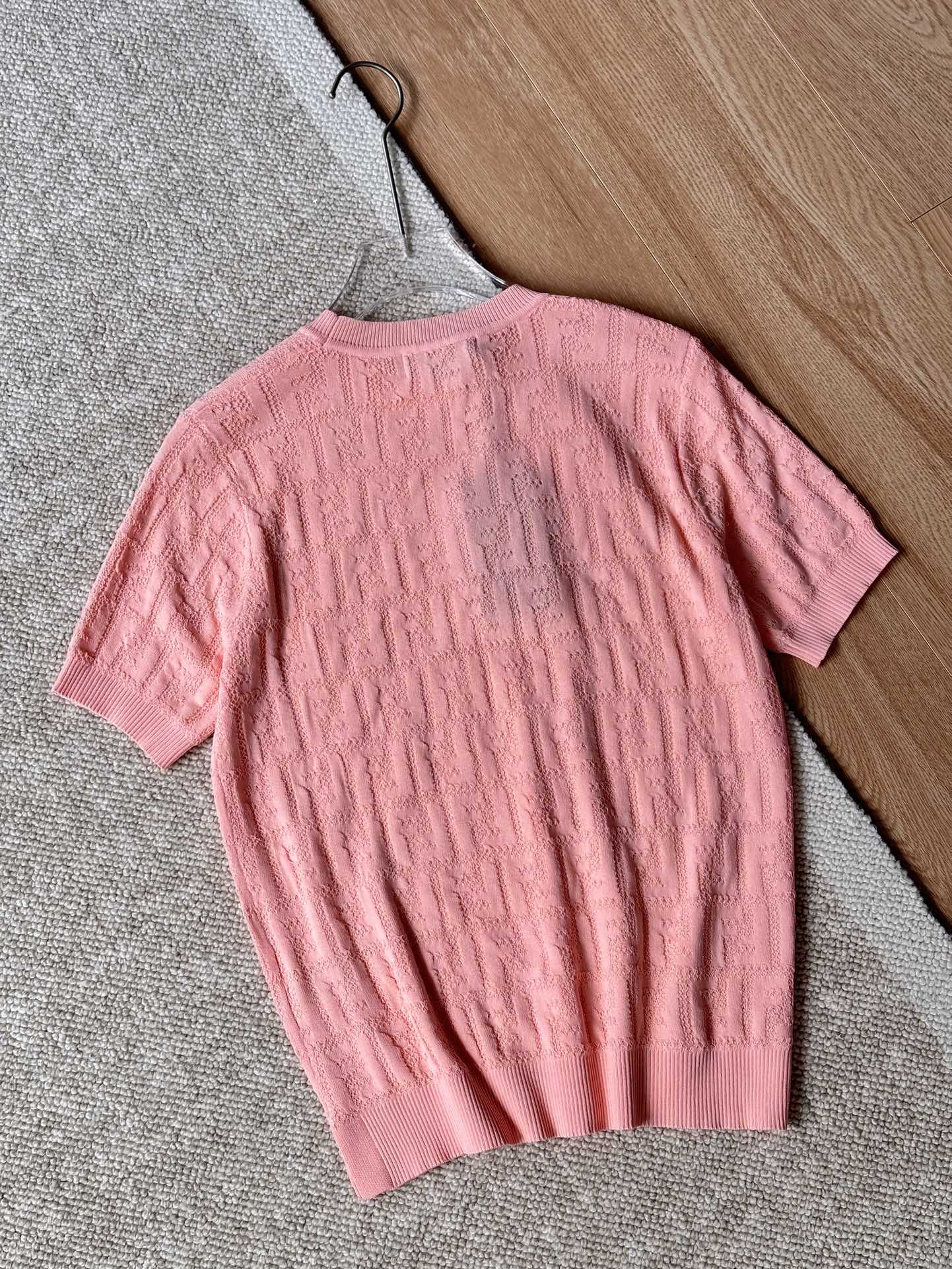 FEND*.芬迪25春夏最新款双F短袖针织衫 FEND女孩们!集合! 法国人的订单!外面绝对找不到!独家渠道,你们尽管去外面比价,我这货源可是直通源头 延续FEND标志性FF镂空老花图案,以满印形式覆盖整件!镂空的针织面料,简直是为夏天而生哈哈,面料上身凉凉的,完全不会闷热!! 小圆领自带慵懒感,还能看到若隐若现的小镂空,小心机直接拉满!按头安利给你们