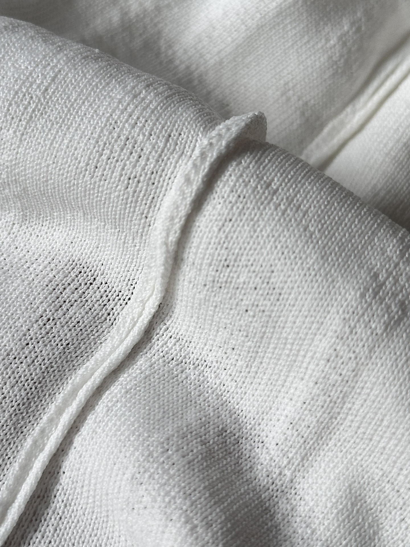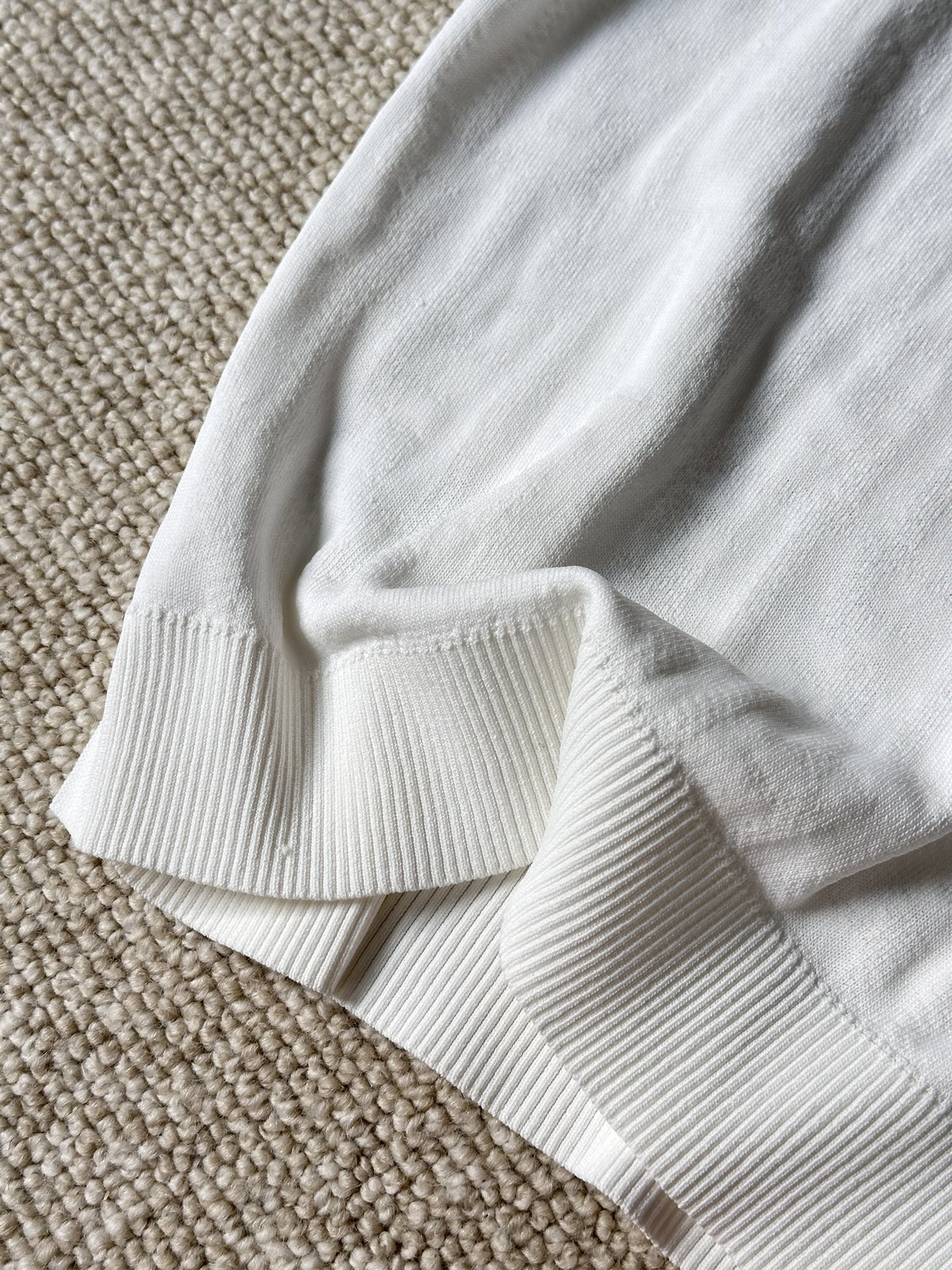 领口与袖口采用18针精纺手法,确保版型挺括,不勒脖的领口让上身整体更加简洁