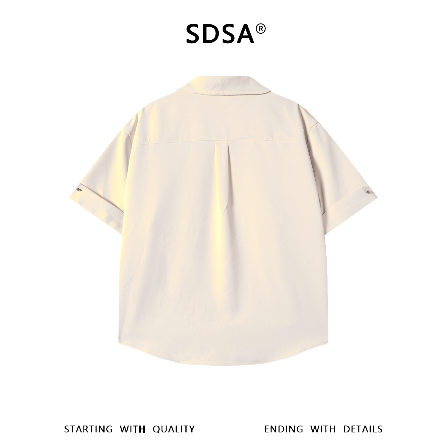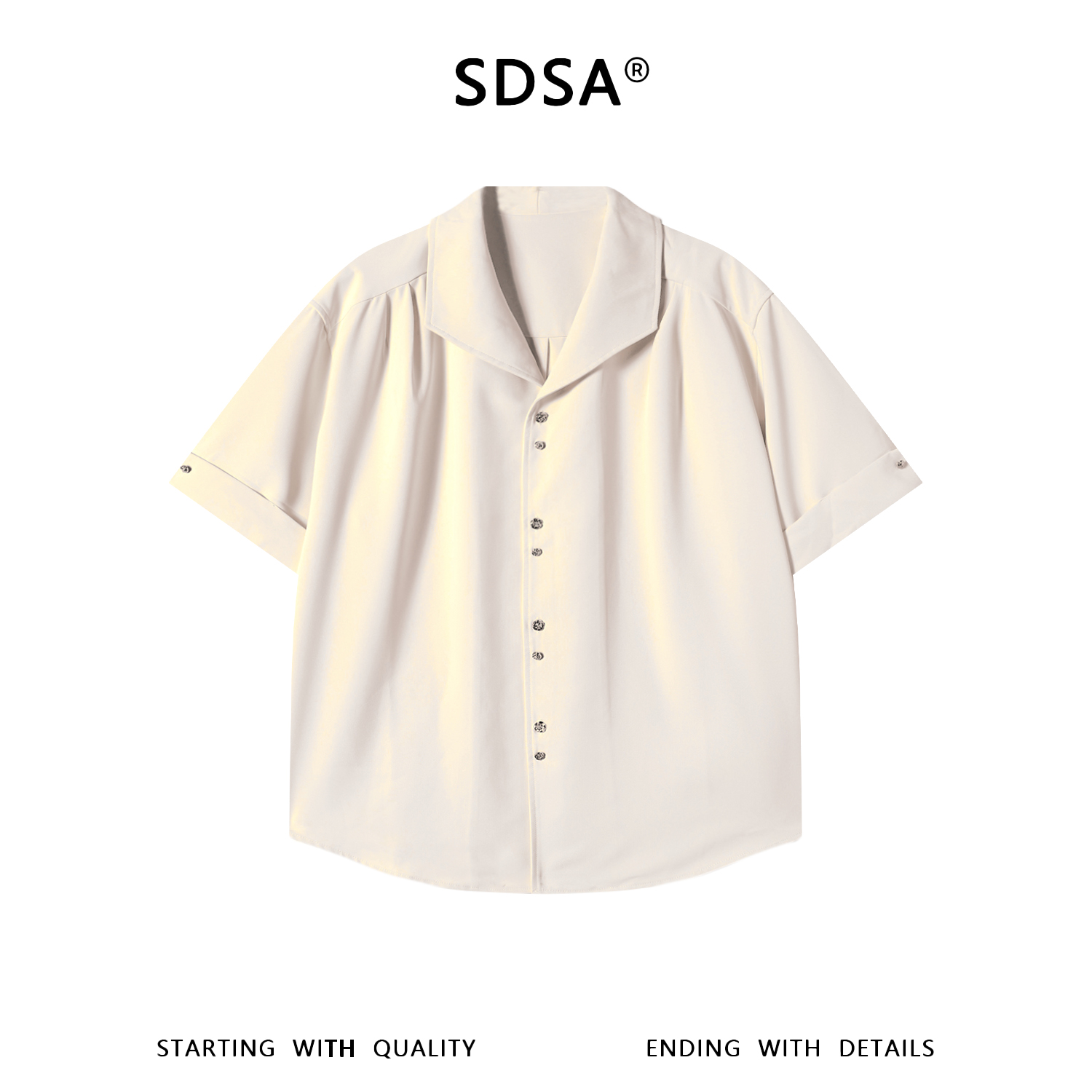 SDSA男装2026新款高贵轻奢简约纯色褶皱短袖衬衫百搭时尚休闲上衣