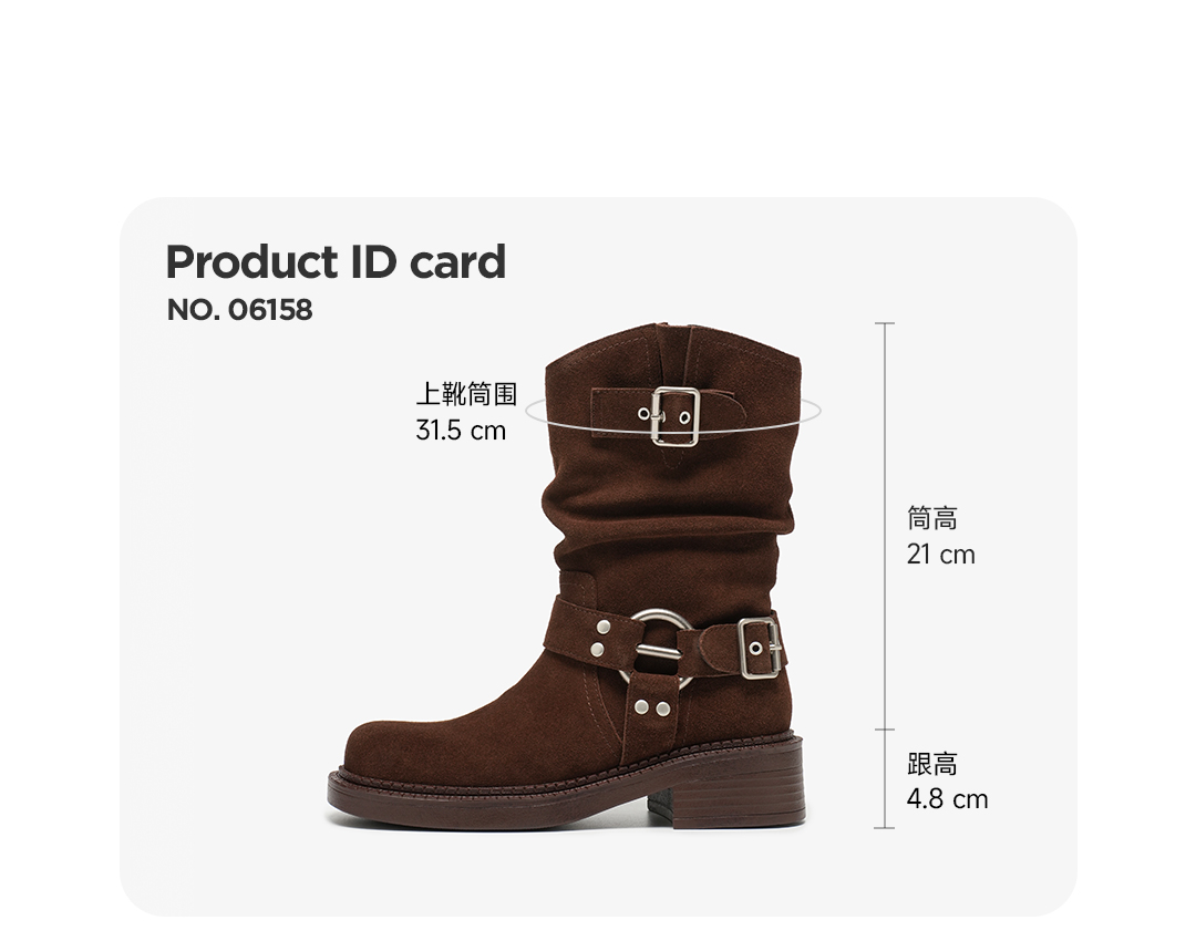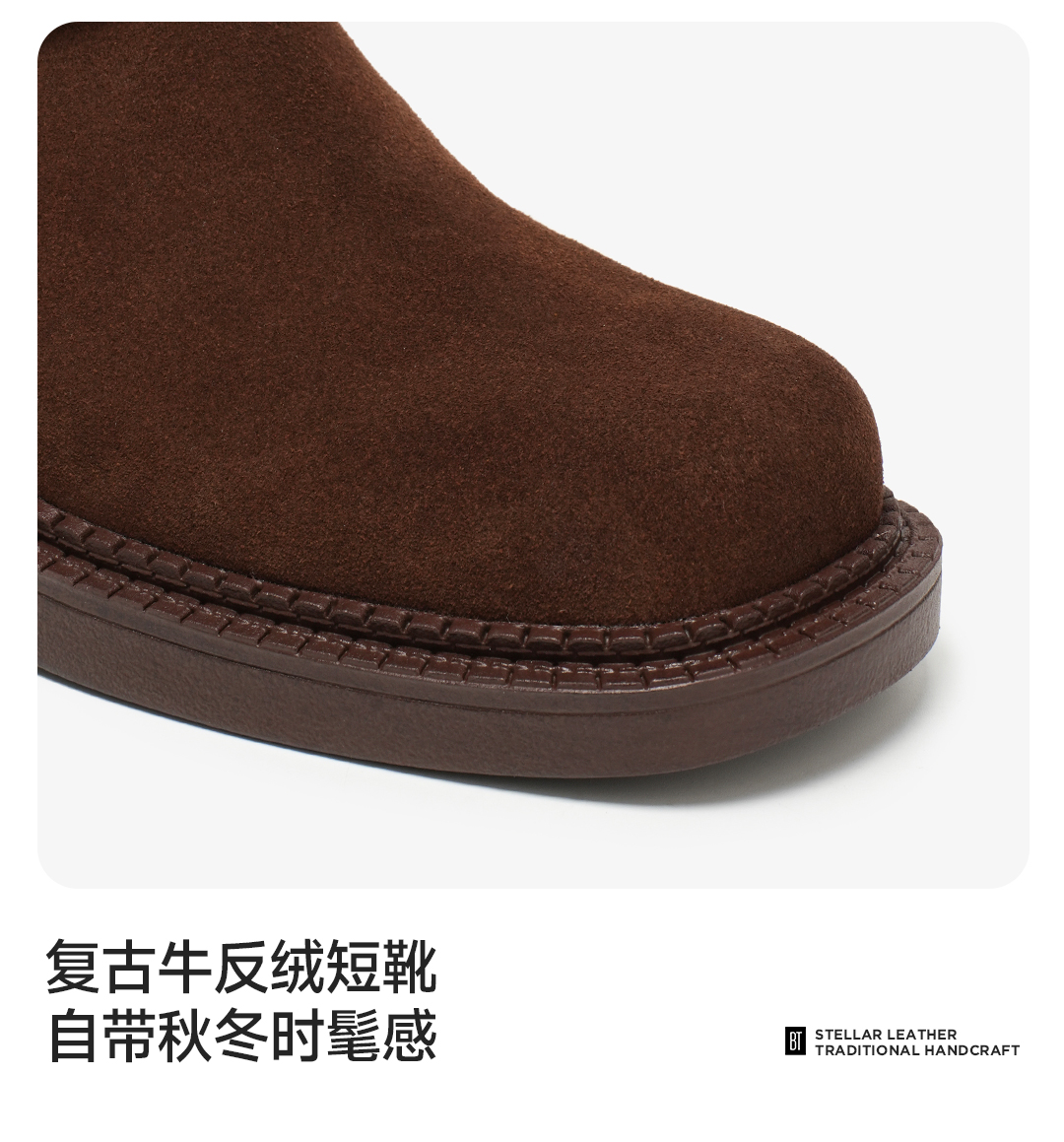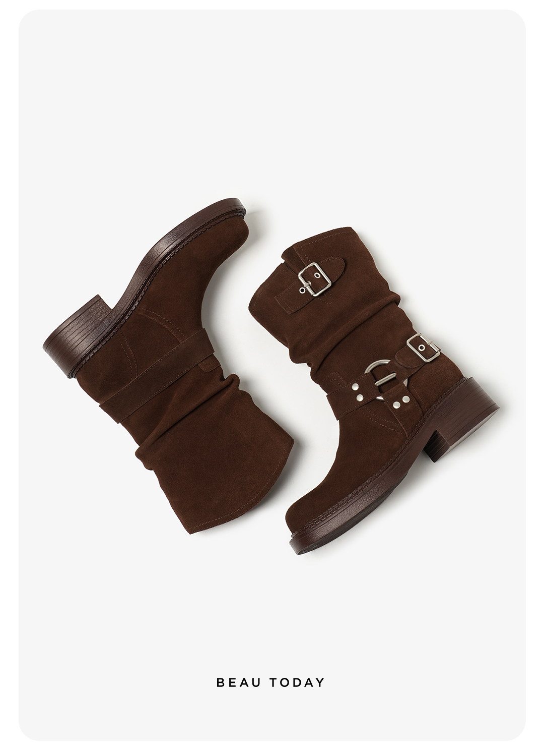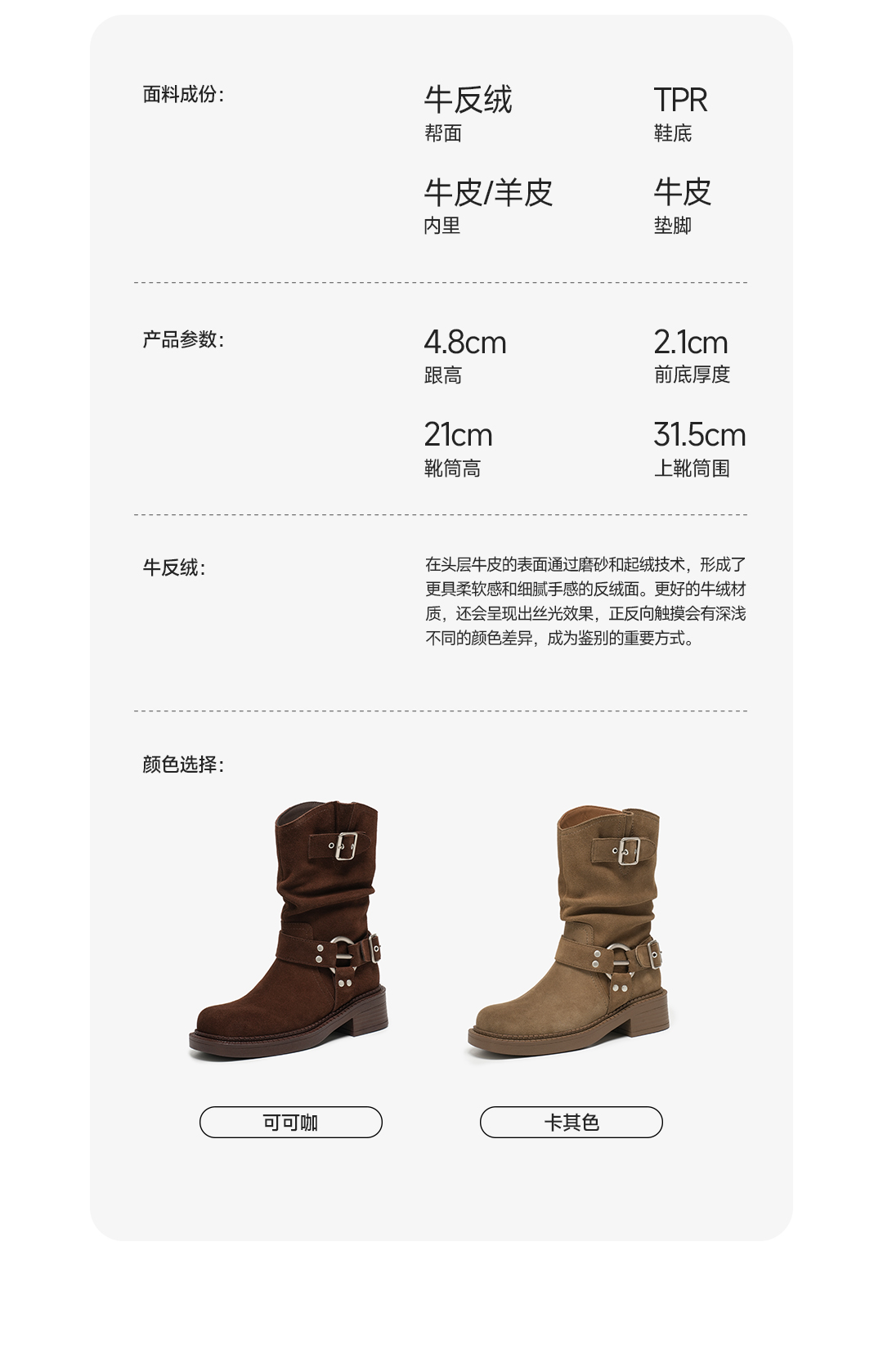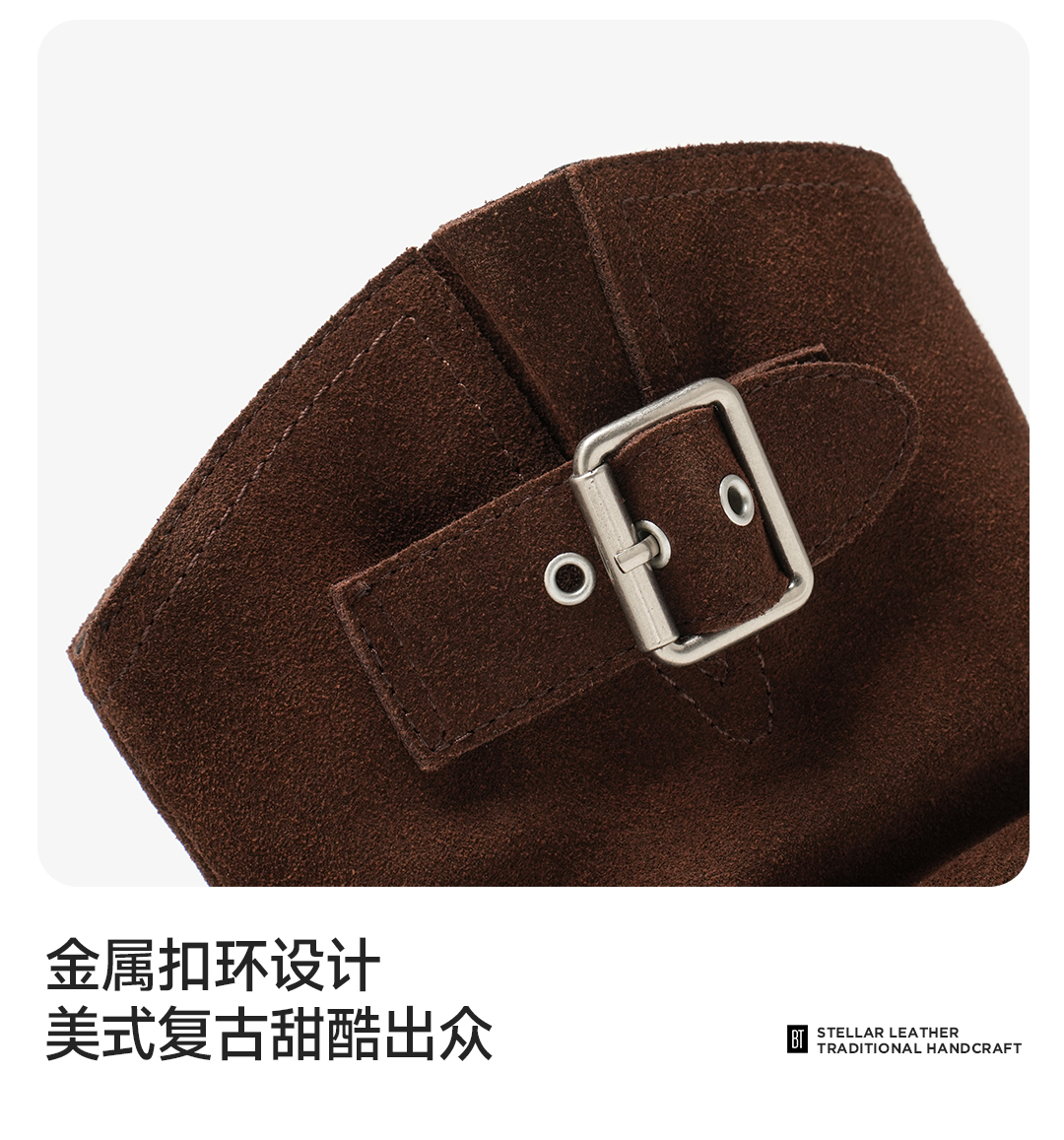 BeauToday 西部牛仔靴女复古牛反绒堆堆靴06158