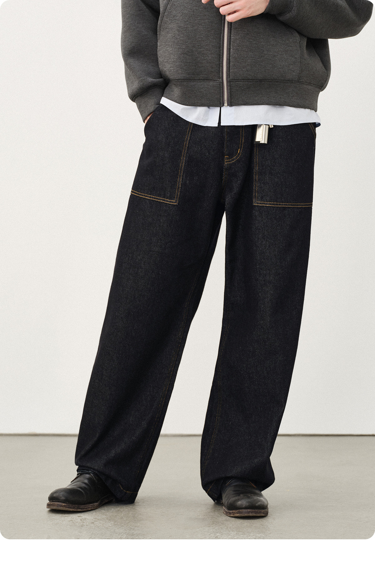 714street经典日系原色牛仔裤男2025秋季新款微宽松直筒甲板长裤