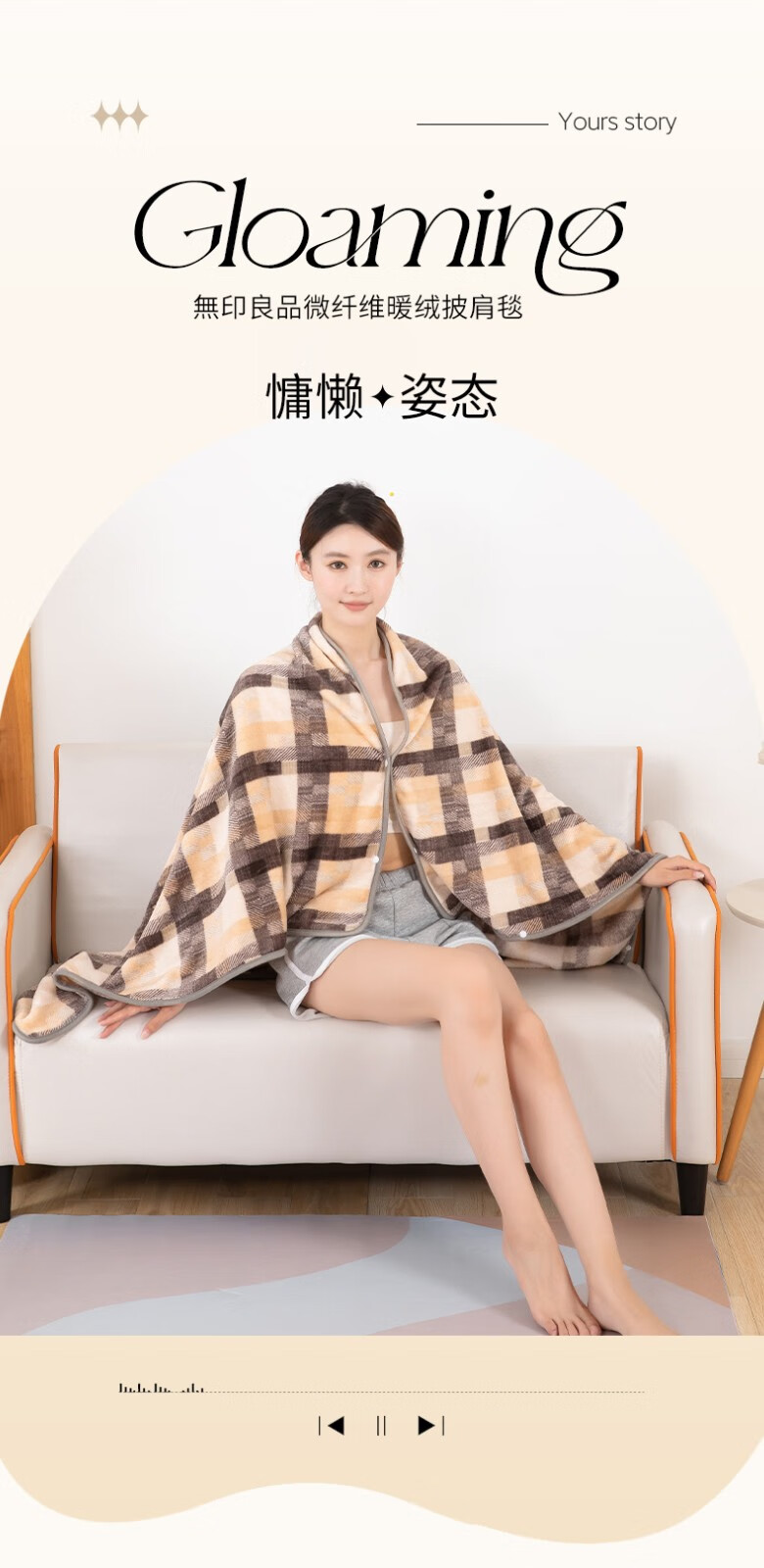 無印微纤维暖绒披肩毯 MUJI-TZ23-88