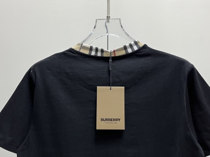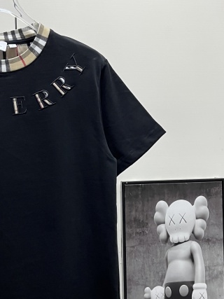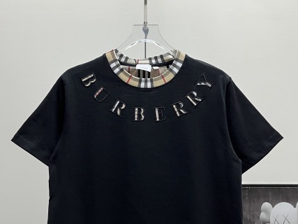 巴家 24ss 格纹领拼接刺绣字母短袖