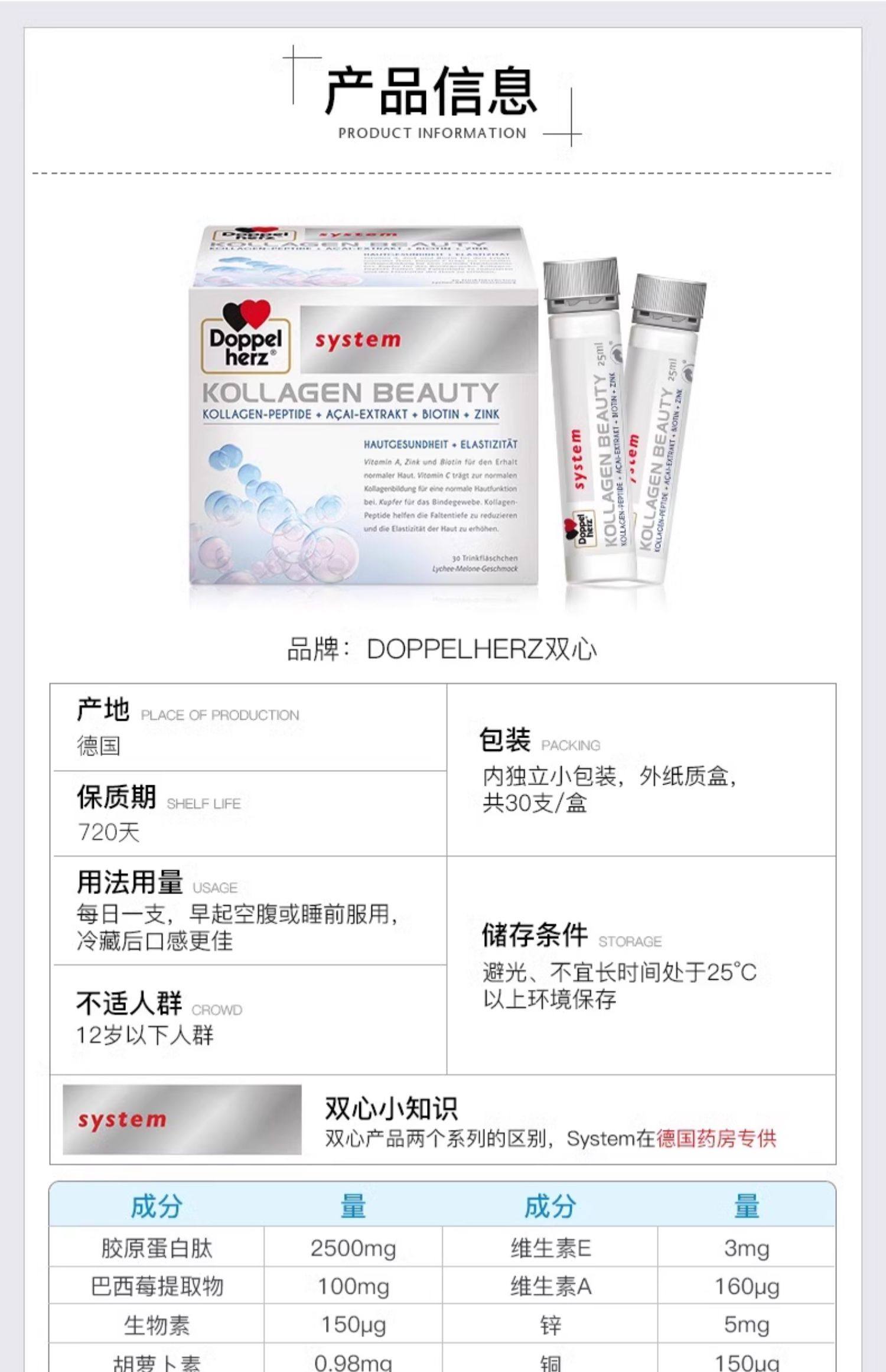 德国 双心胶原蛋白口服液水解小分子口服液肽饮 美容美颜精华饮