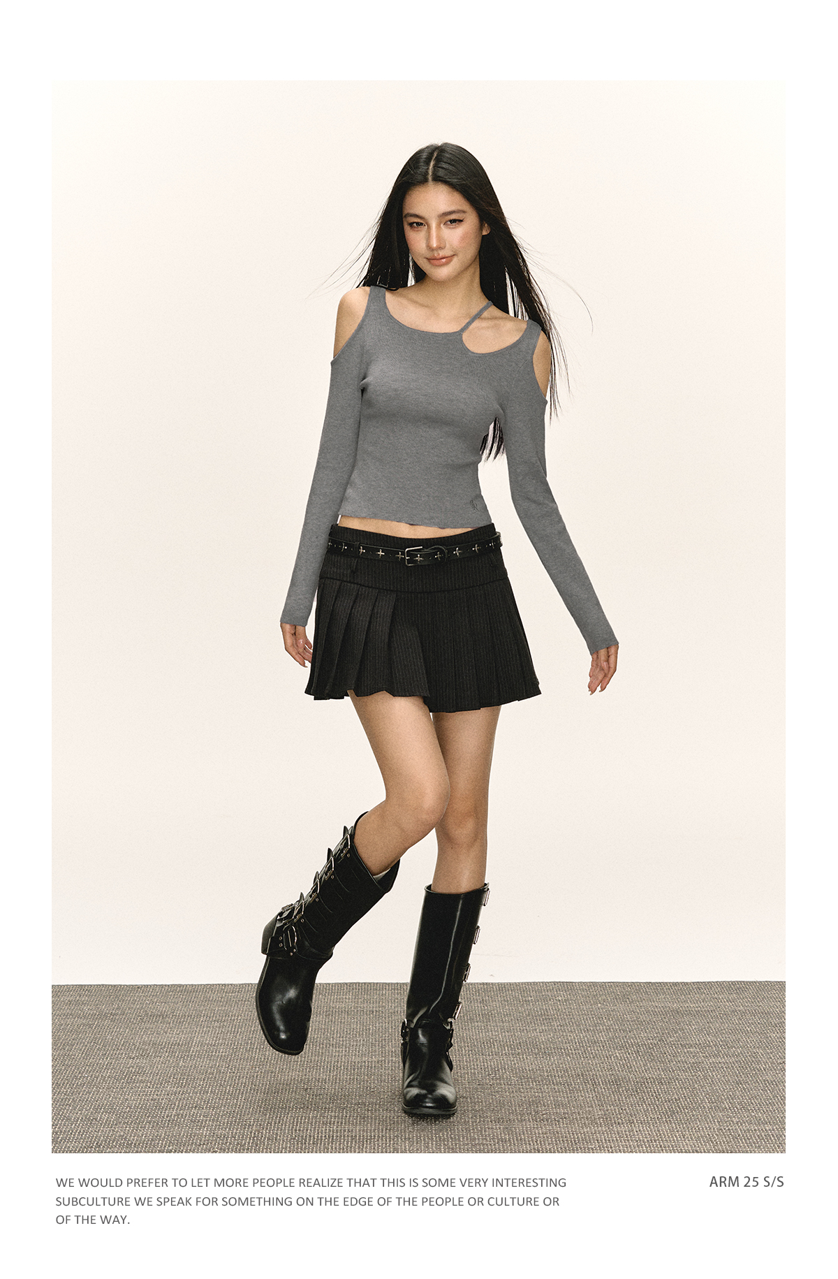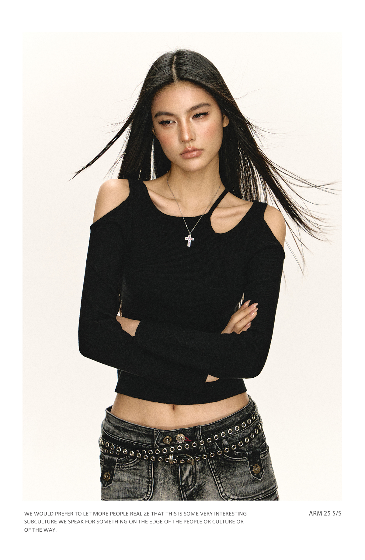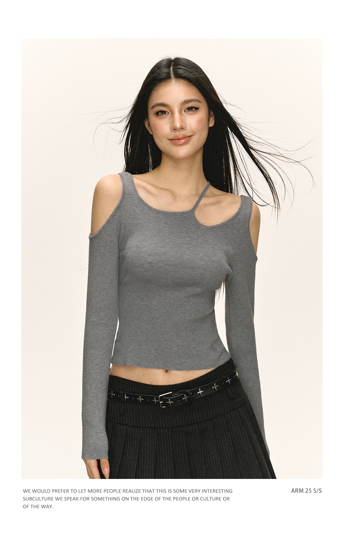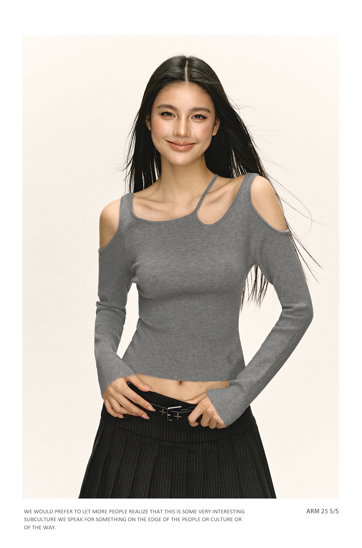 Ariseism 美式辣妹设计感一字肩长袖T恤女春季新款内搭修身上衣