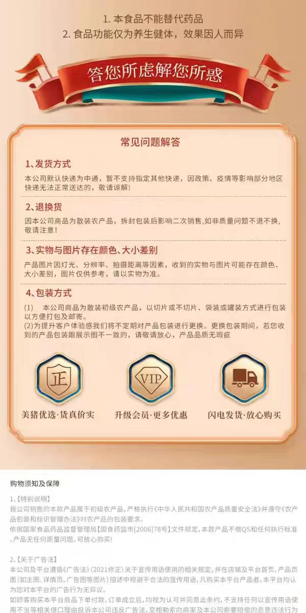 售后标准:产品质量问题、漏发、丢件、破损、售后订单的按照货款比例赔付,如需退货,运费自理。拆封食用的产品,无产品质量问题不支持退换。