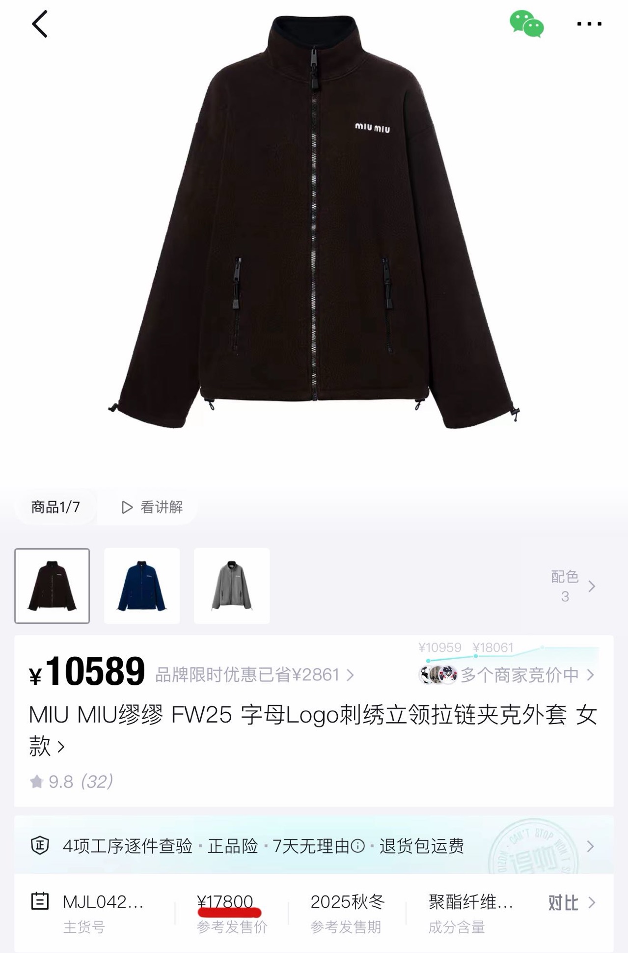 官网同源款为抓绒拉链外套(款号MMJ765_157D_F0236),定价16500元💰(中国区),欧洲区定价2000欧元,美国区定价2150美元。