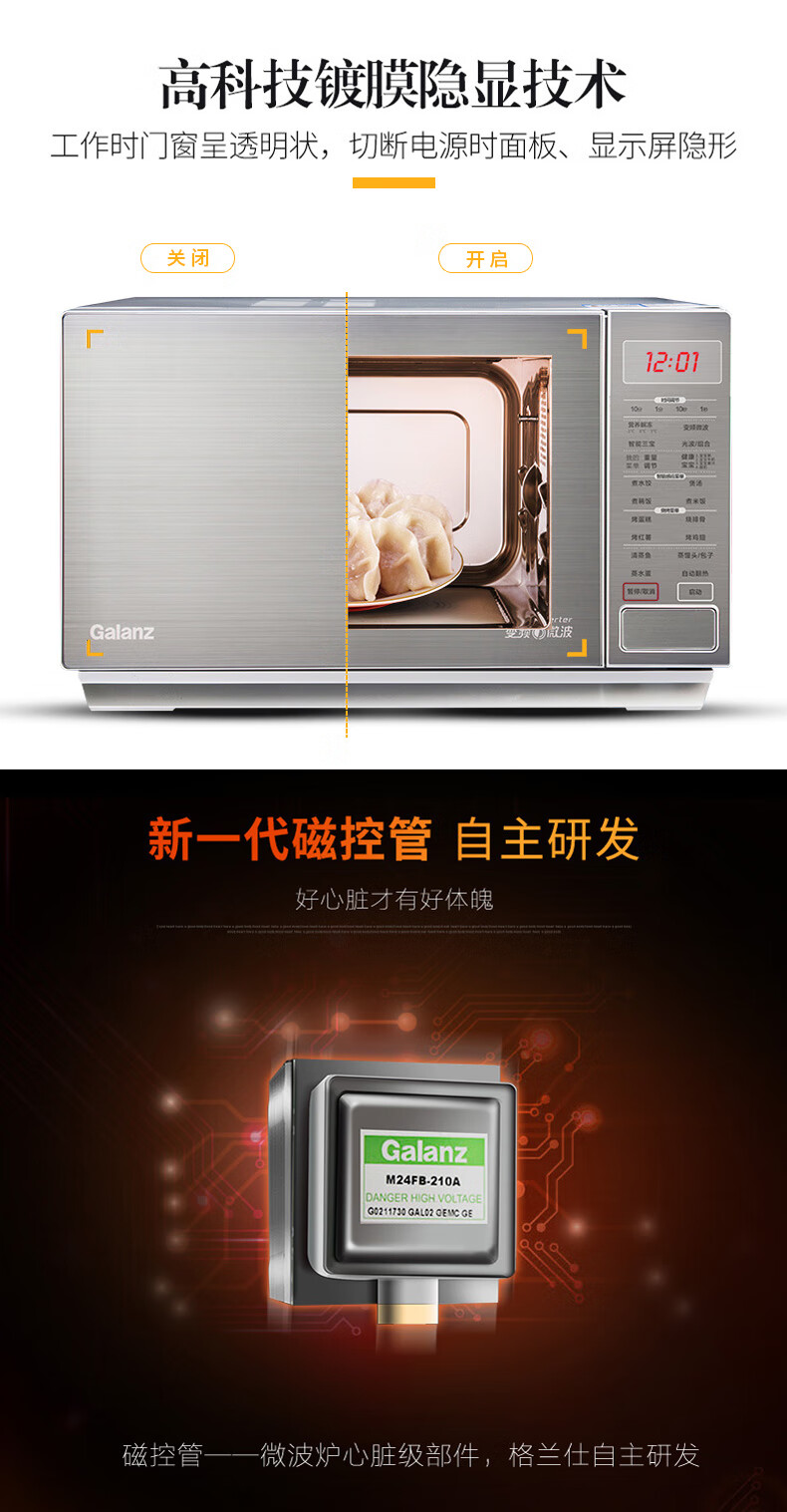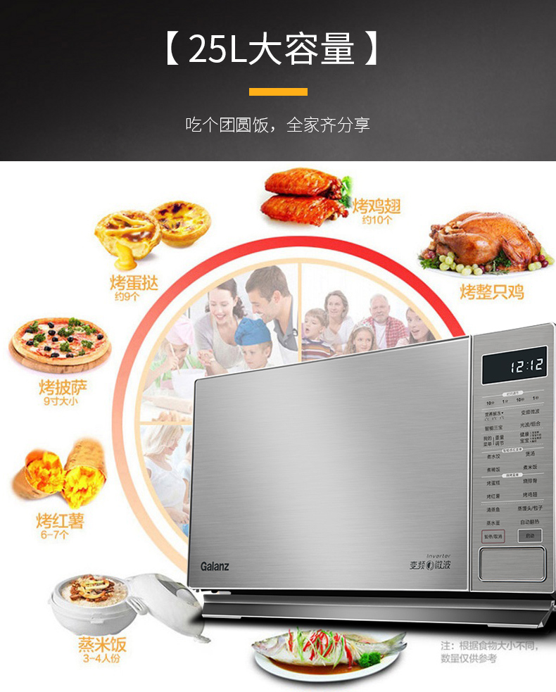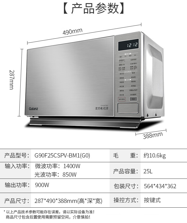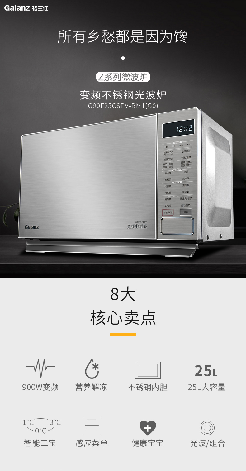 格兰仕(Galanz)变频微波炉 家用光波炉900W大功率 25L大容量平板不锈钢内胆G90F25CSPV-BM1(G0) (线下同款)