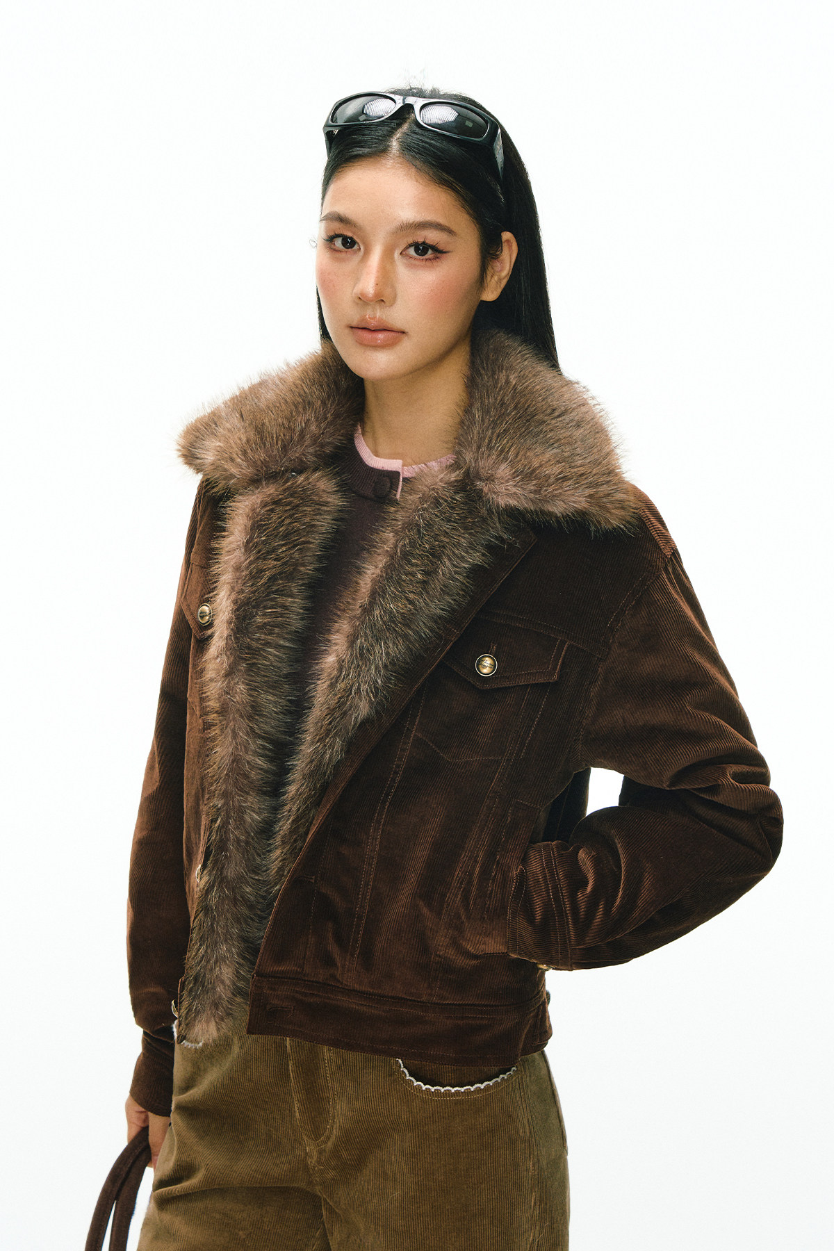 Ariseism 美式复古设计感可拆卸毛领棉服外套女冬季新款上衣