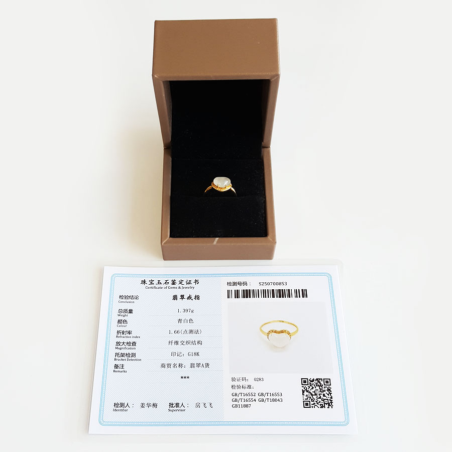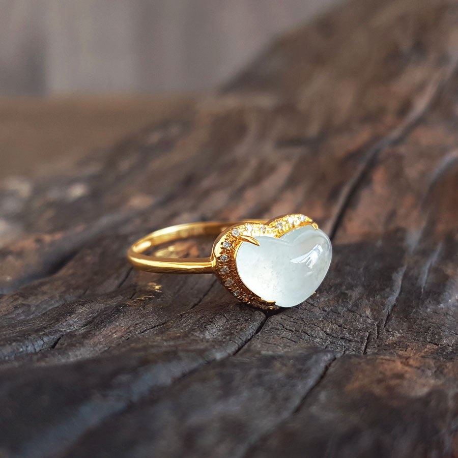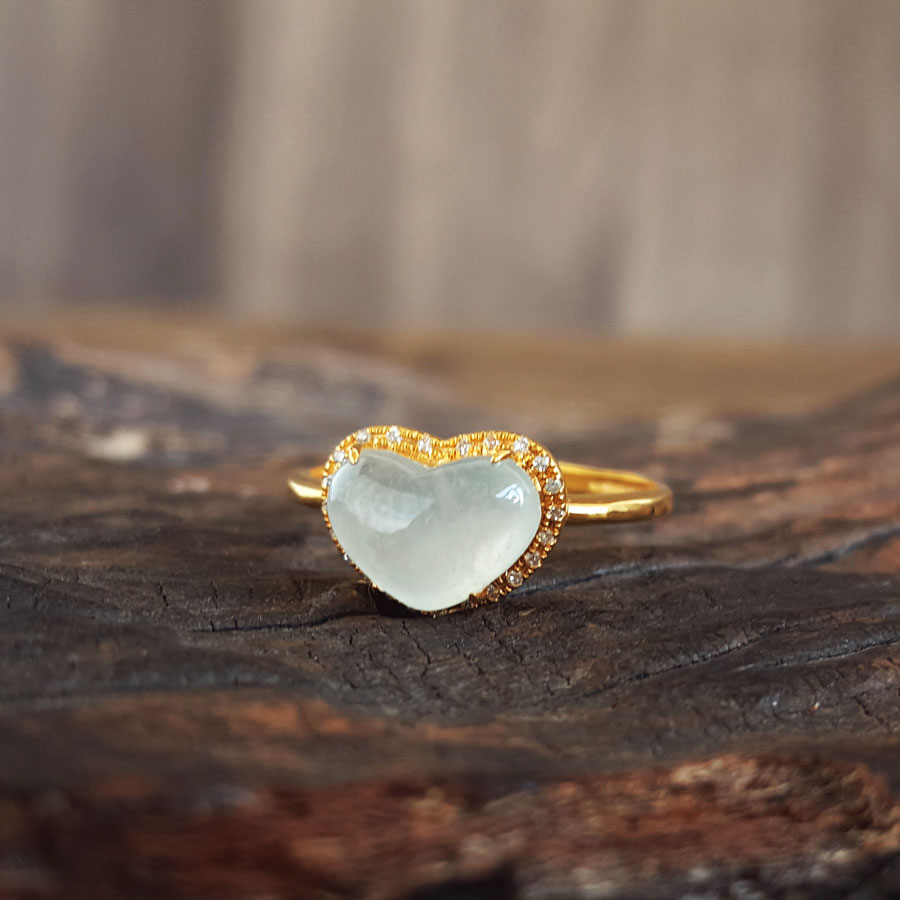 名称 | AU750黄金镶天然冰种爱心造型翡翠(心心相印)戒指 |