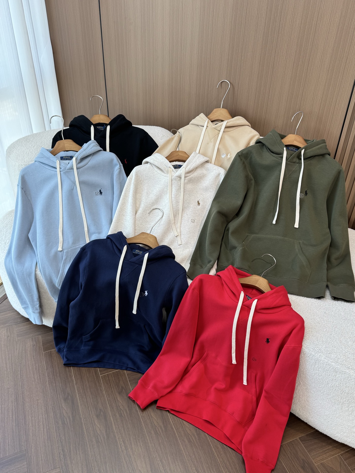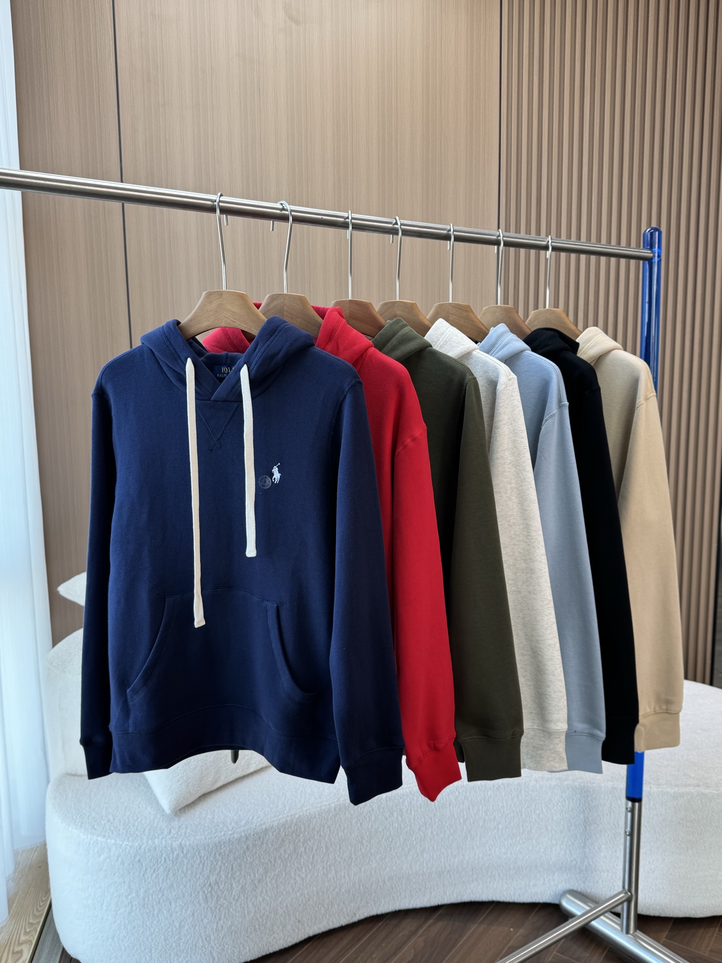 Ralph Lauren/拉夫劳伦 25新品起绒布连帽衫卫衣 秋冬人手一件的卫衣来了 🌈7种颜色可选怎么穿搭都随意 这款连帽衫非常适合搭配毛衫、牛仔裤或短裤,定会成为倍受喜爱的单品 饰有代表 Ralph Lauren 创立年份的运动风格图案,时装设计师Ralph Lauren。自1967年起,品牌一直为现代奢华、浪漫优雅与隽永不朽的风格做出演绎 •抽绳风帽,带V形插片 •长袖,罗纹袖口 •袋鼠式口袋 •胸前左侧饰有标志性小马刺绣 •罗纹下摆 •大身:60%棉,40%聚酯纤维 Ralph Lauren/拉夫劳伦小马刺绣长袖连帽卫衣 小马🐎刺绣标识 100%棉超柔软的面料 穿上身 亲肤舒适 内里带绒 厚度适合秋冬来穿,保暖性赞的! 简约的小马刺绣图案搭配、立体饱满!纯色的面料搭配精致的刺绣 瞬间就衬托出来了 连帽的运动设计,宽松休闲的版型! 整体质感非常强!定织定染的螺纹通过图片我们就能感受到它的厚实和质感,做工精致,外贸大厂出货,都是多年的老师傅亲自上手,一切都是高标准、高要求! 简约百搭款~采用进口棉面料,超级细腻柔软,贴身不扎身,面料,辅料全部,原定制出品品质优良!完美体现品牌优越感! 版型剪裁标准,伸展舒适,运动无拘束! 翻领的设计在满足简约的风格上的需求同时,实穿性强,高端大气上档! 万能百搭款~可搭配牛仔裤或慢跑裤。是从早间通勤到参加周末活动之间的理想过度着装之选!