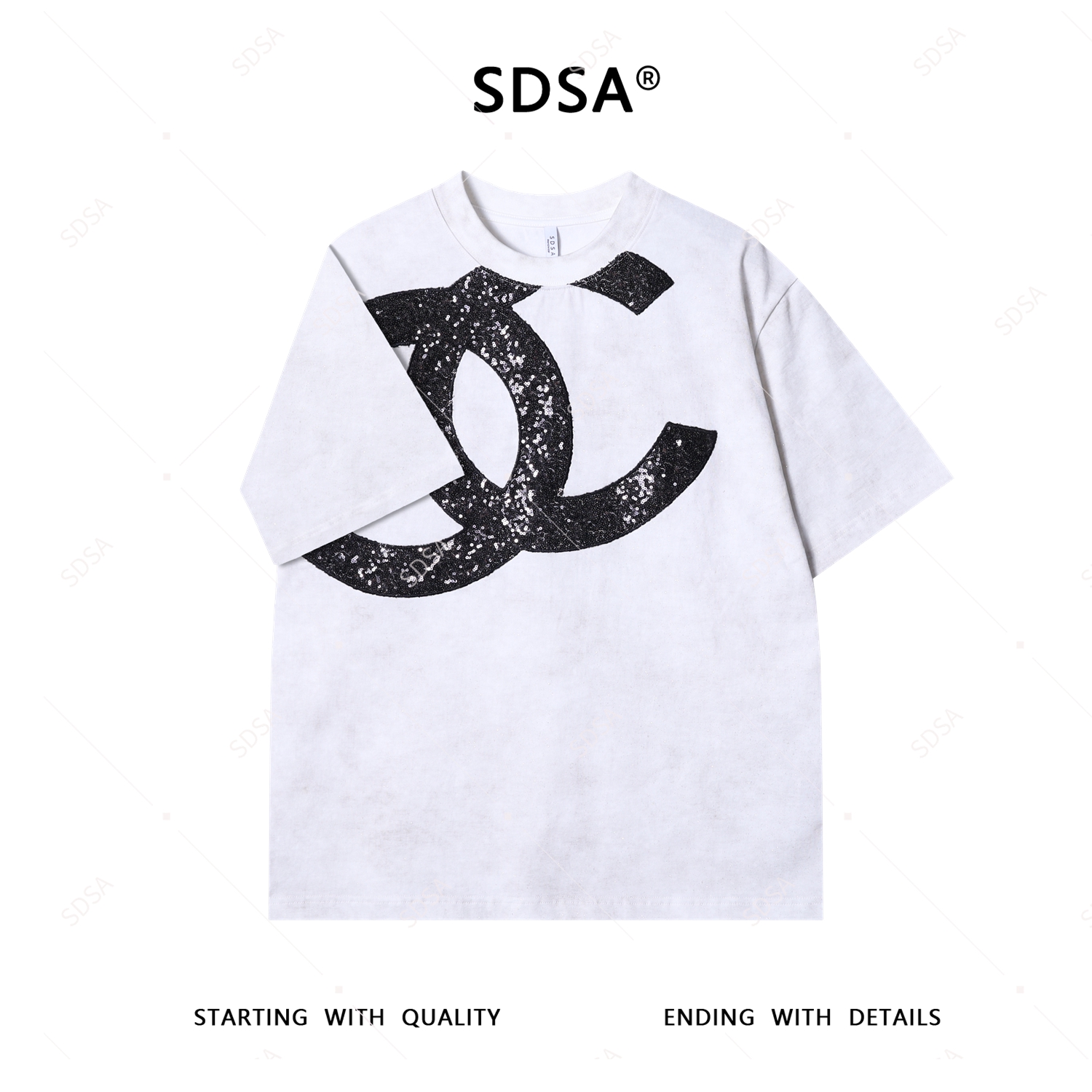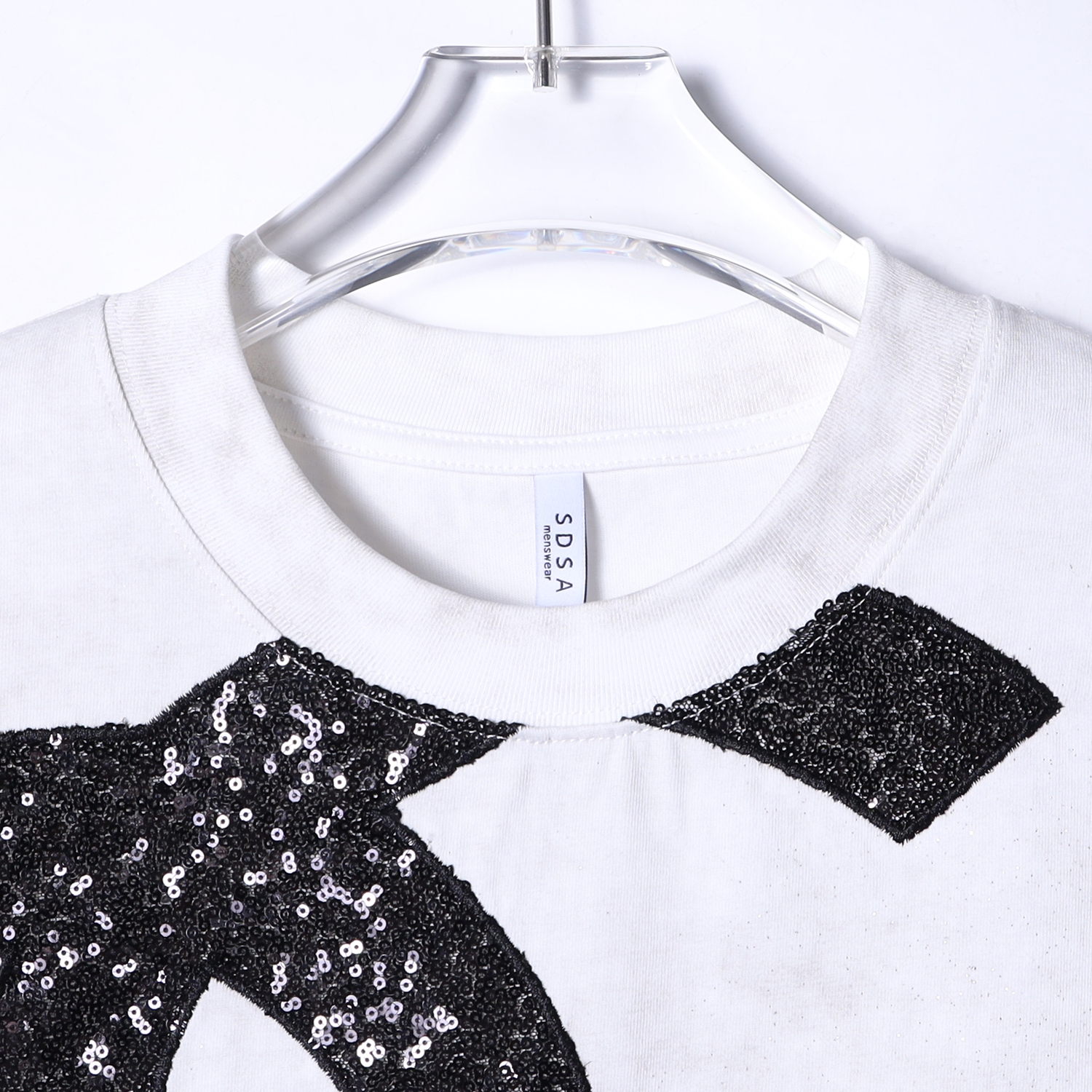 T4207SDSA夏季新款男士痞帅满天星亮片字母圆领短袖T恤百搭时尚上衣潮