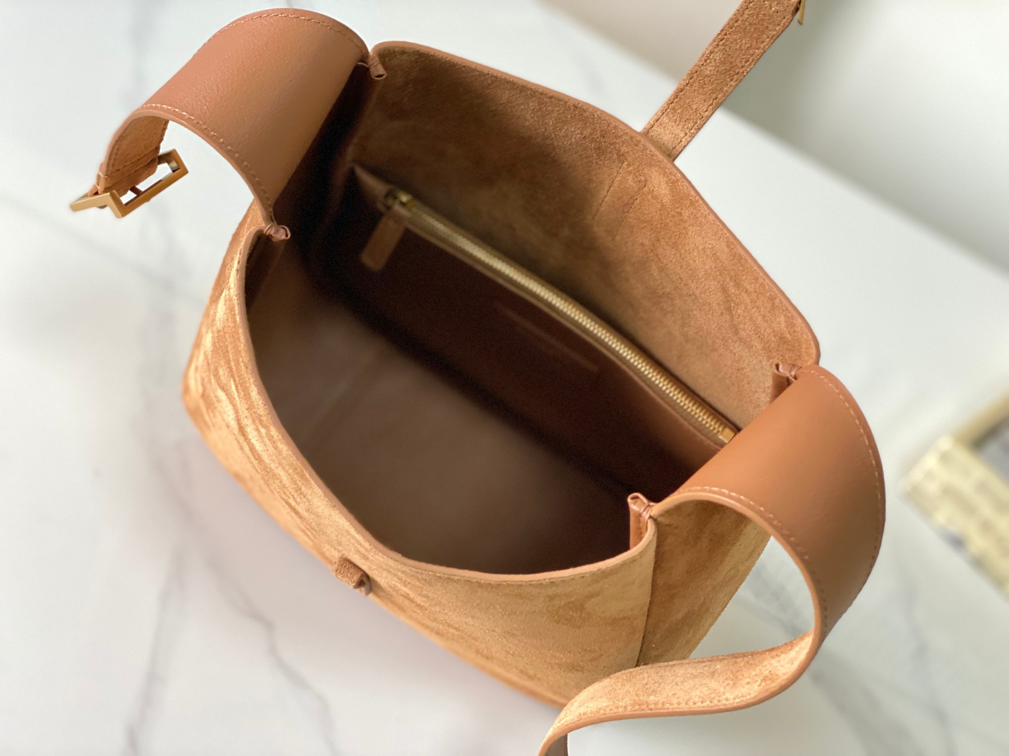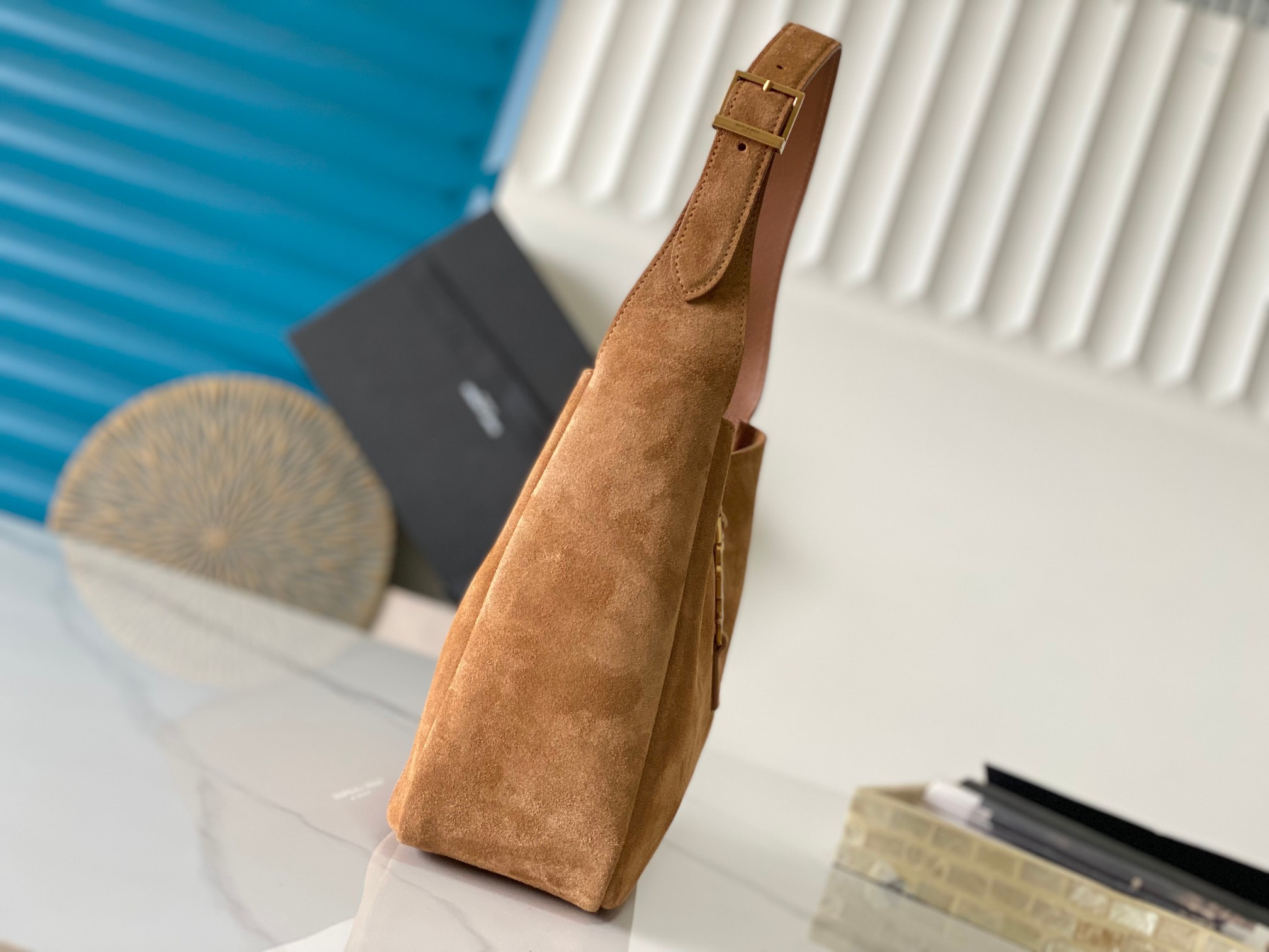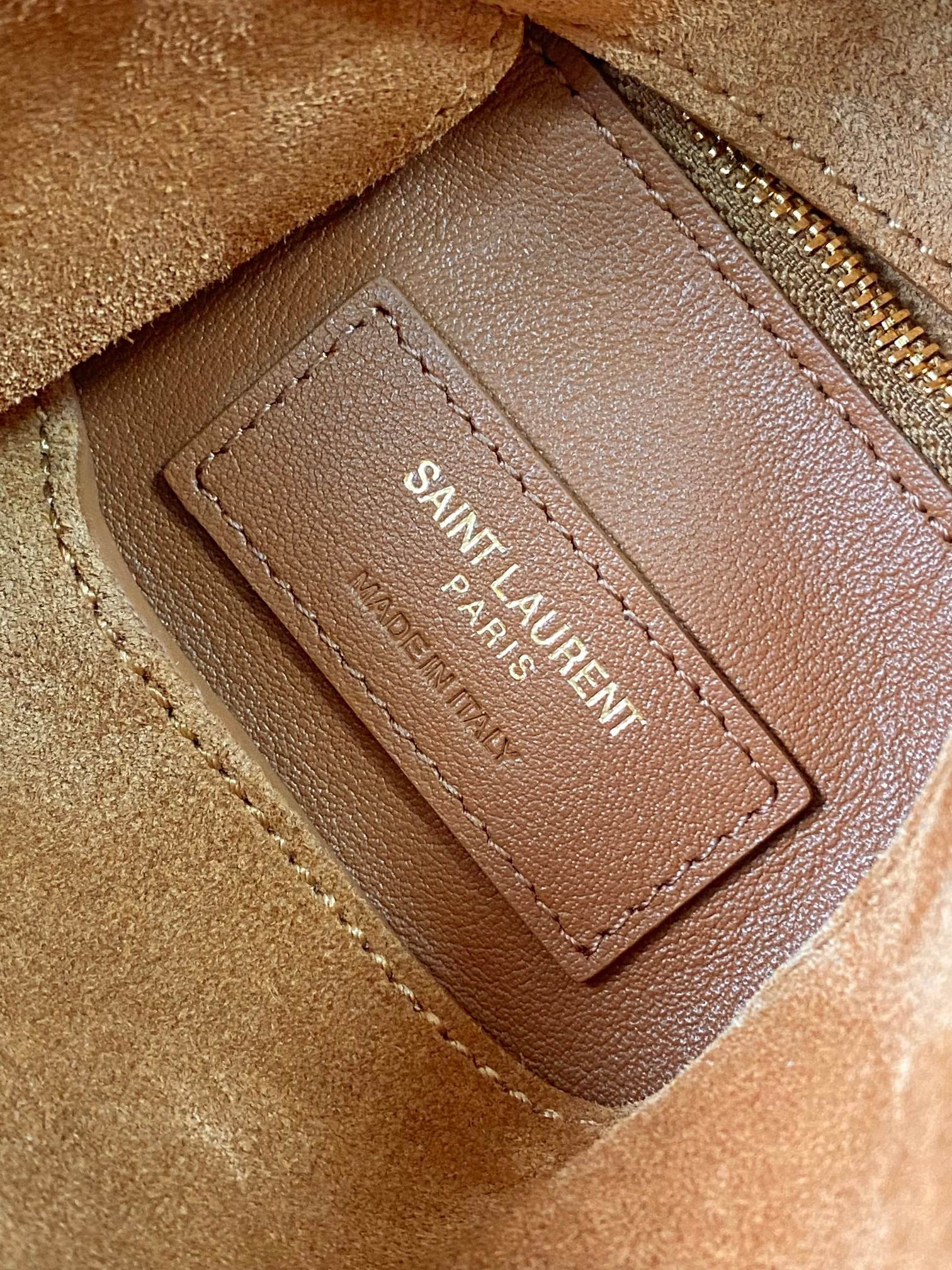 圣罗兰 LE5A7 经典品牌字母微标 麂皮 手提单肩包 焦糖棕色(MM)