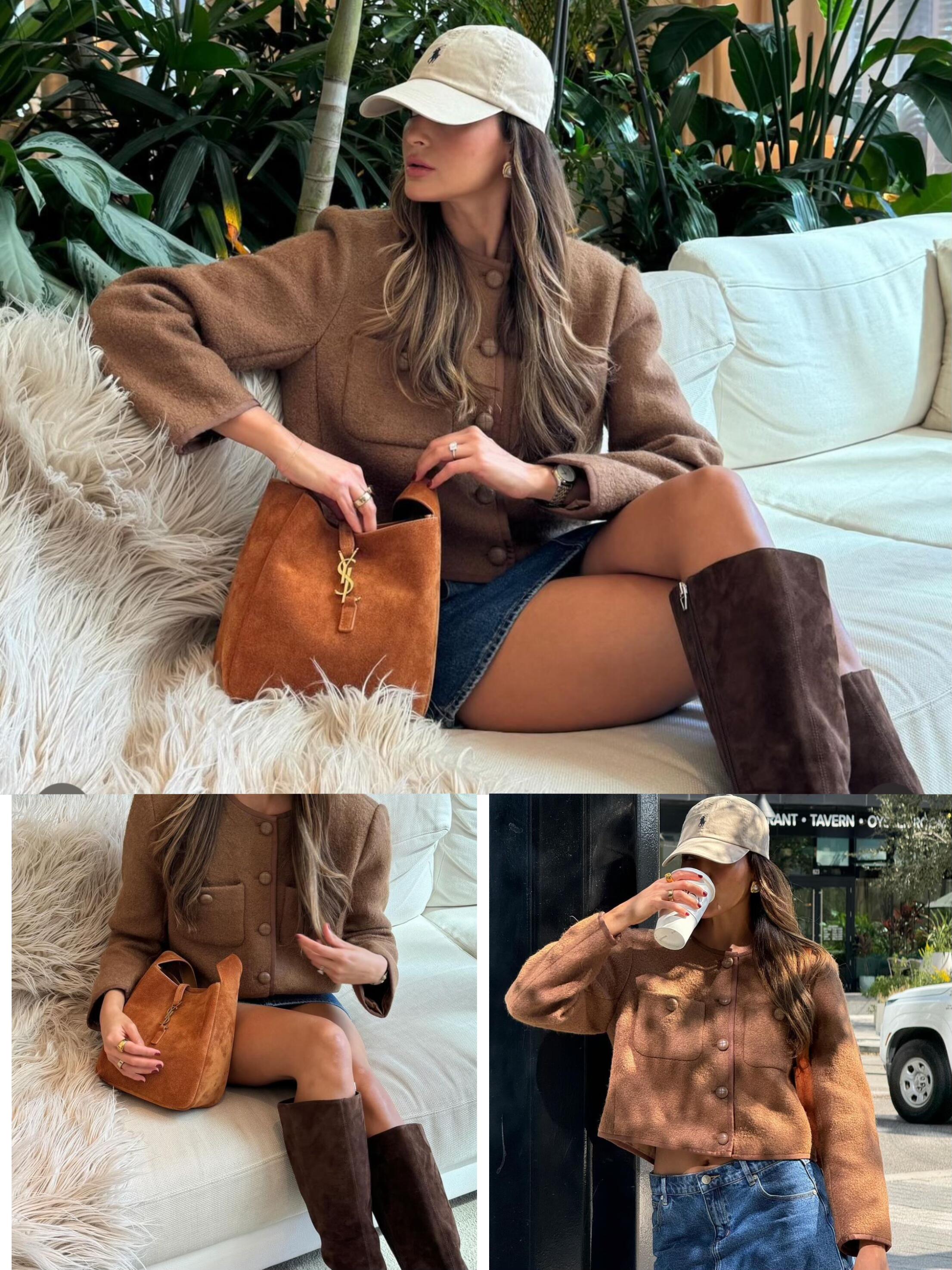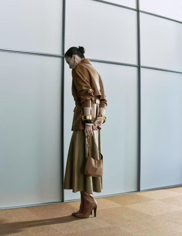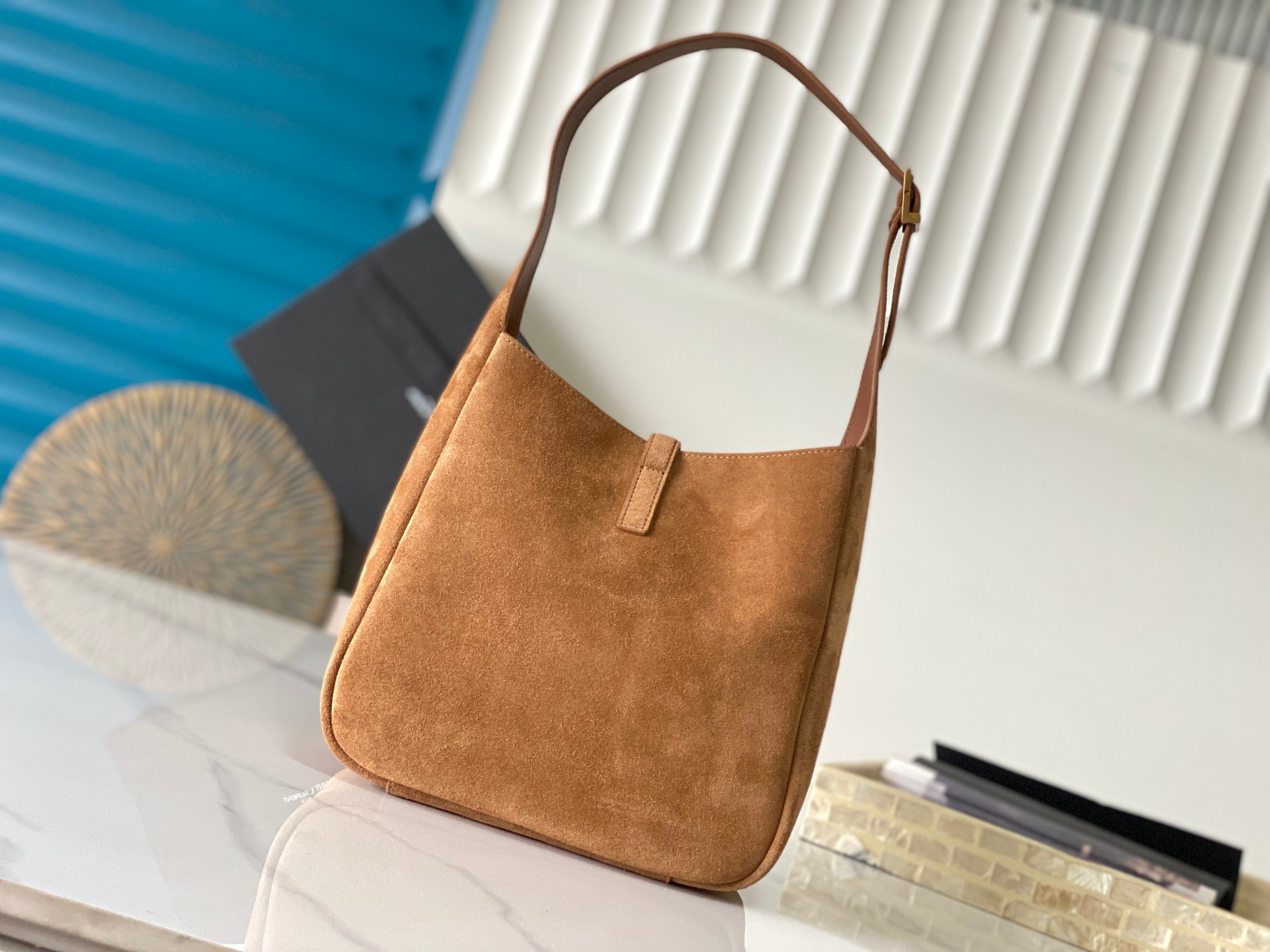 圣罗兰 LE5A7 经典品牌字母微标 麂皮 手提单肩包 焦糖棕色(MM)