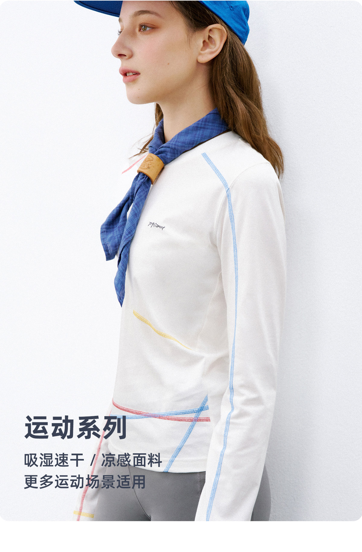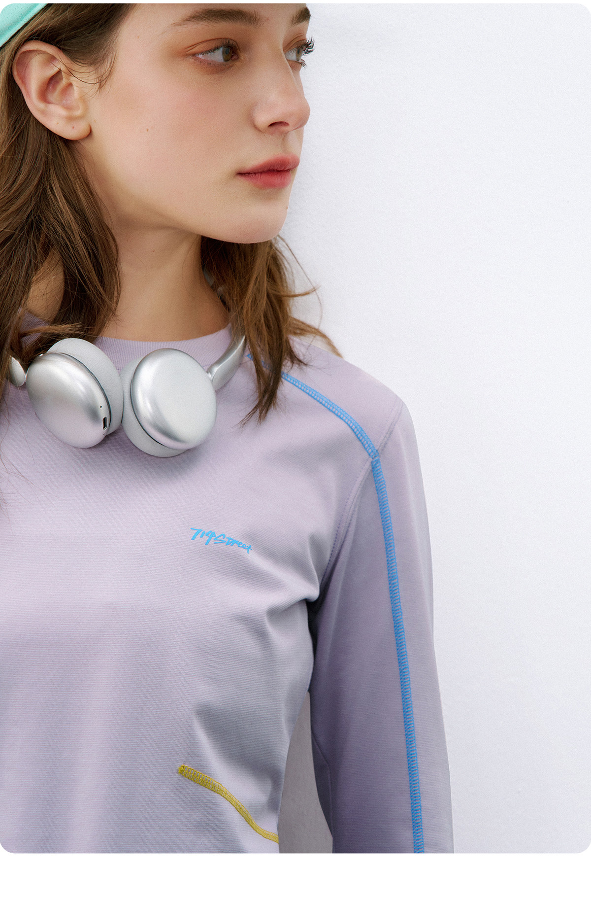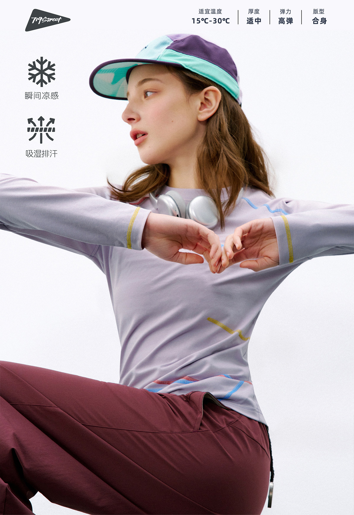 714street运动撞色速干T恤女2026春季潮牌户外吸湿凉感长袖骑行服