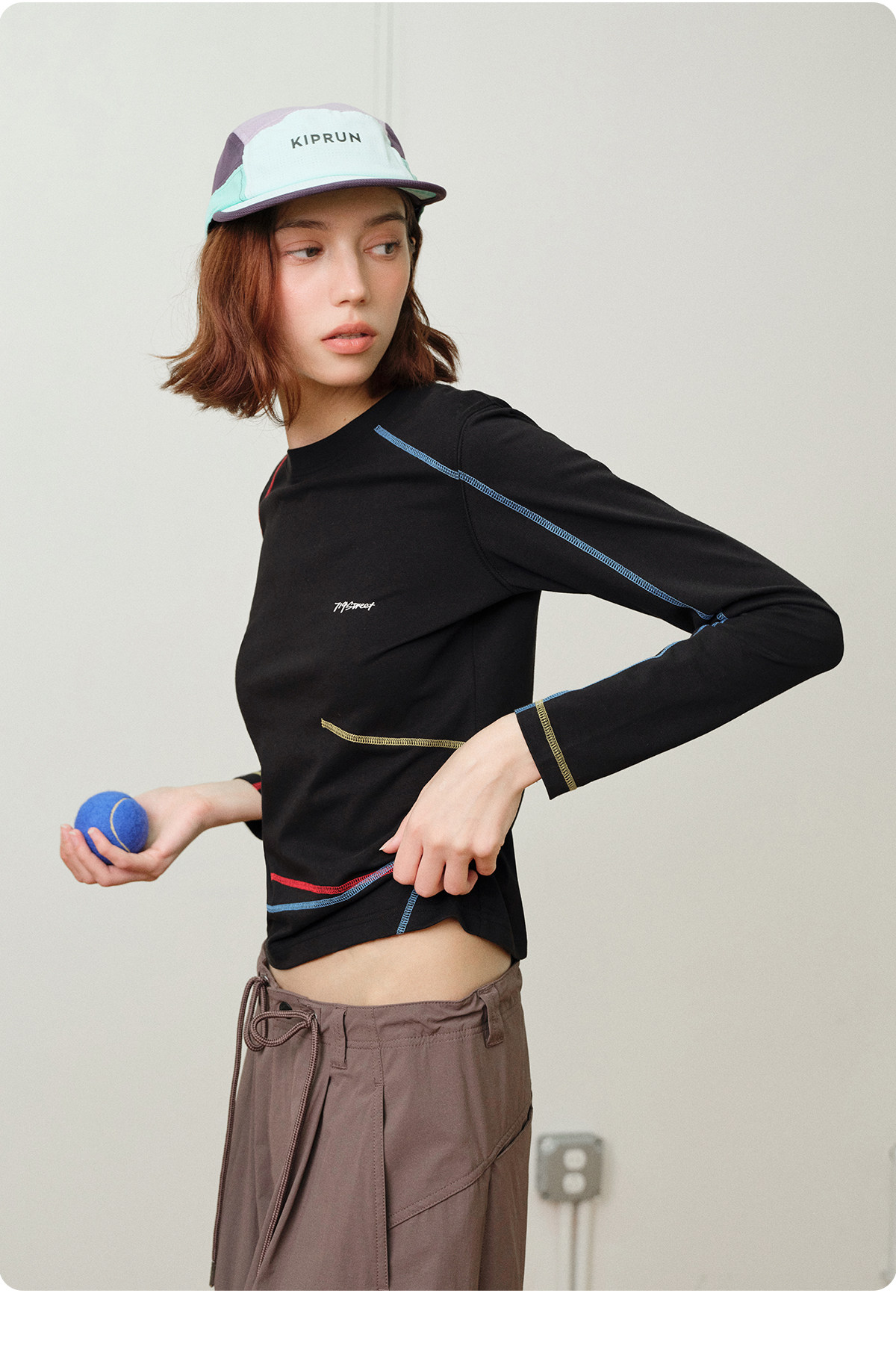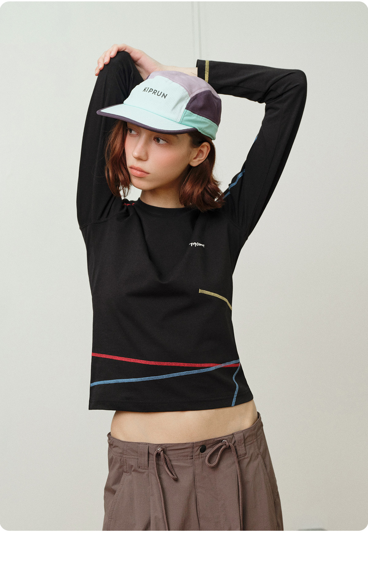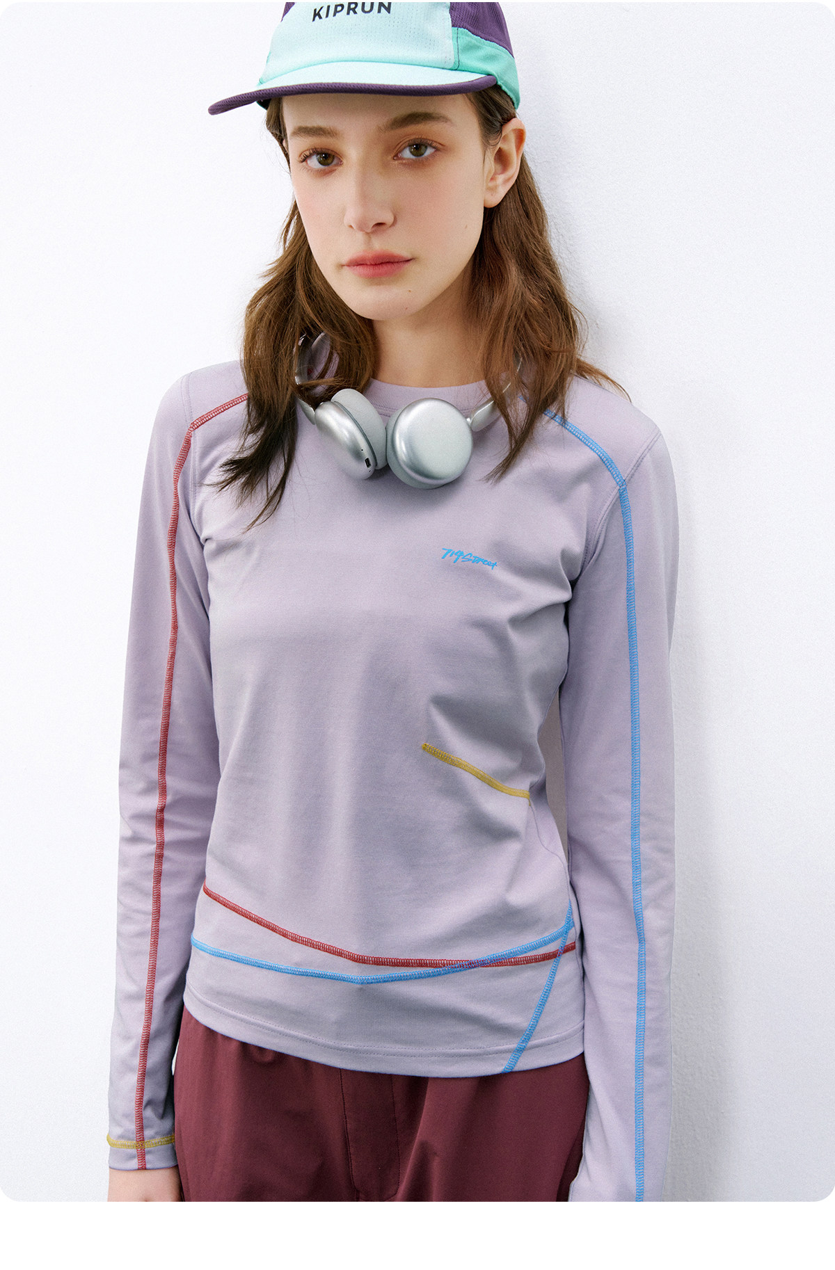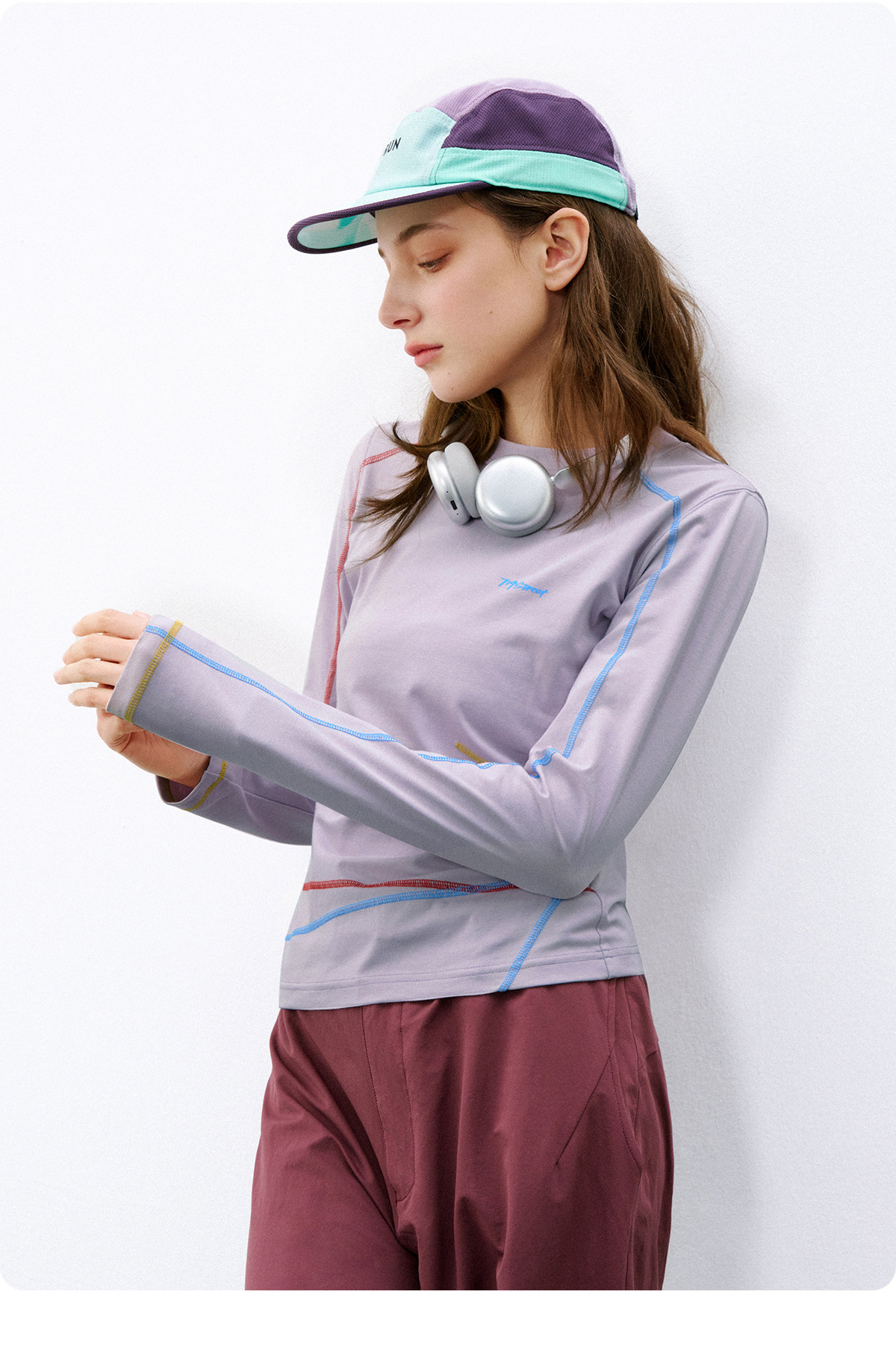 714street运动撞色速干T恤女2026春季潮牌户外吸湿凉感长袖骑行服