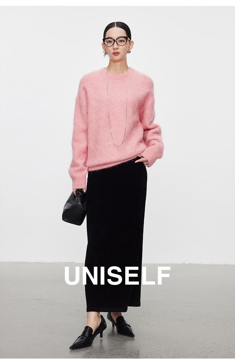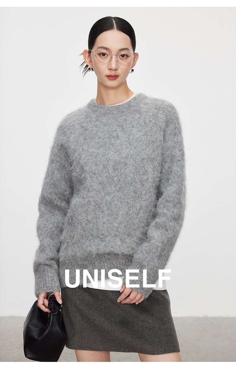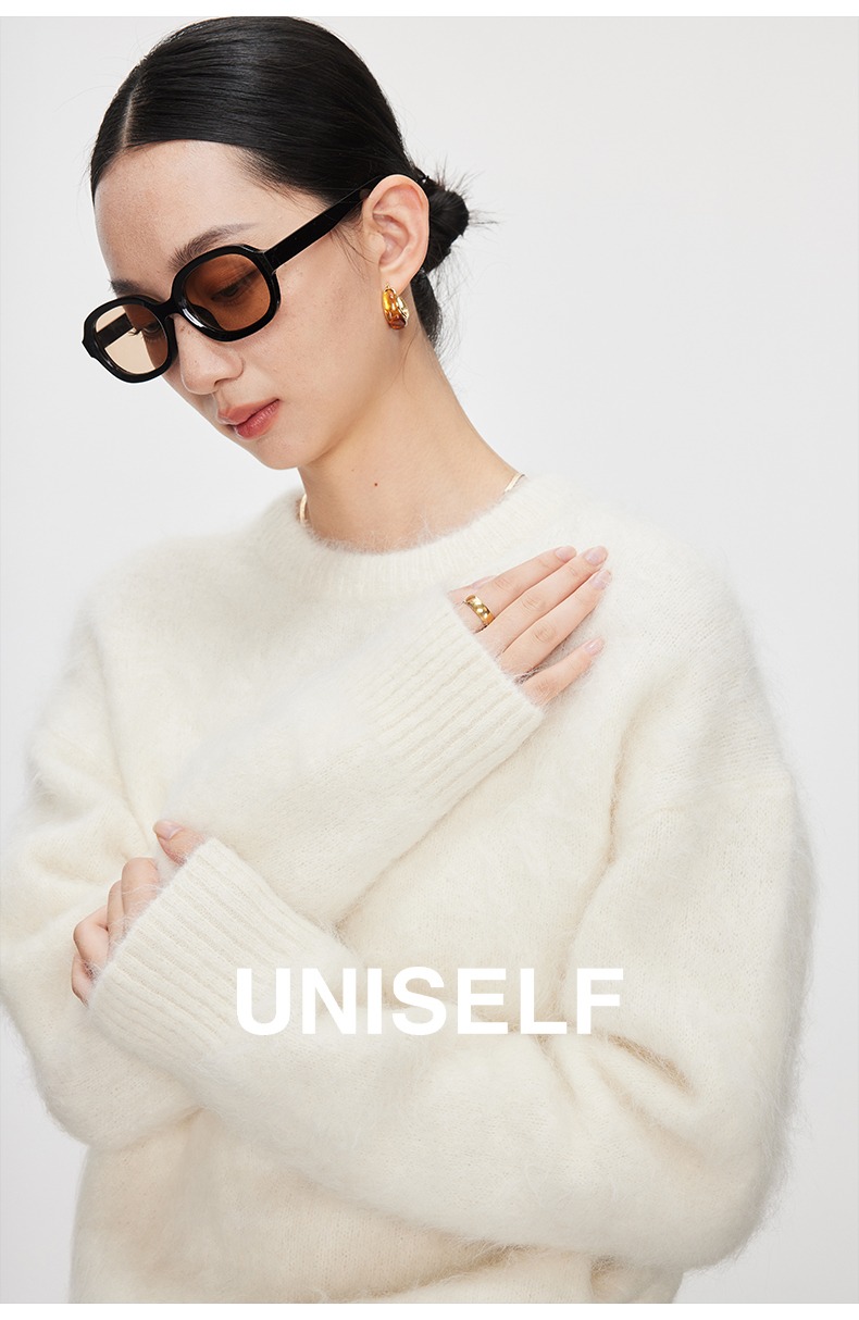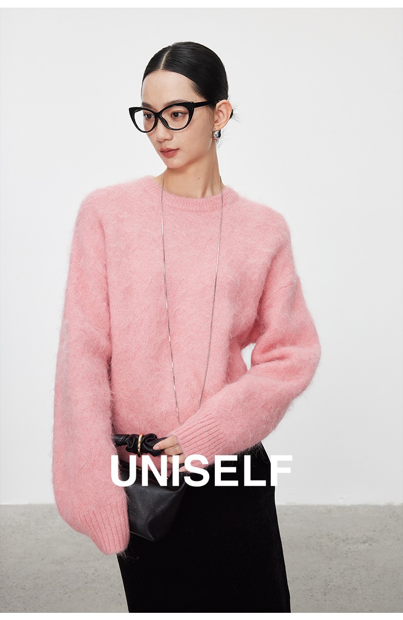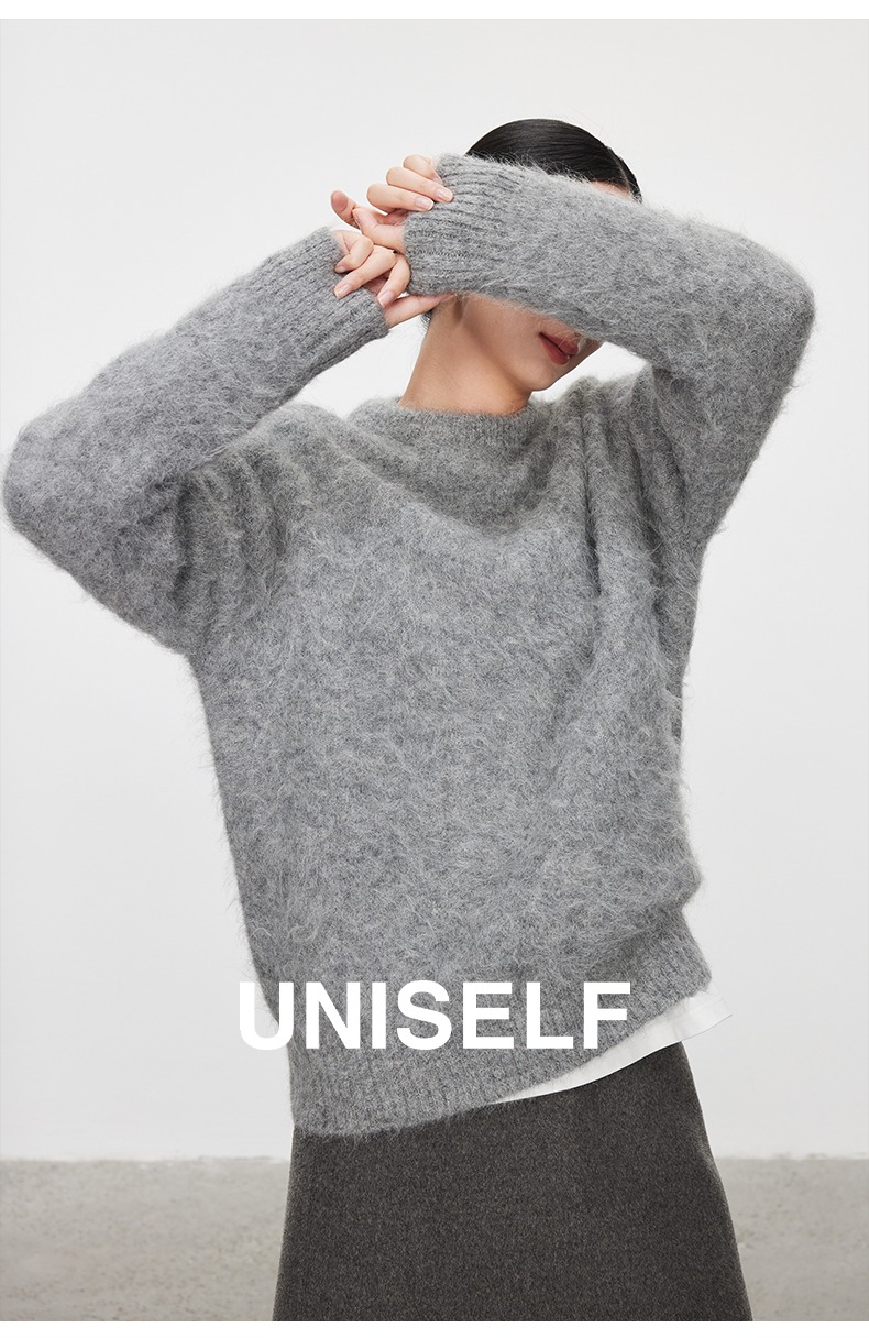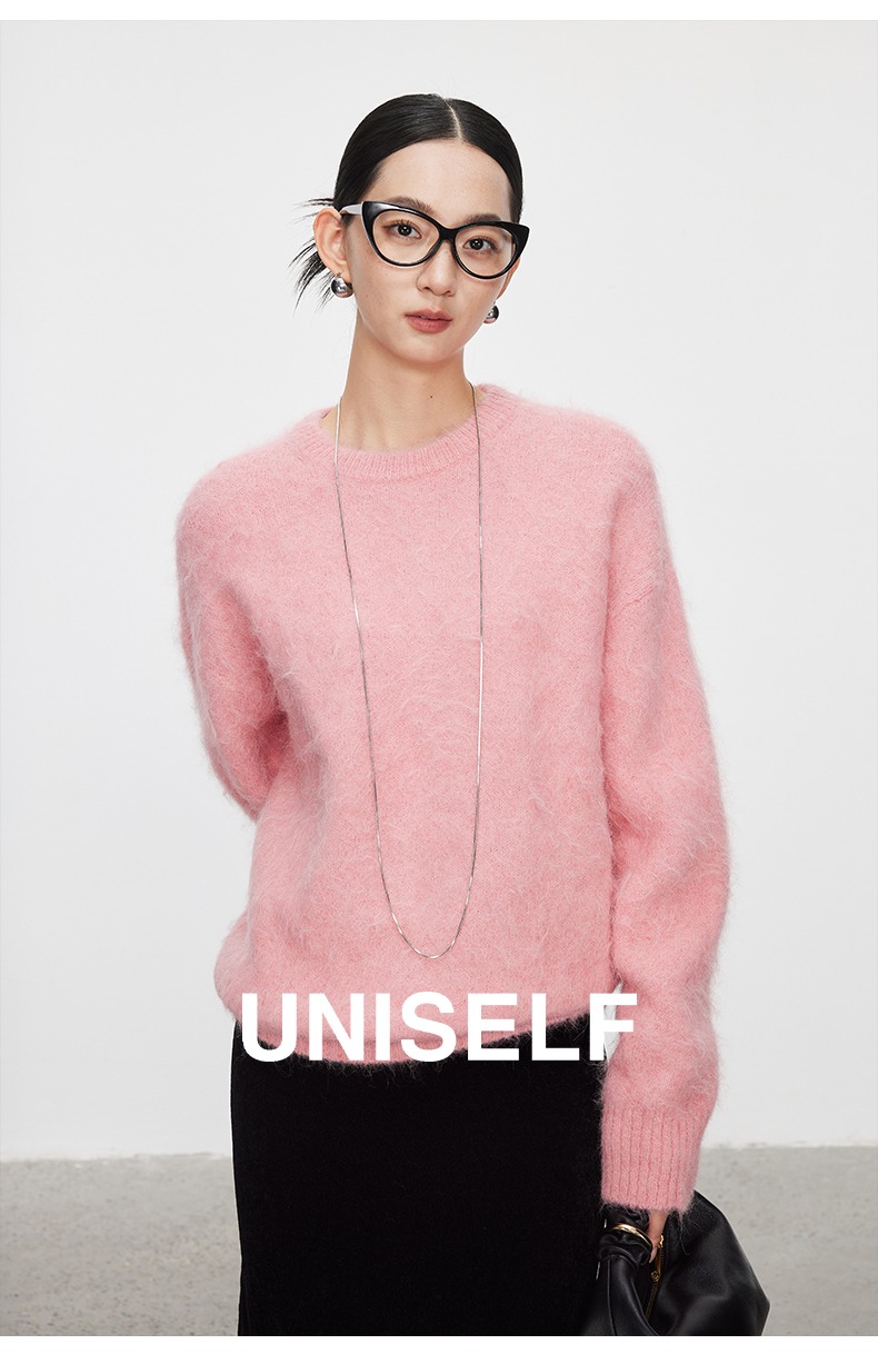 软糯温暖羊驼毛套头毛衣女2023冬季新款百搭宽松圆领上衣