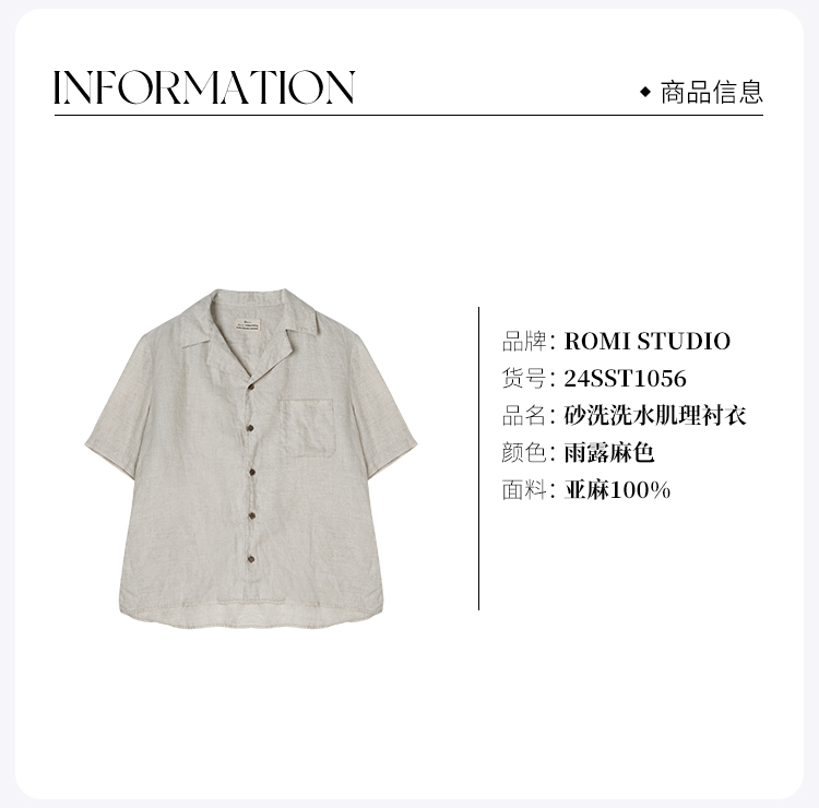 ROMI STUDIO“游弋自然”120G100%雨露麻砂洗洗水肌理衬衣24SST1056