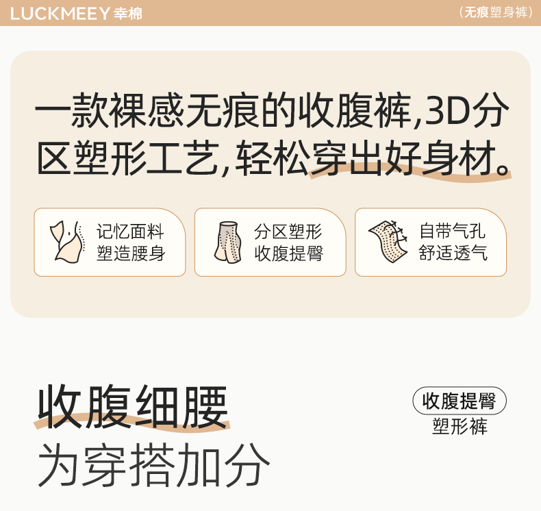 幸棉 Soft系列透气收腹裤束腰塑形提臀裤3W268554