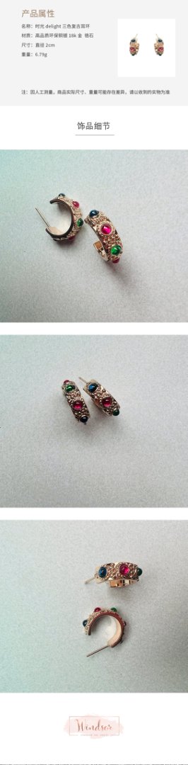 LHWINDSOR温莎珠宝 时光delight三色复古耳环