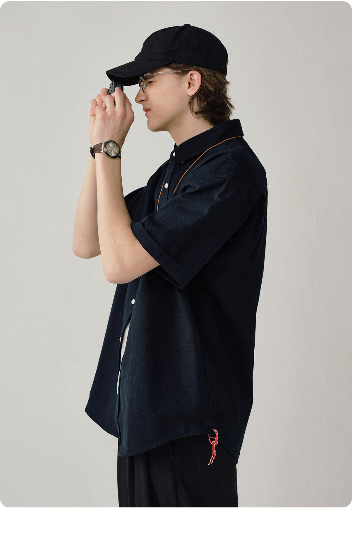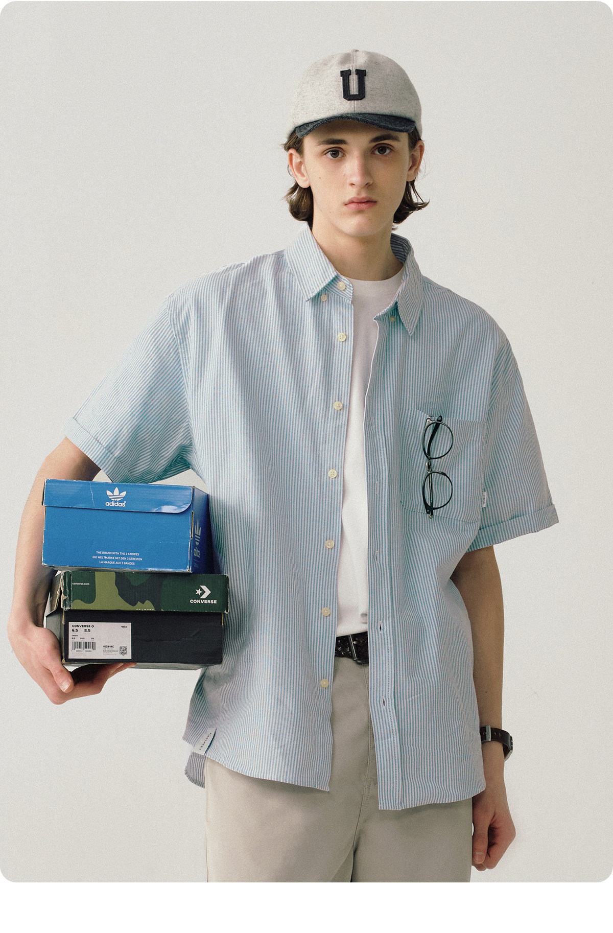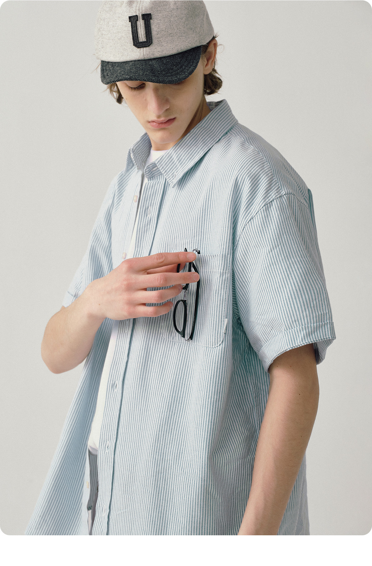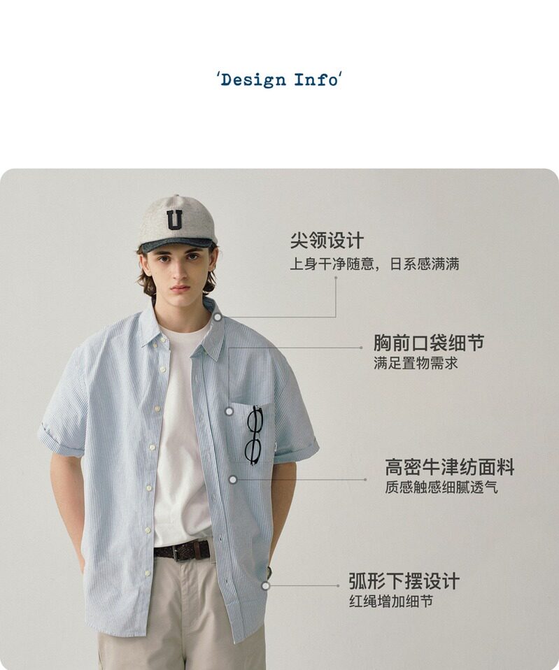 714street夏季短袖衬衣男cheanfit纯色衬衫复古条纹衬衫潮牌外套