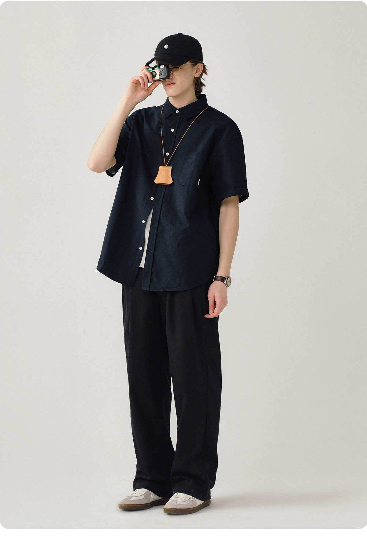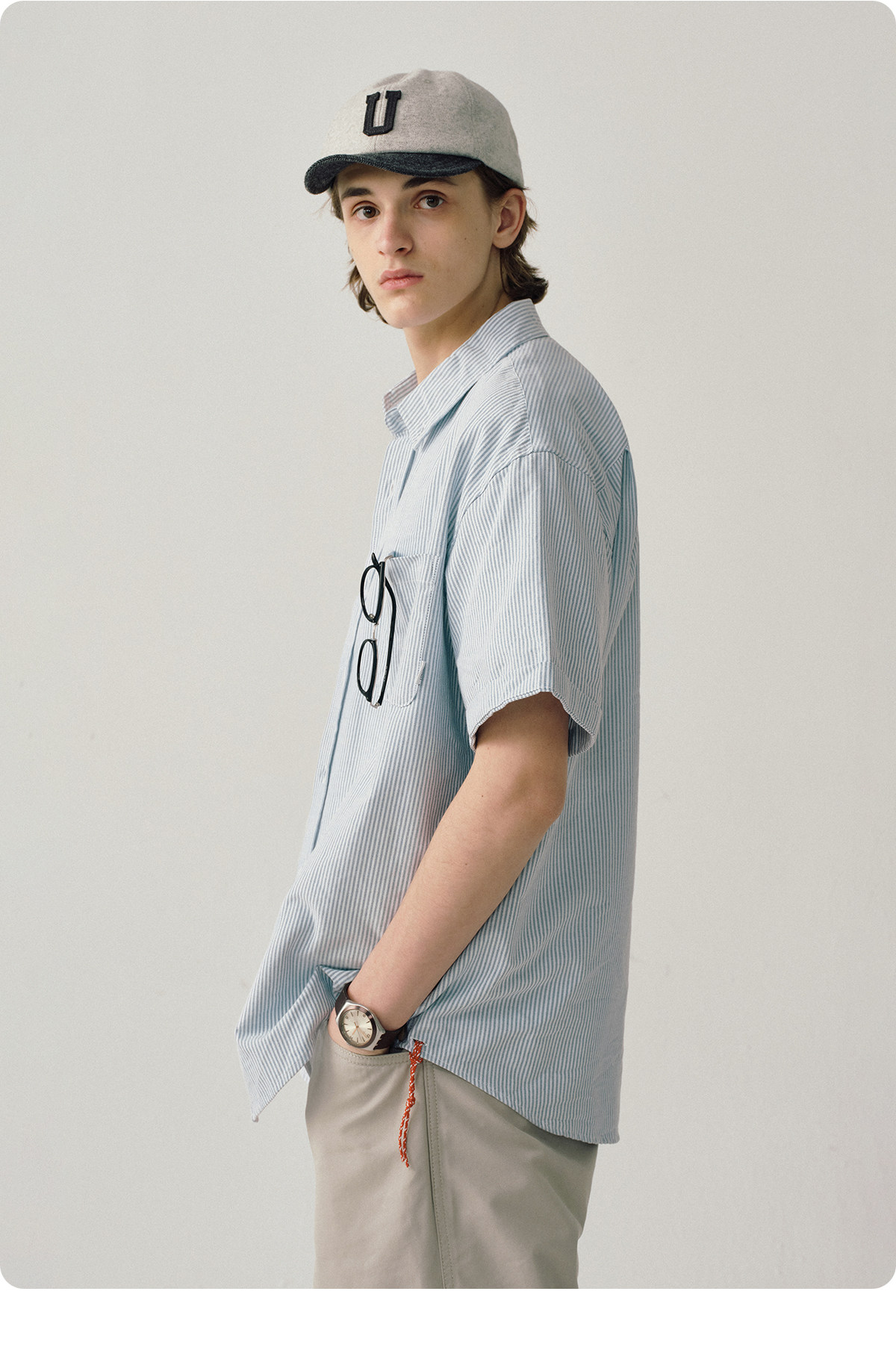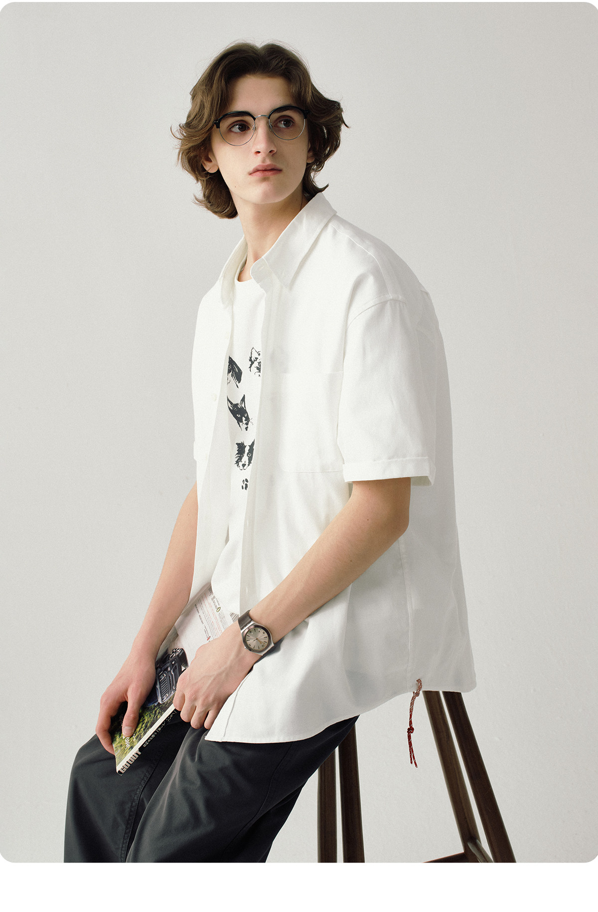 714street夏季短袖衬衣男cheanfit纯色衬衫复古条纹衬衫潮牌外套