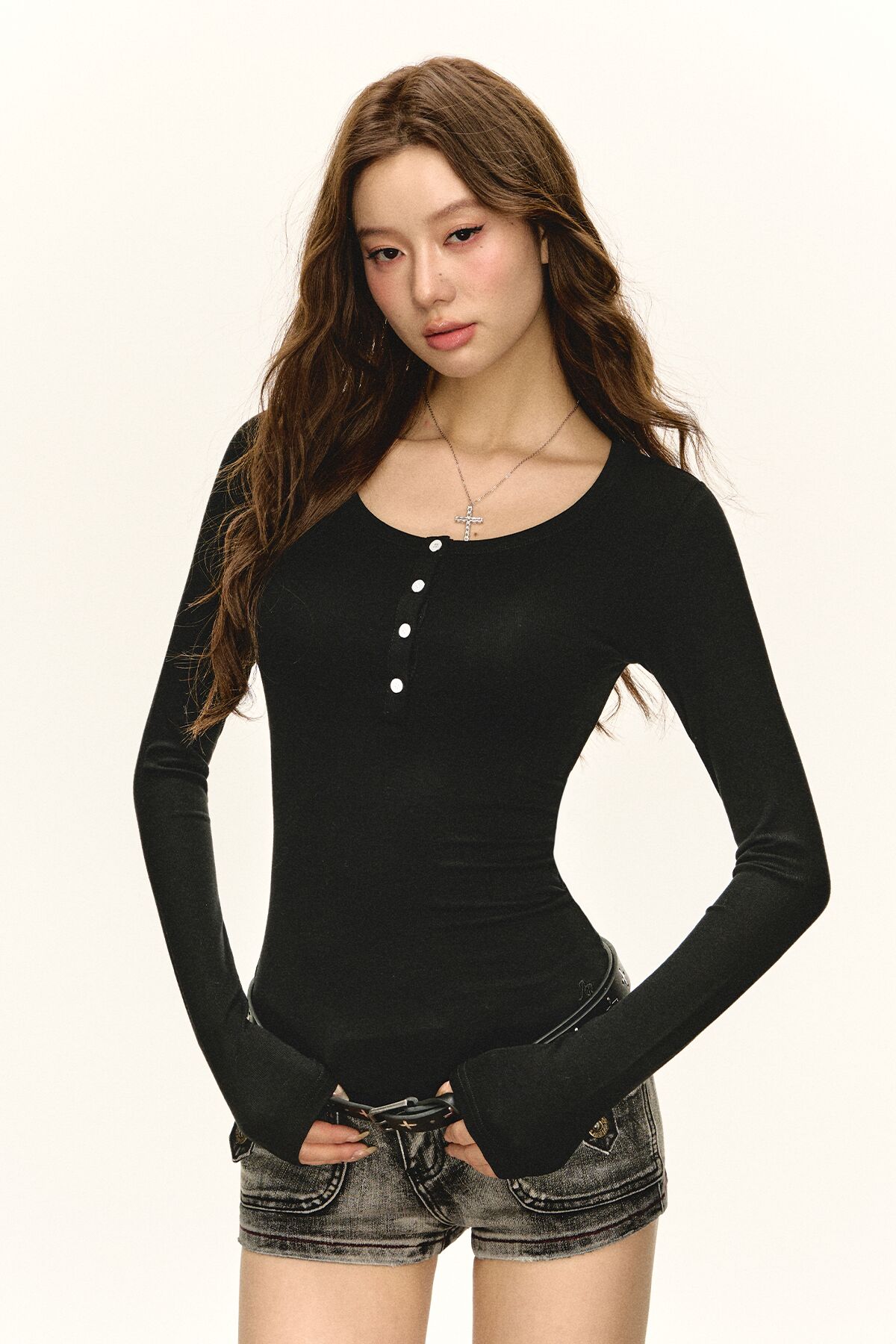 Ariseism 美式复古设计感长袖T恤女秋季新款辣妹修身上衣
